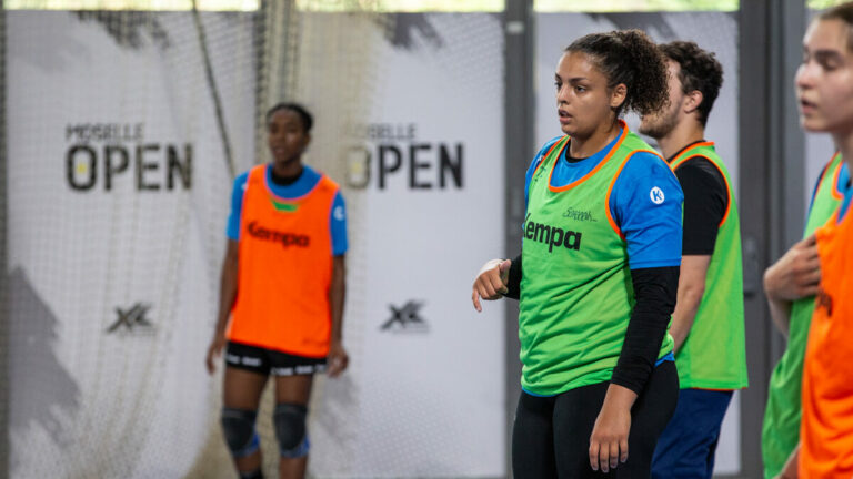 430 À 26 jours de la reprise de la compétition officielle, Metz Handball a décidé de poursuivre sa préparation à Viborg (Danemark) avec, comme point d’orgue, un match face à Copenhague et Bucarest. Le stage s’est conclu par deux victoires et laisse entrevoir un début de projet. Après la défaite à Bietigheim, Metz Handball n’a pas eu le temps de tergiverser en voyageant directement vers le Danemark. Un stage intensif qui devait permettre d’affiner le projet de jeu tout en renforçant la vie de groupe pour préparer les longs déplacements de l’équipe. Satisfait de sa première participation en 2022, Emmanuel Mayonnade avait à cœur de revenir en terres danoises pour se donner des indications face à deux adversités de niveau différent, comme la saison passée avec Storhamar et Odense. Une première opposition de niveau moyen Avant d’affronter leurs futurs adversaires de Ligue des Champions, les Messines ont fait face à Copenhague, 6e du dernier exercice danois. Quasiment au complet par rapport à vendredi dernier, le champion de France a pu récupérer Djazz Chambertin alors que le groupe a dû composer sans Anne Mette Hansen, toujours en convalescence. Malmenées en Allemagne, les Dragonnes ont proposé un véritable défi physique à Copenhague, cette fois-ci. Très agressif en défense, Metz Handball a pu déployer son jeu rapide. Déjà en vue à Bietigheim, Kristina Jørgensen poursuit sa dynamique de fin de saison 2022/2023 en étant l’un des éléments moteurs du collectif messin. L’internationale danoise a été indispensable dans l’orientation du jeu et sa capacité à porter le ballon pour mettre en exergue ses coéquipières à l’instar de Chloé Valentini toujours très régulière devant les buts (9/9). À droite, sa compatriote Louise Burgaard n’a pas été en reste avec des caviars lancés à Sarah Bouktit (8/10). Tout le long de la première période, les Françaises ont démontré toute leur supériorité face à une équipe admise en Ligue Européenne, en atteste le score très flatteur, à la pause (9 à 17). Les championnes de France en titre ont levé le pied après le repos. En effet, la base arrière a manqué un peu de liant avec des précipitations et des pertes de balle, mais le trio Chambertin-Grijseels-Burgaard a proposé des combinaisons intéressantes alors que Kristina Jørgensen a principalement joué en défense. De son côté, Emmanuel Mayonnade a permis à la totalité de son groupe de s’exprimer pour ainsi faire souffler son 7 majeur et concerner tout le monde. Finalement, les Messines se sont largement imposées 36 à 24 avant de défier le Rapid Bucarest. Un Rapid Bucarest plus coriace Le lendemain, Metz Handball remettait le couvert face au Rapid Bucarest des soeurs Kanor. Les Lorraines ont bien évidemment dû s’armer de patience pour venir à bout du vice-champion roumain. Mais le vécu collectif semble progresser pour remporter une confrontation nettement plus complexe. Et ce, malgré l’enchaînement des deux matchs. Au coude-à-coude durant toute la première période puis menées au score avant de rejoindre le vestiaire (16 à 15), les Messines ont accéléré pour contenir Bucarest durant les 20 dernières minutes. Ainsi, Metz Handball n’a fait aucune concession pour s’imposer de six unités (27 à 33). Malgré quelques maladresses encore présentes, Metz Handball repart du Danemark de manière positive avant de retrouver Bietigheim, le 15 août et affronter Buducnost, 4 jours plus tard. Statistiques contre Copenhague : Hatadou Sako, Camille Depuiset. Lucie Granier (2 buts en 4 tentatives), Sarah Bouktit (8/10), Chloé Valentini (9/9), Kristina Jørgensen (3/6), Louise Burgaard (2/5), Zaliata Mlamali (0/1), Alina Grijseels (7/7), Djazz Chambertin (1/3), Mia Brkic (1/1), Emma Jacques (2/3), Julie Le Blevec (1/1). Aucune statistique pour Metz Handball vs Rapid Bucarest. Crédit photo : Matthieu Henkinet/Let’s Go Metz