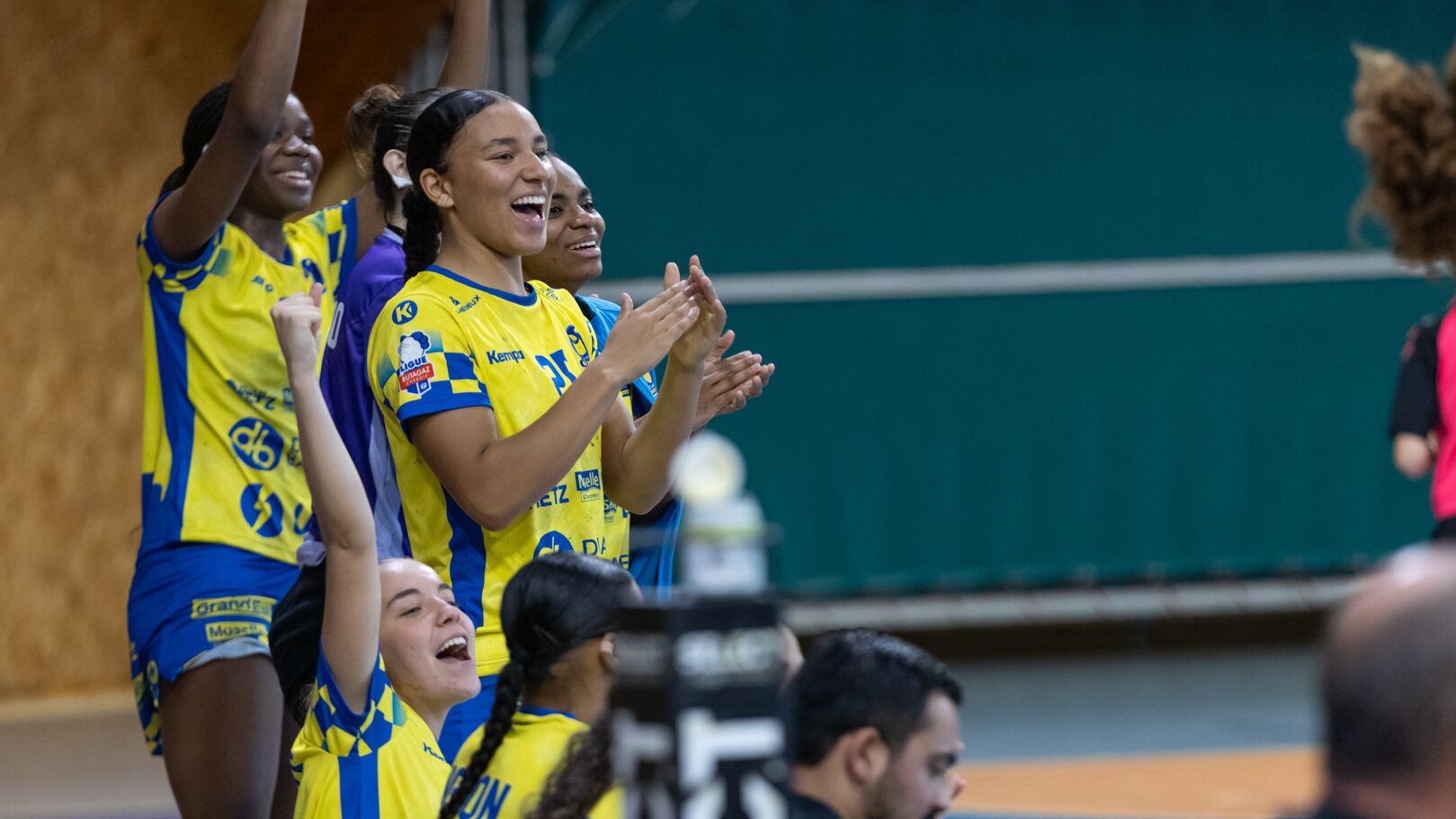 5,9K L’équipe de Nationale 1 Féminine (N1F) de Metz Handball se déplaçait sur le terrain du Bassin Mussipontain dans le cadre de la huitième journée de compétition. A l’image de leurs ainées, il restait un match à disputer ce samedi pour les jeunes Dragonnes de Metz Handball avant d’observer une trêve jusqu’en janvier 2026. Sur le terrain du Bassin Mussipontain, à Blénod-lès-Pont-à-Mousson, les protégées de Nina Kanto cherchaient à conforter leur dynamique en Nationale 1 Féminine avec une septième victoire consécutive. Ce match, les joueuses de Metz Handball l’ont finalement mené de bout en bout. Profitant d’une réalisation d’Elea Ferdilus et de parades de Tatjana Cinku en début de match, les Messines prenaient les devants et malgré plusieurs coups de boutoir mussipontains, Nelya Goval puis Anaïs Ababsa préservaient la dynamique (10-12, mi-temps). Dans un match marqué par les échecs offensifs, les coéquipières d’Yvana Atangana plaçaient une accélération opportune au cours du second acte pour transformer l’avance incertaine d’un but (17-18, 48ème) en confort inéluctable de six unités (17-23, 53ème) via une nouvelle réalisation d’Elea Ferdilus. Un écart qui s’avérait en définitive amplement suffisant pour valider une nouvelle victoire à l’heure de faire retentir le buzzer final. Score final de ce Bassin Mussipontain – Metz Handball en Nationale 1 Féminine : 19 – 25 Il faudra désormais être patient avant de retrouver les jeunes Dragonnes sur les parquets. Elles entameront la deuxième partie de saison le 10 janvier 2026 en recevant Villers Handball avec l’objectif de conquérir la première place. Dans cette optique, il faut cocher la date du 17 janvier 2026 où elles se déplaceront à Chambéry. Les stats de la rencontre Metz Handball Cinku (10 parades), NavarroAbabsa (3 buts sur 5 tirs), Atangana (4/8, capitaine), Etilopy, Ferdilus (7/7), Giliberto (1/1), Goval (5/6), Gros (3/4), Holler, Kaakil Talaba (2/3), Thevenot. Bassin Mussipontain Hakim (3 parades), Traore (1 parade)Balland (0 but sur 1 tir), Bertelle (2/4), Bindler, Houpin (0/2), Malki (0/1), Mansouri (1/2), Marchal (2/4), Mur (4/5, capitaine), Pfeiffer (2/5), Rangayen (3/5), Roussel (3/4), Taingland (2/3). Crédit photo : Matthieu Henkinet / Let’s Go Metz (archive)