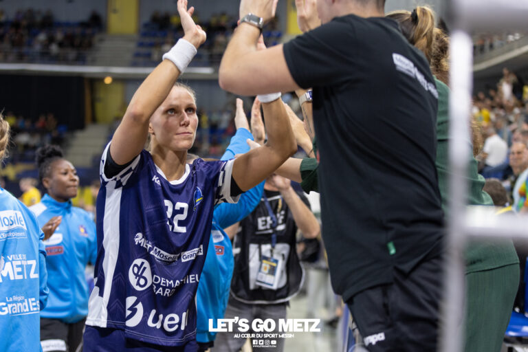 41 Metz Handball se rend à Dortmund ce dimanche (14 h) pour valider officiellement sa place en quarts de finale de Ligue des Champions. Posons d’emblée l’équation de cette fin de phase de poules de Ligue des champions pour Metz Handball. Les Dragonnes sont bien calées à la deuxième place de la poule A. Elles comptent deux points de retard sur le leader Györ et trois d’avance sur Esbjerg à deux journées du terme de cette première phase. Si mathématiquement, à l’heure où nous écrivons ces lignes, la première place est toujours accessible aux Jaune et Bleu, leur préoccupation principale est de mettre définitivement à distance la formation danoise. Les partenaires de Xénia Smits et Chloé Valentini ont l’objectif de définitivement valider cette deuxième place directement qualificative pour les quarts de finale. Et Győr pourrait être un allié de circonstance. Györ pourrait simplifier la tâche de Metz Handball En effet, si une victoire des championnes d’Europe en titre sur le parquet du briseur d’espoir de médaille des Messines lors du dernier Final Four de la compétition leur assurerait la première place, elle servirait aussi les desseins des filles d’Emmanuel Mayonnade. Metz Handball débuterait sa rencontre dimanche (14 heures en direct sur Eurosport 360 5) en tant que membre du top 8 européen. Le terrain livrera son verdict ce samedi aux alentours de 19 h 30. Mais, quel que soit le résultat de cette affiche, nul doute que Metz Handball aura à cœur de réaliser la meilleure prestation possible face au Borussia Dortmund. D’une part, parce que les Dragonnes ont toujours faim de victoires et qu’elles voudront montrer un tout autre visage que celui proposé ce mercredi aux Arènes face à Toulon malgré le succès. D’autre part, parce qu’elles évolueront devant une cinquantaine de supporters qui ont choisi d’effectuer le déplacement dans la Ruhr. Ces derniers auront l’occasion de donner le change au Mur jaune local qui entonnera en avant match le « You’ll never walk alone » à l’image de ce qui se fait à Liverpool. Dortmund doit encore assurer sa qualification en Play-Offs Et le groupe entraîné par Hendrikus Groener compte sur son public pour lui donner l’énergie nécessaire à valider sa place en Play-offs. Car, si les Jaune et Noir sont actuellement sixièmes et qualifiées pour les Play-Offs avec quatre points d’avance sur Storhamar, elles restent sous la menace des Norvégiennes qui ont l’avantage du goal-average particulier et ont un calendrier plus favorable. Tandis que Dortmund se rendra à Györ pour la dernière journée, son poursuivant immédiat se rend à Podgorica, dernier, avant de recevoir Bistrita. Autant dire que Lois Abbingh ou encore l’ancienne Dragonne Alina Grijseels voudront tout faire pour se mettre à l’abri le plus vite possible. Pour cela, il leur faudra montrer un autre visage qu’en septembre dernier en Lorraine. Mais les Dragonnes feront tout pour contrarier leurs plans pour continuer à marcher vers Budapest où elles comptent bien se rendre avec leurs fidèles supporters en juin prochain. Crédit photos: Matthieu Henkinet (archives)