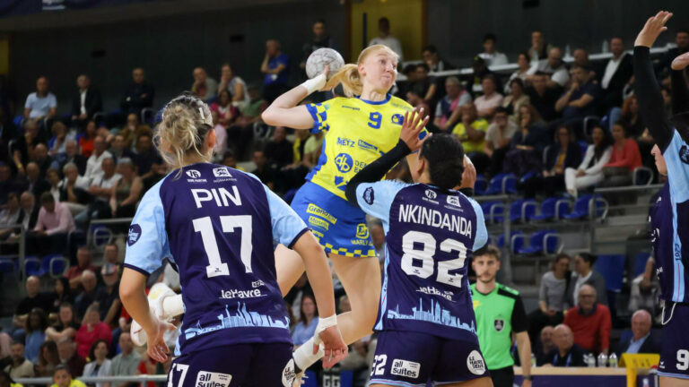 1,7K En déplacement dans le Val-de-Marne, Metz Handball a confirmé sa domination en s’imposant largement contre la Stella Saint-Maur (20-40). Fraîchement revenu de Roumanie après avoir été bousculé à Bistrita, Metz Handball abordait son déplacement contre la Stella Saint-Maur comme l’opportunité de signer une quatrième victoire consécutive en Ligue Butagaz Énergie, tout en laissant Johanna Bundsen et Laura Godard au repos Metz Handball en contrôle Metz prenait immédiatement les commandes grâce à une intensité sans faille (0-2 en moins de deux minutes, puis 3-7 à la 9e). Portées par l’efficacité de Lucie Granier (4/4), de Suzanne Wajoka (4/4) et de Léna Grandveau (3/4), les Dragonnes mettaient bien en place leur puissance offensive et leur variété de jeu pour creuser l’écart. En face, Saint-Maur s’accrochait avec Chloé Pugliese et Louison Boisorieux, au point de revenir à deux longueurs sur les Championnes de France. Emmanuel Mayonnade décidait de poser un temps-mort bien senti au quart d’heure de jeu (6-8, 15e). Au sortir de ce dernier, Metz accélérait en creusant l’écart et en exploitant parfaitement les supériorités numériques pour inscrire 12 buts en à peine 15 minutes de jeu. Malgré quelques fulgurances, les Saint-Mauriennes subissaient la cadence et manquaient trop d’occasions face au but. Les tirs manqués permettaient à Metz de prendre une avance confortable dès la première période, avec un score de 21-10 à la pause. Sabrina Novotná et l’attaque messine scellent le succès La seconde période confirmait la domination messine. Après avoir atteint une avance déjà conséquente, Metz continuait d’imposer son rythme effréné des quinze minutes précédentes, tandis que Sabrina Novotná effectuait une entrée déterminante rendant inefficaces les rares initiatives offensives de la Stella Saint-Maur (16-31, 45’). Malgré la combativité de quelques individualités, les Franciliennes n’étaient pas en mesure de revenir dans le match. Metz atteignait même +20 à cinq minutes de la fin, sur un jet de 7m de Sarah Bouktit. Les gardiennes, Marie Lachat et Romane Lehuaut-Parc, peinaient à contenir l’attaque messine. Emmanuel Mayonnade profitait de l’occasion pour faire tourner l’effectif. Toutes les joueuses pouvaient ainsi participer au festival offensif messin du jour. Les Messines déroulaient alors jusqu’au coup de sifflet final pour s’imposer finalement 20 à 40, un écart qu’elles n’ont jamais laissé échapper. Avec cette prestation complète, Metz Handball confirme sa dynamique positive et doit désormais la prolonger en Ligue des Champions face à Buducnost, ce samedi. Statistiques de la rencontre Stella Saint-Maur Romane Lehuaut-Parc (2 parades sur 11 tirs), Marie L’achat (5/35). Sephora Genyah (0 but sur 2 tirs), Zeina Injai (0/1), Rakia Rezgui (1/1), Melina Peillon, Déborah Kpodar (4/6), Maissa Maurice (2/6), Assa Sissoko (0/1), Chloé Pugliese (4/7), Elise Delorme (1/1), Louison Boisorieux (4/9), Fatou Karamoko (2/2), Alexiane-Béa Pierre (2/2). Metz Handball Sabrina Novotná (8 parades sur 18 tirs), Catherine Gabriel (4/14). Blandine Gros (2 buts sur 3 tirs), Tyra Axnér (3/4), Suzanne Wajoka (6/7), Anna Albek (1/1), Anne-Emmanuelle Augustine (1/2), Xenia Smits (2/2), Betchaidelle Ngombele (3/5), Sarah Bouktit (9/9), Lucie Granier (4/4), Léna Grandveau (3/5), Petra Vamós (4/4), Lylou Borg (2/3). Crédit photo : Zoé Keller/Let’s Go Metz