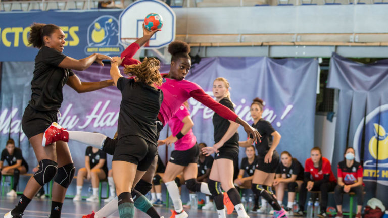 476 Le Metz Handball a perdu son match de reprise hier après-midi en s’inclinant 27-35 en amical face Besançon. Les dragonnes démarrent leur campagne de préparation par une défaite face au rival historique. Pas de quoi s’inquiéter pour autant… Privé de Bruna de Paula, Chloé Valentini, Debbie Bont, Méline Nocandy et du duo Emmanuel Mayonnade – Ekaterina Andryushina actuellement au Japon, Metz Handball jouait son premier match de préparation hier en fin d’après-midi. Melvine Deba en phase de reprise et Orlane Kanor en convalescence manquaient également à l’appel. Les messines qui ont récemment obtenu leur wild card pour la ligue des champions et hérité d’un groupe relevé pour cette prochaine édition, auront cette année la lourde tâche de reconquérir l’hexagone après une saison compliquée dominée par Brest. Quoi de mieux pour se mettre en jambe qu’une confrontation face l’ESBF ? Les nouveaux visages du Metz Handball Si les départs ont été nombreux à l’issue de la saison, Manon Houette, Mahé Sajka, Maud-Eva Copy, Tjasa Stanko, Dinah Eckerle, Daphne Gautschi, Yvette Broch et Ailly Luciano, Metz a réussi son recrutement. La grosse sensation de l’intersaison c’est bien entendu la signature de l’arrière Bruna de Paula – MVP du championnat de France 2019/2020 et du Final 4 de la dernière European Handball League – La Brésilienne qui a montré tout son talent durant les JO de Tokyo rejoindra les rives de Moselle très bientôt, à l’instar de la nouvelle ailière gauche internationale, Chloé Valentini. Ajoutez à cela le retour en tant que joker de luxe de Tamara Horacek pour pallier l’absence d’Orlane Kanor, blessée au tendon d’Achille, et la promotion des jeunes Emma Jacques et Sarah Bouktit, récemment élue meilleure pivot de l’Euro U19, et vous obtenez un groupe déjà impressionnant sur le papier. De son côté, Besançon s’apprête à vivre un tout nouveau cycle après le départ de Raphaëlle Tervel et de son staff, présent depuis 2016. Sébastien Mizoule (ex-responsable du Centre de formation de l’ESBF et coach de l’équipe réserve) a la rude mission de reprendre le flambeau. Il devra poursuivre la progression d’une équipe qui sera sur tous les tableaux à la rentrée. Troisième de la saison 2020/2021, Besançon s’est de nouveau qualifié en European Handball League (C2). Les Bisontines débuteront leur campagne européenne par un 3ème tour qualificatif en Novembre. Un groupe inédit pour cette première rencontre Clément Alcacer, en charge de l’équipe en l’absence d’Emmanuel Mayonnade, avait convoqué un groupe inédit composé de nombreuses joueuses du centre de formation : Hatadou Sako / Ivana Kapitanovic / Lalie Vernay / Zaliata Mlamali / Laura Kanor / Meissa Maurice / Eve Barlet / Louise Burgaard / Giulia Fabbo / Astride N’Gouan / Laura Fauvarque / Tamara Horacek / Anne-Emmanuelle Augustine / Emma Jacques / Laureen Dembele / Sarah Bouktit / Camila Mijcevic Une première mi-temps compliquée Les débats furent plutôt équilibrés en début de match. Les deux équipes ont pratiqué un handball efficace, se rendant coup pour coup. C’est pourtant Besançon qui prenait les devants à la 10ème minute (7-9). Si les combinaisons entre Astride N’Gouan, Tamara Horacek et Camila Mijcevic ont su transpercer la défense de l’ESBF dans les premières minutes, c’est en défense que les dragonnes ont pêché. Prises de vitesse sur les contre-attaques rapides bisontines, les messines ont laissé leurs adversaires mener la barque. Menées 17-20 à la mi-temps, les joueuses du Metz Handball ont couru après le score pendant tout le premier acte. Avec seulement 25% d’arrêts, Ivana Kapitanovic n’a pas été mise en réussite. De l’autre côté du terrain, le réalisme en attaque a également manqué aux jaunes et bleues… En rose pour l’occasion. (17/30) Un sursaut… et puis plus rien Le match redémarrait sur un rythme effréné. Les messines reboostées reprenaient le contrôle de la partie. Elles recollaient même au score (24 – 24) à la 10ème minute de jeu. Mais rapidement, les Bisontines repassaient devant et distançaient à nouveau les dragonnes (15′) 25 – 28. Coupables de nombreuses maladresses dans les relances rapides et d’un manque de précision dans les petits espaces comme au shoot, les messines ont laissé le match leur échapper progressivement : Un manque évident d’agressivité en défense et d’explosivité en attaque ; Beaucoup de précipitation dans le dernier geste à l’image de Tamara Horacek en fin de match. Les dragonnes ont également eu des difficultés à trouver des solutions sur les ailes malgré quelques fulgurances de Laureen Dembele, pourtant utilisée loin de son poste de prédilection. En face, les bisontines ont déroulé. Sous l’impulsion d’une Pauline Robert en feu et d’une Aleksandra Rosiak impressionnante, les joueuses de Besançon ont creusé un peu plus l’écart en fin de rencontre malgré quelques sursauts de révolte de Sarah Bouktit ou de Zaliata Mlamali. A noter la sortie sur blessure d’Hatadou Sako. Espérons que cela ne soit pas trop sérieux. Score final 27 – 35. Il n’y a pas péril en la demeure Amputées de nombreuses cadres internationales occasionnant un manque de profondeur sur certains postes, les dragonnes ont affronté une équipe de Besançon réaliste. Le manque d’expérience fût criant pour ce groupe très rajeuni pour l’occasion et on a senti certaines joueuses maladroites dans leur désir de faire la différence. Pour autant, tout n’est pas à jeter dans la prestation des messines, qui n’en sont qu’aux balbutiements de leur préparation au rythme des programmes de Nicolas Jarzat et sous l’impulsion de Clément Alcacer.D’ici une dizaine de jours, la présaison devrait prendre un nouveau rythme avec le retour des Olympiennes et des coachs au grand complet, Emmanuel Mayonnade en têt