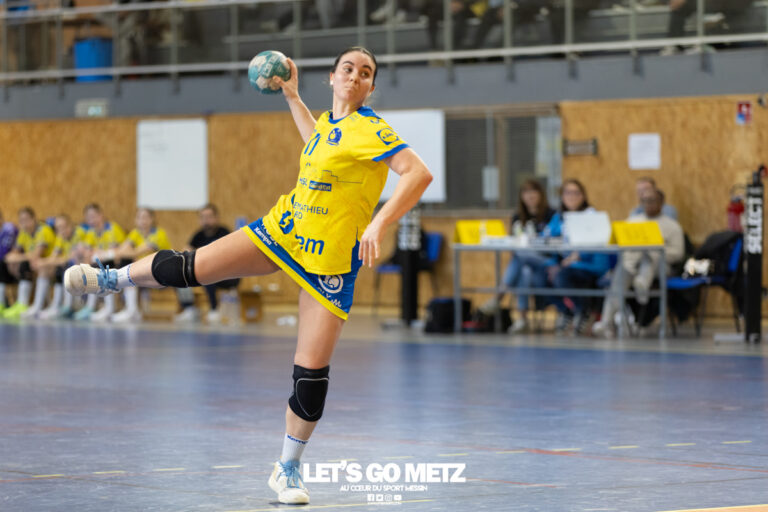 1,1K Deux joueuses de Metz Handball ont été appelées par Éric Baradat à participer au regroupement de l’équipe de France U20 de handball cette semaine. Alors que cinq Dragonnes sont sélectionnées par Sébastien Gardillou pour la double confrontation face à l’Allemagne (jeudi 18 h 30 à Trèves puis samedi 18 h à Besançon), l’équipe de France U20 est également réunie à la Maison du handball. Claire Koestner et Elea Ferdilus, au pied du podium du Mondial U18 l’été dernier, en sont. Il s’agit de préparer un tournoi international amical qui se déroulera en Hongrie du 6 au 9 mars. Une parenthèse avant de retrouver l’équipe de Nationale 1 entraînée par Nina Kanto qui, comme son aînée, a remporté ses quatorze premières rencontres depuis l’ouverture de la saison. Le prochain rendez-vous sera un choc entre deux centres de formation réputés sur le parquet de Besançon (3e). La rencontre aura lieu le dimanche 16 mars prochain à 16 heures. Photo: Matthieu Henkinet (Archives)