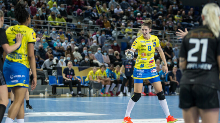 480 L’objectif était clair pour les dragonnes du Metz Handball face à Sävehof. Gagner et retrouver de la confiance après le revers contre Moscou. Objectif atteint. Et avec la manière… A peine quatre jours après un cuisant revers face au CSKA Moscou lors du match en retard aller de Ligue des Champions, les joueuses de Metz Handball recevaient à nouveau les Suédoises de Sävehof pour le début de la phase retour. La jeune équipe emmenée par une Jamina Roberts en feu que les Dragonnes sont allées battre une semaine plus tôt en Scandinavie sur le score de 28-31. Opération rachat pour les protégées d’Emmanuel Mayonnade et une occasion en or de renforcer leur deuxième place au classement derrière Györ. Le Sept de départ des dragonnes 2. Bruna De Paula 6. Chloé Valentini 9. Astride N’Gouan10. Méline Nocandy12. Ivana Kapitanovic 14. Debbie Bont19. Louise Burgaard Un début de match plutôt tranquille Les débats étaient relativement équilibrés dans les premières minutes du match. Un peu trop au goût d’Ivana Kapitanovic qui réussissait coup sur coup deux arrêts de grande classe et permettait aux Messines de faire un premier break. Mais les Scandinaves recollaient rapidement 7-6 (10′). Bruna De Paula se fendait alors d’une roucoulette dont elle a le secret (12′) pour le plus grand bonheur des Arènes. Puis ce fût au tour de Méline Nocandy de faire le spectacle. +3 pour les dragonnes 11-8 (17′). La numéro 10 prise à défaut quelques jours plus tôt se montrait déjà précieuse aussi bien en phase défensive qu’offensive. Hatadou Sako marquait ensuite les esprits lors de son entrée en jeu avec un premier arrêt spectaculaire (26′). La mi-temps s’achevait sur un score de 19-15 en faveur des Dragonnes en mode diesel qui assuraient le principal. A noter le retour en forme d’Orlane Kanor dont les entrées en phases défensives furent couronnées de succès. Retour du rouleau compresseur Le rythme s’accélérait en seconde période. Hatadou Sako continuait son festival tandis que Louise Burgaard élevait son niveau de jeu (8′) 22-17. Le trio Nocandy/De Paula/Burgaard était décidément trop fort pour les Suédoises. Les visiteuses ne devaient leur salut qu’à une accumulation de jets de sept mètres 25-20 (14′). Mais les Scandinaves prenaient l’eau 27-20 (18′). La forteresse jaune et bleue retrouvait l’imperméabilité qu’elle avait perdue contre Moscou, à l’image d’Ivana Kapitanovic et Hatadou Sako, impressionnantes dans les cages. Tout le monde voulait participer à la fête. Emmanuel Mayonnade pouvait faire tourner tranquillement son effectif et donner du temps de jeu à la jeune garde, permettant à Laureen Dembele et Anne Emmanuelle Augustine d’inscrire leurs premiers buts Européens. Le rouleau compresseur était de retour 32-21 (25′). Et sans pitié, Metz Handball achevait Sävehof 35-21 et assurait sa position de dauphin de Györ. Finir l’année sur une note positive Si la trop large défaite contre le CSKA Moscou fait tâche, le parcours des Dragonnes en ligue des Champions cette année reste pour le moment remarquable. Seulement deux revers pour six victoires. Sur seize équipes engagées, seul Györ fait mieux avec ses huit succès. Il était important pour les Mosellanes d’afficher de nouveau un visage conquérant. Le même qu’en championnat où elles survolent les débats pour le moment. Si les Dragonnes gardent le cap et réitèrent ces performances en seconde moitié de saison, 2022 pourrait bien être leur année. Les statistiques : Metz Handball2. Bruna De Paula : 4/5 – 1 passe décisive – 1 interception6. Chloé Valentini : 2/6 – 1 passe décisive8. Camila Micijevic : 1/3 – 1 passe décisive9. Astride N’Gouan : 3/3 – 1 passe décisive10. Méline Nocandy : 6/7 – 5 passes décisives11. Tamara Horacek : 6/8 – 3 passes décisives – 1 interception12. Ivana Kapitanovic : 5/19 arrêts (26.32%)14. Debbie Bont : 2/215. Anne-Emmanuelle Augustine : 1/117. Orlane Kanor : 0/0 – 1 interception – 2 contres19. Louise Burgaard : 5/6 – 7 passes décisives – 1 interception21. Laura Kanor : 0/027. Sarah Bouktit : 2/331. Adriana Cardoso De Castro : 2/444. Laureen Dembele : 1/299. Hatadou Sako : 9/16 arrêts (56.25%) IK Sävehof1. Sofie Börjesson : 0/9 arrêts (0%)2. Ida Rahunsen : 2/66. Trine Wacker Mortensen : 3/57. Elin Liljeros Heikka : 0/08. Jamina Roberts : 4/6 – 3 passes décisives11. Ellenor Aström Nilsson : 1/2 – 1 passe décisive15. Linn Johansson : 0/0 – 1 contre16. Wilma Kroon Andersson : 9/35 arrêts (25.71%) – 1 passe décisive – 1 interception18. Laura Cecilie Jensen : 3/7 – 3 passes décisives – 1 interception20. Thea Blomst : 7/9 – 1 interception21. Emilia Lindmark : 0/123. Linn Andersson : 0/229. Frida Rosell : 0/3 – 1 passe décisive55. Tamara Haggerty : 1/2 La galerie du match Crédit photos : Matthieu Henkinet