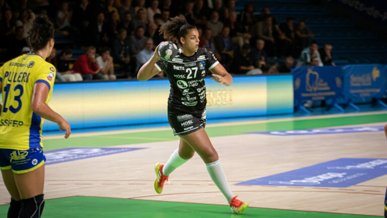 494 En déplacement dans le Nord de la France, les joueuses de Manu Mayonnade se sont imposées péniblement 30-34 face à Saint Amand. Metz Handball ne s’attendait probablement pas à être autant secoué dans le Nord de la France ce mercredi soir. En effet, les Dragonnes de Metz Handball ont vécu un match ô combien compliqué. Après avoir enchaîné les rencontres, les joueuses de Manu Mayonnade semblaient un peu émoussées. Un démarrage poussif des Mosellanes laissait leurs adversaires du soir rythmer la rencontre. (7-6 10′, 10-10 19′). Bien qu’elles ne montraient pas un visage dominateur les Messines prenaient malgré tout les devants sans pour autant réussir à prendre le large. Les coéquipières de la très remuante Emma Puleri ont poussé les Dragonnes dans leurs derniers retranchements. Un jeu haché par des erreurs offensives et désorganisé en défense ont donné de l’espoir à Félix Garcia et son équipe. Après un mano à mano de plus de 20 minutes et un temps mort du coach local, les Messines se remettaient légèrement dans le droit chemin en infligeant un 5-1 aux Amandinoises. Cette révolte permettait aux Dragonnes de rentrer aux vestiaires avec 4 buts d’avance, loin d’être satisfaisant. (15-19 MT) Metz Handball bousculé à Saint Amand Alors qu’on attendait un retour des vestiaires plus prolifique, les Messines ont semblé éteintes. (18-20 34′) Il aura fallu quelques exploits individuels de Bruna de Paula et compter sur l’adresse de Sarah Bouktit face au but pour battre Typhaine Plée. A la 41ème minute de jeu, un coup de tonnerre surprenait cependant les Messines. Coupable d’une chute maladroite, Laura Kanor recevait un carton rouge, particulièrement surprenant.La situation donnait tout le loisir aux supporters de la salle Maurice Hugot de pousser derrière les joueuses de Saint Amand qui ont continué à croire en l’exploit en revenant à deux petites longueurs. (25-27 46′) Touchées mais pas abattues, les Dragonnes continuaient malgré tout d’assurer l’essentiel pour rester à flot jusqu’à ce que la capitaine Bruna De Paula inscrive trois des sept derniers buts messins et ouvre définitivement le chemin de la victoire à son équipe. (30-34 FM) Si Metz Handball rentre avec les trois points de la victoire, le visage fermé des Dragonnes montre bien le mécontentement d’une telle prestation. Un match gagné à l’expérience et à la qualité de l’effectif, mais il faudra certainement montrer autre chose dès ce week-end pour regarder dans les yeux le Rapid Bucarest en Champions League. Les stats de la rencontre Metz HandballSako (5 parades sur 23 tirs), Depuiset (3/14)De Paula (7 buts sur 11 tirs), Valentini (3/4), Jorgensen (1/6), Horacek (3/3), Bont (3/5), Burgaard (4/6), Kanor (2/2), Bouktit (5/5), Maslova (4/6), Le Blevec (2/3), Barthelemy, Fauvarque. Saint-AmandPlee (8 parades sur 23 tirs), Vojnovic (3/22)Frecon-Demouge (1 but sur 4 tirs), Puleri (4/4), Bolling (0/1), Chalamandrier (6/7), Sustackova (5/7), Maurin (4/5), Boisorieux (7/12), Bellec (3/3), Brkic, Ingala, Buzin. Crédit Photo : Lucas Deslangles / Let’s Go Metz