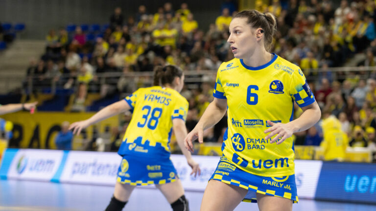 195 Avant de jouer un match décisif pour son avenir européen dimanche, Metz Handball reçoit Toulon ce mercredi (20 h) pour gagner en certitudes. Metz Handball se rend ce dimanche à Dortmund pour baliser son avenir européen. Une victoire en Allemagne validerait la qualification directe pour les quarts de finale de Champions League. Mais avant de se concentrer sur une fin de semaine qui conditionnera la suite de leur saison, les Dragonnes ont déjà rendez-vous avec Toulon ce mercredi (20 heures) aux Arènes. Une rencontre à aborder avec sérieux, pour deux raisons. D’une part, pour engranger des victoires et ne pas laisser le Brest Bretagne s’envoler en tête du classement. D’autre part, cette opposition doit permettre aux partenaires de Chloé Valentini de gagner en certitudes dans leur jeu. Car, si la réception des Roumaines de Gloria Bistrita s’est conclue par un succès ce samedi, le jeu produit par les Jaune et Bleu ne présentait pas toutes les garanties et ne respirait pas la sérénité, dans la lignée des copies rendues depuis le début de l’année 2026. En témoignent notamment ces six buts consécutifs encaissés au cours du premier acte. Toujours privé de Suzanne Wajoka mais pouvant de nouveau compter sur Manon Errard, Metz Handball aura face à lui un adversaire, actuellement dixième au classement de Ligue Butagaz Energie et luttant pour son maintien. Si la rencontre aller en novembre avait vu les championnes de France s’imposer de douze buts (24-36), les Varoises ont des qualités à faire valoir. Des objectifs à atteindre pour certaines joueuses afin d’augmenter le capital confiance A commencer par celles de Mari Finstad Bergum. La Norvégienne est la meilleure scoreuse de l’équipe avec 80 réalisations, cinquième total de la division après 14 journées. Béatriz Sousa et Sofia Deen Yessouf, respectivement 51 et 41 buts (même total qu’Ana Albek), seront les autres principaux dangers à surveiller d’une équipe qui reste sur une défaite à domicile face à Sambre Avesnois (22-25) mais qui a su s’imposer face à Plan-De-Cuques deux journées plus tôt. Même si la prestation collective sera prioritairement recherchée ce mercredi, des Dragonnes pourraient franchir des caps au scoring puisque Sarah Bouktit en est actuellement à 90 buts quand Lena Grandveau en est à 48 et Tyra Axnér à 45. De petits objectifs à atteindre qui peuvent faire gagner en confiance en vue des échéances à venir. Crédit photo: Matthieu Henkinet / Let’s Go Metz