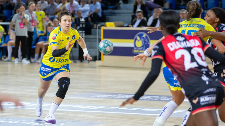884 Les Dragonnes de Metz Handball se sont offertes leurs homologues de l’OGC Nice hier soir aux arènes de Metz. Une nouvelle victoire 36-22 qui vient confirmer le début de saison canon des Messines. Récit. De retour aux arènes après un déplacement victorieux à Budapest, les Dragonnes de Metz Handball se devaient de tenir leur rang contre l’OGC Nice Handball. Face aux Aiglonnes, sixièmes du championnat avant le coup d’envoi, les Messines avaient pour objectif de maintenir la cadence de ce début d’exercice. Et les protégées d’Emmanuel Mayonnade ont tenu toutes leur promesses en s’imposant 36-22. Les jaunes et bleues pointent en tête de la Ligue Butagaz Energie, devant Nantes qui s’est incliné à domicile face à Brest. Imprenables La capitaine des Dragonnes, Chloé Valentini, lançait les hostilités en inscrivant le premier but de la rencontre. À peine trois minutes plus tard, les Messines prenaient déjà le large (6-2). Les Niçoises, surpassées, multipliaient les imprécisions et laissaient déjà filer le match. Camille Depuiset se mettait rapidement en lumière en stoppant plusieurs tirs dont un jet de sept mètres. Particulièrement impressionnantes, les Dragonnes ne laissaient pas respirer les rouges et noires (10-3) et Clément Alcacer devait prendre son premier temps mort pour remotiver ses troupes (10′). Les Aiglonnes tentaient de relever la tête tant bien que mal mais Chloé Valentini en décidait autrement et maintenait un écart de +7 (15-8) avant d’être exclue deux minutes pour excès d’engagement (18′). Pas de quoi effrayer les Messines qui alourdissaient encore un peu la marque (18-9) grâce notamment à Julie Le Blevec (22′). À cinq minutes de la mi-temps, Emmanuel Mayonnade effectuait des changements avec entre autre Mia Brkic et Zaliata Mlamali. C’est d’ailleurs la jeune numéro 23 qui inscrivait le vingtième but des Messines (27′). L’exclusion provisoire d’Emma Jacques permettait aux Niçoise de recoller à six but à la pause (21-15). Irresistibles En seconde période, Hatadou Sako entrait en jeu à la place de Camille Depuiset. La gardienne internationale s’illustrait elle aussi très rapidement en stoppant les tirs de ses anciennes coéquipières. Pas question pour les jaunes et bleues de baisser la garde ou de réduire l’intensité. Si Lucie Granier manquait de réussite dans ses tentatives, le duo Jorgensen-Valentini était inarrêtable. Kristina Jørgensen prouvait une nouvelle fois qu’elle était la patronne et la plaque tournante des Dragonnes. De son côté, Sarah Bouktit, toujours impressionnante, portait le score à 29-18 (45′). Clément Alcacer puis Emmanuel Mayonnade posaient leur dernier temps à mort à 32-19 (50′ et 52′). La fin du match allait être plus décousue et les deux équipes plus brouillonnes. Emma Jacques retrouvait alors sa puissance (54′ et 55′). Les Aiglonnes multipliaient les loupés et Metz Handball remportait son quatrième match, sans surprise, devant quelques 2000 fans. Score final 36-22. Impressionnantes. Ce début de saison démarre décidément très bien pour les Dragonnes. Avec quatre victoires en quatre matchs, Metz Handball caracole en tête du championnat devant les Neptunes de Nantes. Prochain rendez-vous pour les Messines, dimanche aux arènes avec la réception des Danoises de Ikast en Ligue des Champions. Statistiques Metz Handball :Camille Depuiset (4 parades sur 19 tirs), Hatadou Sako (11/18).Chloé Valentini (9 buts sur 11 tirs), Anne Mette Hansen (2/7), Sarah Bouktit (4/6), Louise Vinter Burgaard (3/3), Lucie Granier (0/2), Djazz Chambertin (1/2), Alina Grijseels (4/7), Kristina Jørgensen (7/9), Mia Brkic (0/0), Zaliata Mlamali (1/1), Julie le Blevec (2/3), Emma Jacques (3/4) OGC Nice Handball :Nicole Wiggins (1 parade sur 12 tirs), Marija Colic (11/36)Ehsan Abdelmalek (2 buts sur 6 tirs), Raissa Dapina (2/3), Dienaba Sy (2/4), Tena Petika (4/6), Anne-Emmanuelle-Gaëlle Augustine (2/5), Adriana Holejova (1/5), Mathita Diawara (3/3), Marie Fall (1/1), Gordana Mitrovic (2/4), Sitha Laureen Dembélé (0/1), Wendy Semedo Monteiro (2/3), Margot Le Blevec (1/1) La galerie de la rencontre Crédit photo : Matthieu Henkinet