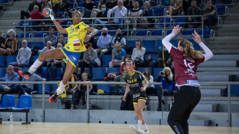 426 Metz Handball affrontait ce samedi soir le Toulon Métropole Var Handball aux Arènes. Face à des Toulonnaises assurées du maintien, les messines se devaient d’assurer la victoire devant leur public. Alors que Bruna de Paula, Debbie Bont, Hatadou Sako et Emma Jacques restaient prisonnières de l’infirmerie, les joueuses de Metz Handball recevaient Toulon ce samedi. Une fois sur le parquet, le ton était donné très rapidement. Metz prenait le contrôle du jeu dès le début de la rencontre. Par une étincelante Orlane Kanor qui marquait 3 des 4 premiers buts, elles prenaient très rapidement le large au tableau d’affichage. Pleines d’autorité et d’assurance dans leur jeu, elles jouaient avec confiance face à des Toulonnaises qui peinaient dans le dernier geste. En témoignent les phases de possessions régulières qui étaient proposées par les Jaunes et Bleues. En réalité, Toulon peinait à développer son jeu et se heurtait systématiquement à une défense solide grâce notamment à Astride N’Gouan. Grâce Zaadi, replacée au poste d’arrière droite pour remplacer Emma Jacques, blessée, faisait aussi parler toute sa puissance pour repousser les offensives Toulonnaises. Seul petit bémol, les nombreuses fautes messines qui leur coutaient trois exclusions temporaires, vivement contestées par les Arènes. Malgré tout, Metz se permettait de faire le show et prônait le beau jeu. Pour le plus grand plaisir des supporters.Score à la mi-temps : 18 – 6 Metz Handball bousculé mais serein Avec une large avance à défendre, la seconde mi-temps n’aurait pu être que gestion. Mais la réalité s’avérait tout autre. Frustrées par le déroulement du match et brusquées par les décisions arbitrales, les Toulonnaises sortaient les coudes et offraient une deuxième période bien plus âpre. Le second acte était donc en définitive haché par de très nombreuses fautes, parfois grossières et des deux côtés. A l’image d’Agustina Santamarina, de Tamara Horacek, ou encore Maria Wierzba.Jamais mises en danger, les Dragonnes buttaient cependant sur Ophélie Tonds à de nombreuses reprises sur le chemin d’une victoire qui aurait pu être plus conséquente.Score final de de Metz Handball – Toulon : 30 – 20 En prenant rapidement le contrôle de la rencontre, les messines n’ont jamais réellement douté. Notamment grâce à des joueuses que l’on a senti concernées, elles ont su mettre à mal les phases d’attaque toulonnaises. De quoi entretenir la confiance au cœur d’une saison qui pourrait aboutir sur trois phases finales. Les Dragonnes valident leur 22ème victoire de la saison de Ligue Butagaz Énergie. Plus que jamais intouchables en tête du championnat, les joueuses d’Emmanuel Mayonnade vont désormais s’atteler à une trêve internationale qui mobilisera une partie de l’effectif, tout en mettant au repos (bien mérité) les autres. La galerie du match Les statistiques de la rencontre Metz HandballHalter (7 arrêts/27 tirs)Valentini (2 buts/3 tirs), Zaadi (2/3), Micijevic (3/4), N’Gouan (1/1), Nocandy (6/7), Horacek (3/4), Kanor Orlane (5/5), Burgaard (1/3), Kanor Laura (2/5), Bouktit (1/3), Cardoso (2/5), Tuccella (2/3) Toulon Métropole Var HandballTonds (14 arrêts/43 tirs)Berger Wierzba Maria (5 buts/10 tirs), Malovic (2/4), Isic (1/3), Berger Wierzba Anna (4/7), Tonds (0/1), Dupuis (1/5), Salmon (2/3), Lopez (1/1), Julien (2/2), Abdourahim (0/1), Caramello (1/2), M’andrei (1/2) Crédit photo : Matthieu Henkinet/LGM