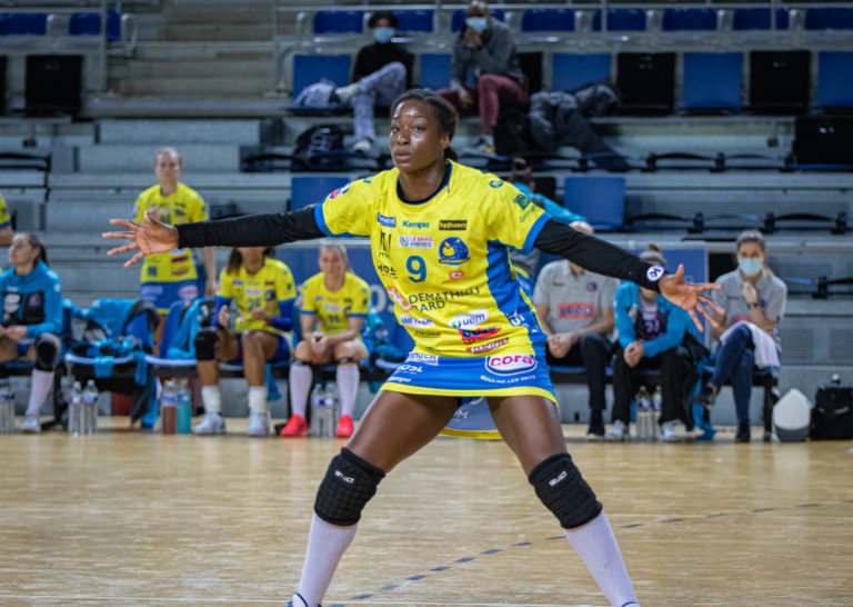 380 Avant d’aborder les playoffs de Ligue Butagaz Energie et un huitième de finale de Ligue des Champions face au Borussia Dortmund, Metz Handball était aux prises avec un gros morceau du championnat, Paris 92, en quarts de finale de de la Coupe de France. Les Dragonnes ont assuré l’essentiel et se sont imposées 30-22 à domicile, validant leur billet pour le dernier carré de la compétition. Ce quart de finale de Coupe de France avait tout du match piège pour Metz Handball. Lors de la dernière visite des parisiennes aux Arènes, il y avait fallu un but d’Ailly Luciano dans les derniers instants de la partie pour permettre aux Dragonnes de repartir avec la victoire (26-25).Comme en novembre dernier, Metz Handball débutait idéalement sa rencontre face à des Lionnes accrocheuses mais dominées. Les coups de boutoir de Camila Micijevic, jouissant d’un temps de jeu conséquent en l’absence d’Orlane Kanor, et le bon placement de la capitaine Astride N’Gouan désarçonnaient complètement la défense parisienne, permettant aux Dragonnes de faire la course en tête. (9-5, 14°)Très appliquées et très rigoureuses, les joueuses d’Emmanuel Mayonnade ont même pris jusqu’à 9 buts d’avance dans cette première période à sens unique. Tout souriait au Metz Handball, à l’image d’Olga Perederiy, plus en difficulté lors de ses dernières sorties, qui retrouvait tout son modjo en attaque.Mi-temps : Metz Handball 18-9 Paris 92 Paris 92 ne pouvait tout simplement pas arrêter Camila Micijevic et ses 3 buts en première mi-temps. (Photo : Matthieu Henkinet) De retour des vestiaires, les Dragonnes ne perdaient pas leur inspiration. Au programme du show Metz Handball, toujours les même invitées : une Hatadou Sako impériale dans les buts, une Camila Micijevic redoutable de loin et une Astride N’Gouan ultra efficace en attaque. L’avance des jaunes et bleues atteignait même les 10 buts ! (25-15, 44°) Une avance irrémédiable que les Dragonnes n’auront pas laissé filer, malgré le baroud d’honneur des parisiennes pour tenter de revenir au score. Metz Handball s’imposait sans grande difficulté et décrochait son billet pour le dernier carré de la Coupe de France.Score final : Metz Handball 30-22 Paris 92 Statistiques de la rencontre Metz Handball :Sako (13 arrêts / 33 tirs), Eckerle (0/2)Gautschi ( 0 but / 1 tir), Micijevic (5/6), N’Gouan (6/6), Nocandy (4/7), Houette (1/2), Bont (0/1), Burgaard (3/4), L.Kanor (2/2), Sajka (2/2), Luciano (4/5), Broch (1/2), Perederiy (2/2)Paris 92 :Serdarevic (5 arrêts / 17 tirs), Gabriel (3/21)Sagna (0 but / 2 tirs), Cissokho (0/1), Thouvenot (0/0) Mazens (2/3), Flippes (0/3), Fofana (1/2), Chauveau (0/0), Offendal (6/11), Mala (4/6), Dos Santos (6/13), Ouattara (1/3), Janiszewska (2/4)