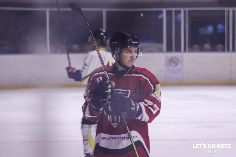 484 Les play-offs pour la montée en D2 démarrent tambour battant pour le Metz Hockey Club. En Savoie, les Messins se sont imposés 5 buts à 2 et prennent une belle option pour la qualification en huitièmes de finale du tournoi d’accession à l’échelon supérieur. Le Metz Hockey Club poursuit sa belle dynamique de fin de saison en battant le HC 73 à la Halle Olympique d’Albertville. Une rencontre qui a très bien démarré avec l’ouverture du score de Lukas Zeliska dès la première minute de jeu le score, l’attaquant messin doublait la mise au début du second tiers-temps. Un deuxième acte plus compliqué pour les grenats qui se voyaient rejoindre au score en l’espace de 5 minutes. Il fallait alors un nouveau coup collier qui était l’œuvre, évidemment, de l’inévitable Lukas Zeliska. Les Messins ne lâcheront plus leur avantage et corseront même la note, 5 buts à 2 score final. Match retour à 18h le 25 Mars à l’Ice Arena de Metz. Hockey Club Savoie 2-5 Metz Hockey Club Tiers-temps : 0-1, 2-2, 0-2. Buts pour le HC73 : Florian Chardonnet (28′), Pier Louis Vadori (33′) ; pour Metz : Lukas Zeliska (1′, 23′, 37′, 50′), Yannis Minana (47′). Statistiques Zeliska : 5 points (4 buts, 1 assist)Hamri : 3 points (3 assists) Esipov : 3 points (3 assists)Le Guen : 1 point (1 assist)Stroppolo : 1 point (1 assist)Minana : 1 point (1 but) Crédit photo : Lilian Bordron / Let’s Go Metz