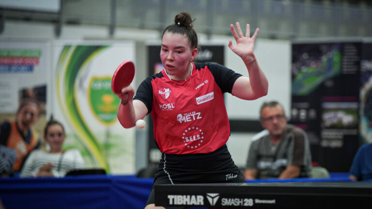 384 Troisième succès en trois matchs de PRO A Dames pour Metz TT, qui a écarté Bayard Argentan (3-0) ce mardi au Complexe Saint-Symphorien. Metz TT enchaîne en PRO A Dames, avec un nouveau succès (3-0) face à Bayard Argentan. Une troisième victoire en autant de matchs de championnat. Loïc Belguise a cependant dû se passer des services de sa Suédoise Christina Källberg, qui a connu un problème d’avion la veille du match. « Je n’allais pas la faire partir à 4-5h du matin, j’ai décidé de ne pas la faire venir », explique l’entraîneur messin. Les Normandes ont quant à elles dû composer sans Sibel Altinkaya, retenue au WTT Contender Muscat à Oman. « On nous avait demandé un report de match mais malheureusement, le calendrier avec les compétitions internationales est impossible », regrette Loïc Belguise. Match de référence pour Tailakova Contrariée dans la première manche (8-10) où elle a dû sauver deux balles de set, Adina Diaconu rapportait le premier point de la soirée à Metz TT (12-10 11-7 11-6). « Il reste des imperfections pour Adina qui n’est pas trop en confiance, mais ça va revenir. Il lui faut un match de référence contre une bonne joueuse », assure Loïc Belguise. Un match de référence que Mariia Tailakova a su délivrer face à Wang Yanan (11-13 11-9 11-8 11-7), qui était pourtant invaincue jusqu’à ce mardi soir en championnat. « Ca lance sa saison, contre une très bonne joueuse. On savait que si on gagnait ce match là, on avait pratiquement remporté la rencontre », glisse le coach messin. Pauline Chasselin a ainsi donné raison à son entraîneur en écartant Zhang Jing en trois sets (11-5 11-7 11-7) pour conclure la rencontre.Place désormais à la Ligue des Champions pour Metz TT, avec les réceptions de Budaörsi (26 octobre) et Quattro Mori (27 octobre) à la fin du mois. « Content que cela arrive, on va pouvoir enchaîner des matchs, d’une autre intensité. Il va falloir élever notre niveau de jeu car si on joue encore à ce niveau-là, ce sera compliqué parce qu’on a une poule très homogène », prévient Loïc Belguise. Metz TT 3-0 Bayard Argentan Diaconu – De Stoppeleire : 12-10 11-7 11-6Tailakova – Wang : 11-13 11-9 11-8 11-7Chasselin – Zhang : 11-5 11-7 11-7