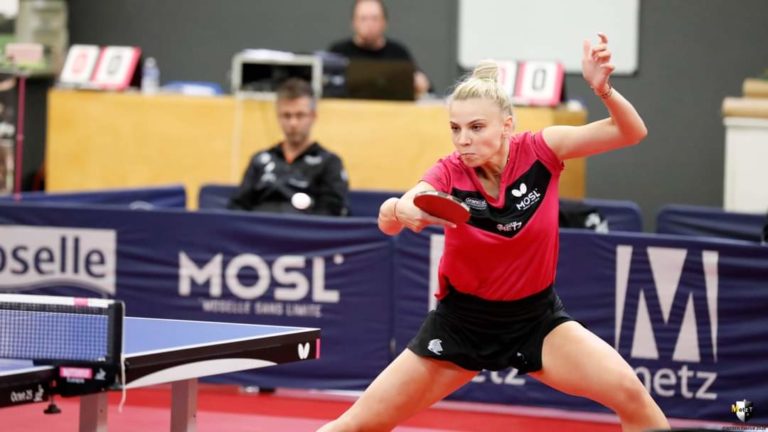 393 Metz TT réussit son début de championnat de France PRO Dames ! Opposées à Grand-Quevilly, les filles de Loïc Belguise se sont imposées 3-1. En revanche, l’équipe de PRO B masculine s’est elle inclinée 3-2 au bout du suspense. Les garçons de Vincent Aumoitte sont en effet passés très près de faire tomber Thorigné-Fouillard. Début de soirée parfait pour les messines ! Fraîchement revenue des Championnats d’Europe avec une médaille d’argent dans ses bagages, Adina Diaconu défiait Anaïs Salpin. Le moins que l’on puisse dire, c’est que la roumaine a fait valoir sa supériorité. Victoire sans accroc en 3 sets (11/8 11/7 11/8) pour la messine de 21 ans ! (Metz 1-0 Grand-Quevilly)Non sans mal, la recrue phare de Metz TT Dina Meshref allait confirmer ce très bon début de rencontre ! Malmenée par Pauline Chasselin, l’égyptienne cédait les deux premiers sets. Un début de match tonitruant de la française, médaillée de bronze aux derniers Championnats d’Europe ! Mais à l’expérience, Meshref renversait la partie et s’imposait en 5 sets (8/11 9/11 11/8 11/8 11/6). (Metz 2-0 Grand-Quevilly)C’était alors au tour de Jiaduo Wu d’être alignée derrière la table avec la délicate mission de conclure la partie. Logiquement dominée par Li Samson, la joueuse vétéran de Metz TT concédait les deux premières manches. Néanmoins, l’ex-internationale allemande ne rendait pas les armes et recollait à 2 sets partout, en sauvant notamment 4 balles de match dans le 4ème set. Malheureusement, la remontada de Jiaduo Wu ne se concrétisait pas et c’est du côté de Li Samson que la partie allait basculer. La joueuse normande s’imposait en 5 sets (9/11 9/11 11/7 12/10 7/11). (Metz 2-1 Grand-Quevilly)S’en suivait un combat des cheffes entre deux joueuses qui se connaissent très bien, Adina Diaconu et Pauline Chasselin ! Comme attendu, le début de rencontre entre les deux femmes était serré, elles se partageaient ainsi les deux premiers sets. Mais c’est Adina Diaconu qui allait faire la différence, plus solide. La roumaine s’imposait en 4 sets (11/5 6/11 11/6 11/8) et offrait la victoire à Metz Tennis de Table ! (Metz 3-1 Grand-Quevilly)METZ TT 3-1 GRAND-QUEVILLYDiaconu vs Salpin : 11/8 11/7 11/8Meshref vs Chasselin : 8/11 9/11 11/8 11/8 11/6Wu vs Samson : 9/11 9/11 11/7 12/10 7/11Diaconu vs Chasselin : 11/5 6/11 11/6 11/8 PRO B Messieurs : Metz TT tout près de renverser Thorigné-Fouillard Esteban Dorr et ses coéquipiers auront fait trembler les bretons de Thorigné-Fouillard (2-3). (Photo : Fabrice Weber/Metz TT Du côté des messieurs, le début de partie n’était pas idéal. Florian Bourrassaud s’inclinait logiquement face à l’iranien Noshad Alamiyan. Malgré ses atouts, Bourrassaud manquait de trouver les solutions face au leader de Thorigné-Fouillard. Défaite en 3 sets (7/11 8/11 5/11) pour le joueur de Metz TT. (Metz 0-1 Thorigné-Fouillard)Fort heureusement pour les joueurs de Vincent Aumoitte, Esteban Dorr allait relancer la machine ! Dans un combat épique face à Léo De Nodrest, le mosellan s’imposait en 5 sets face au breton (9/11 11/7 6/11 11/9 11/3). Royal dans la dernière manche, Esteban faisait le show pour le plus grand plaisir du public de Saint-Symphorien ! (Metz 1-1 Thorigné-Fouillard)Diogo Chen allait confirmer la belle embellie messine ! Le leader de Metz TT faisait valoir son statut en écartant Vincent Picard en 4 sets (11/9 9/11 11/5 11/7). Une victoire pleine de maîtrise du portugais qui assurait au moins deux points à son équipe, en attendant peut-être mieux… (Metz 2-1 Thorigné-Fouillard)Fort de sa belle victoire face à De Nodrest, Esteban Dorr faisait son retour derrière la table. L’opposition était bien plus relevée cette fois-ci puisqu’il retrouvait Noshad Alamiyan. Le lorrain ne créait malheureusement pas la sensation et s’inclinait en 3 sets face à l’iranien (9/11 9/11 8/11), comme son compère Florian Bourrassaud plus tôt dans la soirée. (Metz 2-2 Thorigné-Fouillard) C’était alors un double décisif qui allait décider du sort de la rencontre. Florian Bourrassaud et Diogo Chen défiaient Léo De Nodrest et Vincent Picard dans cet exercice si particulier. Mal embarquée, la paire messine concédait le premier set, avant de se sublimer et d’empocher les deux manches suivantes. La paire bretonne recollait cependant à 2 sets partout. Au terme d’un dernier set âprement disputé où ils ont sauvé 2 balles de match, Bourrassaud et Chen étaient néanmoins contraints de s’incliner (6/11 11/5 11/9 6/11 11/13) au bout du suspense… (Metz 2-3 Thorigné-Fouillard)METZ TT 2-3 THORIGNÉ-FOUILLARDBourrassaud vs Alamiyan : 7/11 8/11 5/11Dorr vs De Nodrest : 9/11 11/7 6/11 11/9 11/3Chen vs Picard : 11/9 9/11 11/5 11/7Dorr vs Alamiyan : 9/11 9/11 8/11Bourrassaud/Chen vs De Nodrest/Picard : 6/11 11/5 11/9 6/11 11/13