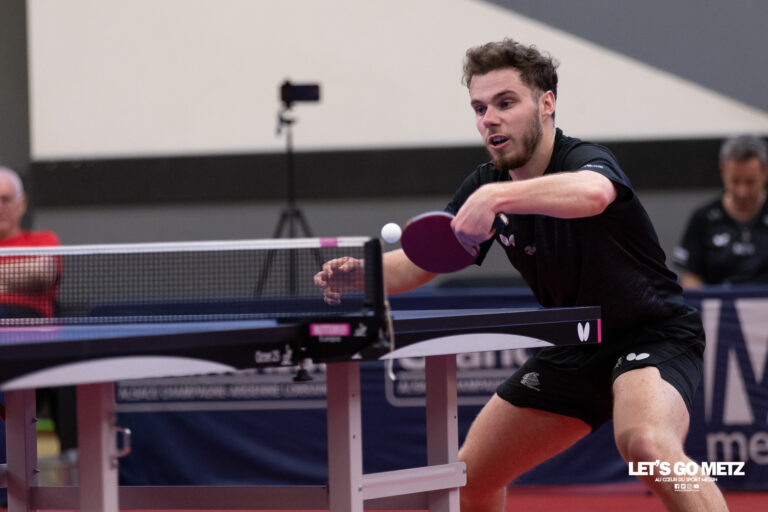 670 A l’occasion du dernier match de la saison de PRO B Messieurs, Metz TT disait au revoir à trois joueurs. Malgré la défaite (1-3) contre Amiens, Esteban Dorr, Diogo Chen et Corentin Mazaud ont reçu un vibrant hommage. Metz TT disputait son dernier match cette saison en PRO B Messieurs. Déjà maintenus depuis de nombreuses semaines, les hommes de Vincent Aumoitte se sont inclinés 3-1 contre Amiens. Mais le résultat n’est qu’anecdotique, ou presque. En effet, le club disait au revoir à trois de ses joueurs : Esteban Dorr, Diogo Chen et Corentin Mazaud. Le plus « Messin » d’entre eux est probablement le premier nommé. Né à Forbach, Esteban Dorr a fait toutes ses classes à Metz TT. Il nous confiait d’ailleurs toute son émotion en mars dernier, au moment de s’engager à Pontoise en PRO A. Une émotion une nouvelle fois perceptible chez le gaucher, ce vendredi, au moment de dire au revoir à son club formateur : « On a fait une super saison, on est 3ème en janvier, c’est dommage de finir comme ça. J’ai eu une appendicite et Diogo (Chen) le Covid quand on devait jouer les deux équipes les plus fortes. Mais je suis vraiment content de notre équipe. Avec Diogo, Flo (Bourrassaud), Coco (Mazaud) et Damien (Llorca) on a une complicité de fou. Avec Dorian (Nicolle, entraîneur) on a des liens qui nous uniront à jamais. A titre personnel, je finis avec 15 victoires pour 6 défaites cette saison, malgré des matchs pendant ma convalescence. » Diogo Chen a fait le show Diogo Chen a connu des hauts et des bas lors de ses quatre années en Moselle. Mais c’est sur un grand match et une victoire qu’il quitte Metz TT. Diogo oscillera entre son club du Sporting Portugal (lieu où il s’entraîne) et Priego, en première division espagnole. « Cela a été quatre années magnifiques ici à Metz. Je remercie l’équipe avec qui j’ai vécu ces quatre saisons, je me sentais comme à la maison. Je voulais vraiment finir sur une victoire personnelle. J’ai donné tout ce que j’avais pour donner des sourires aux gens qui sont venus nous supporter »Seule ombre au tableau, le Portugais a « oublié » de faire sa traditionnelle célébration CR7 après sa victoire. « Je m’étais dit que je voulais faire cette célébration. Mais après ma victoire, j’étais tellement heureux et ému que j’ai oublié de la faire ! », plaisante Diogo Chen. On ne lui en tiendra pas rigueur. Corentin Mazaud dit au revoir, mais pas adieu ? Opéré du cœur il y a deux mois, Corentin Mazaud aurait très bien pu dire adieu à sa carrière. Fort heureusement rétabli bien que convalescent, il disputait lui son dernier match sous les couleurs de Metz TT : « J’ai grandi ici, j’y ai trouvé une famille. Je remercie les coachs et tout le monde au club, j’ai littéralement passer un tiers de ma vie ici. C’était vraiment émouvant », déclare le Rhodanien, ému.Pensionnaire régulier de l’équipe réserve, qui s’est maintenue en Nationale 1, le numéro 4 messin quitte la Lorraine après six saisons et rejoint Nice. L’objectif de Corentin Mazaud et ses nouveaux partenaires ? La montée en PRO B Messieurs : « C’est un nouveau challenge que j’ai hâte de relever. Je n’ai pas accompli tout ce que je souhaitais ici, peut-être que je vais revenir un jour, peut-être pas… Je vais tout de même continuer à m’entraîner à Metz. »L’heure est désormais au repos pour les garçons de Vincent Aumoitte après une saison éprouvante. Enfin presque, puisqu’ils vont un disputer une compétition européenne : la Trophy Cup – l’équivalent de l’Europa Conference League – du 17 au 19 mai à Havířov en République Tchèque. On retrouvera Metz TT en PRO B Messieurs dès la saison prochaine. De son côté, l’équipe féminine du club tentera bien évidemment de défendre son titre de champion de France. Metz TT 1-3 Amiens Dorr – Cifuentes : 8/11 8/11 10/12Mazaud – Cantero : 11/8 7/11 10/12 6/11Chen – Jean : 9/11 11/5 11/8 11/9Llorca – Cifuentes : 7/11 13/11 8/11 6/11 Crédit photo : Julien Buret/LGM