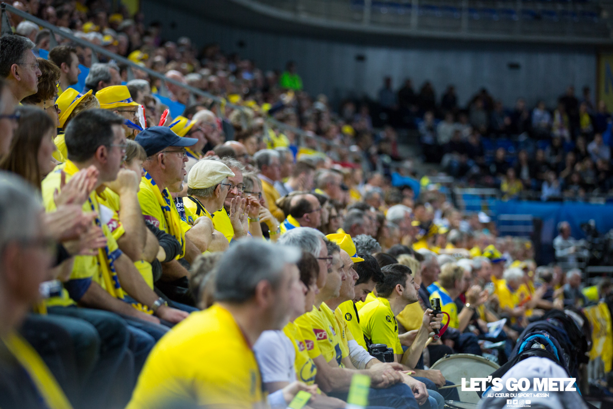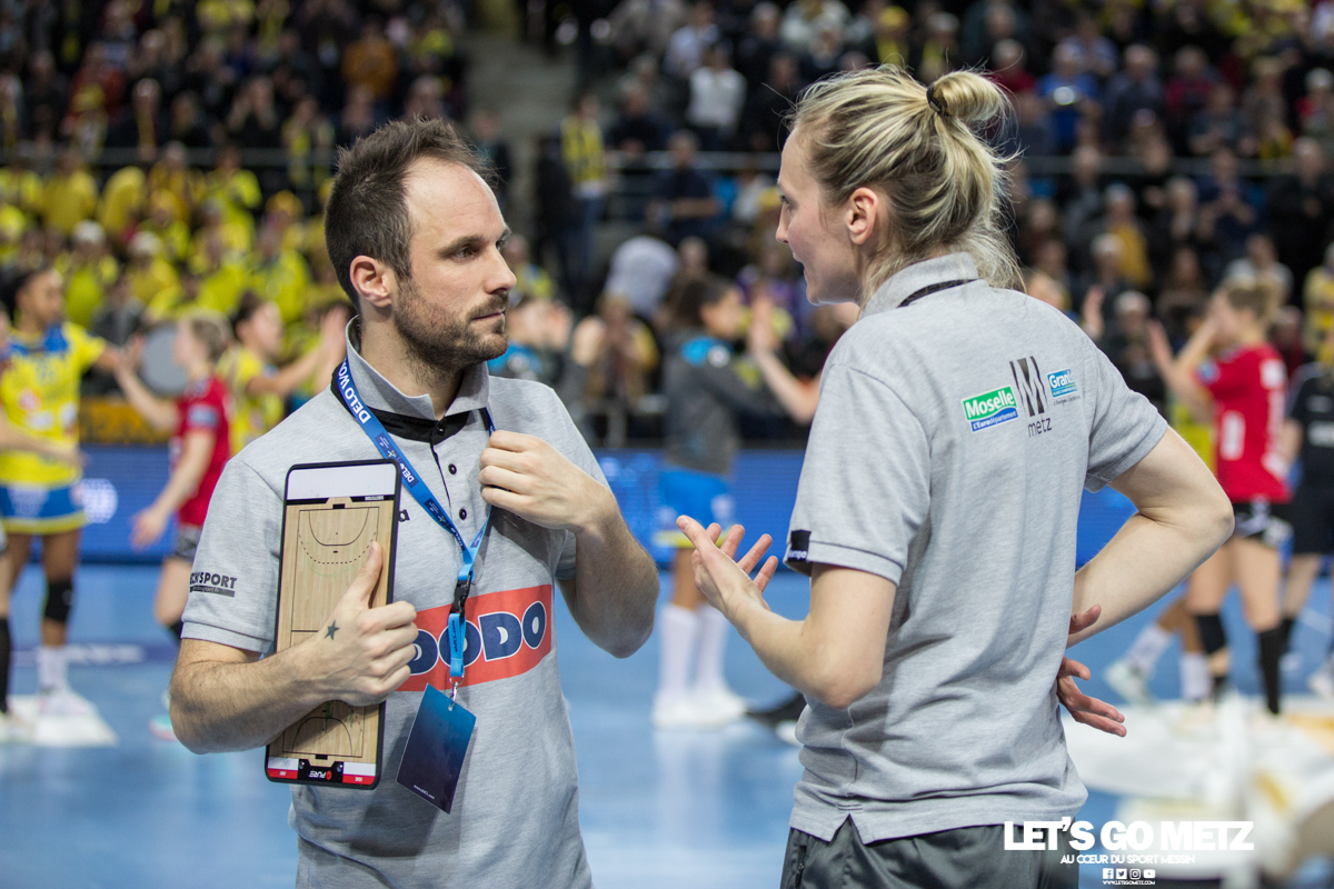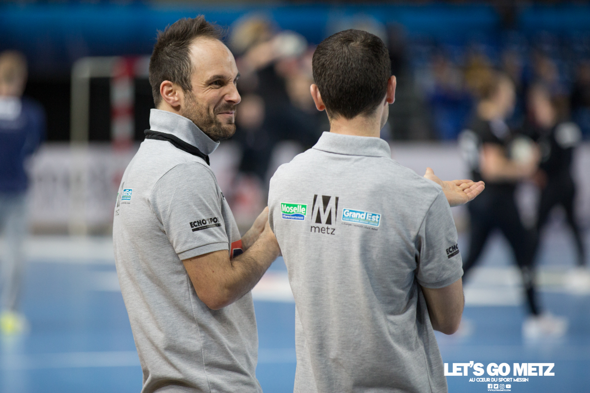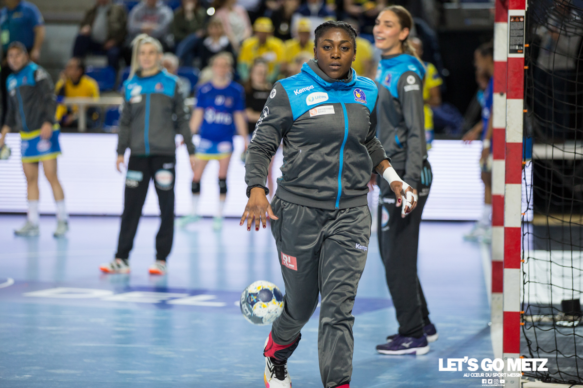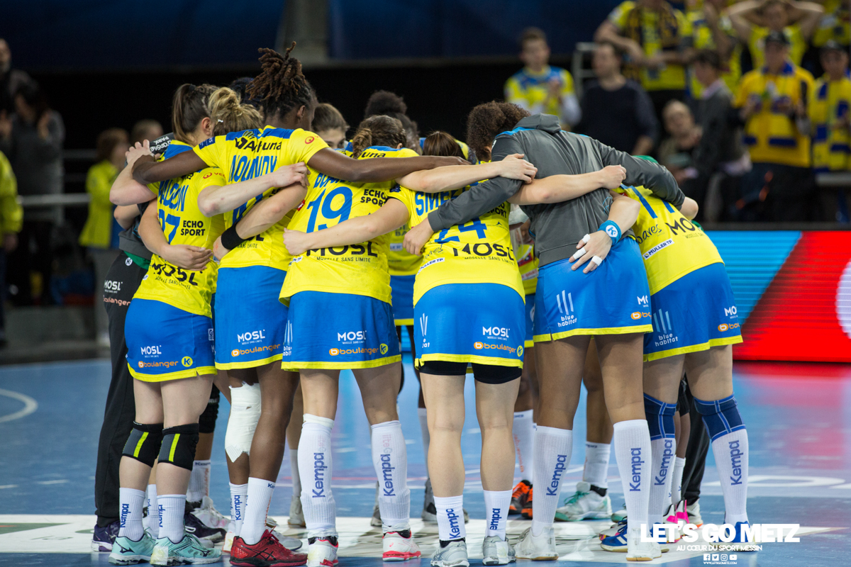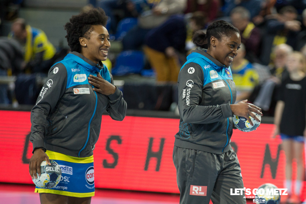 629 De retour aux Arènes pour leur troisième match du tour principal de la ligue des champions, les dragonnes recevaient les danoises de Team Esbjerg. L’occasion était offerte aux messines de redonner le sourire à leurs supporters et asseoir leur première place dans ce groupe 1. Pour clore une semaine compliquée, qui a vu les Dragonnes essuyer deux défaites loin de leurs terres et de leurs habitudes, nous sommes de retour aux Arènes de Metz pour y assister à un match capital de Ligue des Champions. En laissant des points à Bucarest il y a sept jours, les Messines ont permis à leurs poursuivants de recoller au classement au point de mettre en péril cette première place vaillamment conquise. Du côté des visiteurs, la Team Esbjerg se présente en outsider de luxe aux dents longues. Les Danoises sont en réussite cette saison et entendent bien repartir de France avec de précieux points. 1ère période : D’entrée, ce sont les Danoises qui se mettent en confiance avec deux buts en autant d’occasions. Nous assistons à un début de match très poussif des messines qui subissent rapidement les assauts des Danoises, bien regroupées en défense et cruellement efficaces et en attaque. Assez tôt nous assistons à des schémas offensifs inhabituels côté messin, avec notamment une Martine Smeets qui n’hésite pas à quitter son aile pour venir s’installer plus haut et offrir une deuxième solution dos au but, à la manière d’un pivot. Cela ne paie que peu, les actions réussies manquent et Emmanuel Mayonnade est forcé de poser son premier temps mort après seulement 8 minutes de jeu. Malgré ces efforts, au bout de 10 minutes de jeu les jaunes et bleues accusent déjà un handicap de 4 buts (3-7), bien difficile à résorber. Conformément aux attentes placées sur elle, Estavana Polman se montre irrésistible avec 5 buts en seulement 15 minutes.Heureusement, poussées par leur public et galvanisées par quelques arrêts de grande classe de Tea Pijevic, entrée pour suppléer Ivana Kapitanovic en manque de réussite, les filles du Metz Handball recollent au score par Ailly Luciano et ont même l’occasion de prendre l’avantage pour la première fois du match à 5 minutes de la pause. Mais Team Esbjerg reste redoutable et au gré d’un temps mort opportun, les danoises rendent les coups dans les dernières minutes et c’est sur un score de parité (15 – 15) que les deux équipes rentrent aux vestiaires. Le mal qui semble habiter les messines depuis quelques semaines est toujours palpable : beaucoup de maladresses dans les tirs, un manque flagrant de créativité en attaque, la machine paraît à nouveau enrayée. 2ème période On prend les mêmes et on recommence. De retour sur le gerflor, les jaunes et bleues se font de nouveau surprendre par l’engagement et la puissance Danoise. Incapables de prendre l’ascendant sur les visiteuses, les dragonnes ne peuvent faire mieux que courir à nouveau après le score. Il faudra attendre le quart d’heure et une supériorité numérique pour voir sonner la révolte. Laura Flippes par deux fois va faire se lever les arènes puis Louise Burgaard d’un tir surpuissant dont elle a le secret. En grande difficulté depuis le début de la rencontre, Ivana Kapitanovic va de nouveau céder sa place à Tea Pijevic. Mais rien y fait, et les Danoises enchaînent les combinaisons millimétrées. Elles semblent jouer simplement et efficacement, tandis que du côté de Metz on se complique bien souvent la tâche. On assiste à des modifications de stratégie défensive, avec nottament l’utilisation de Luciano et Flippes simultanément, pour stopper les offensives avec un succès mitigé. Emmanuel Mayonnade utilise un nouveau temps mort pour dynamiser ses troupes et les 4122 spectateurs continuent de pousser les dragonnes. Cela paie cette fois puisque par l’intermédiaire de Laura Flippes et Grâce Zaadi l’écart se réduit à nouveau. S’en suit une cruelle alternance entre égalité, occasions de prendre la main et déficit de un voir deux buts. En cette deuxième période Sonja Frey fait beaucoup de mal grâce à son efficacité face au but. Et alors que les Messines sont menées d’un but à 15 secondes de la fin de la rencontre c’est Orlane Kanor qui va libérer l’assistance du poids qui l’accable en envoyant le ballon le plus précieux du match au fond des filets adverses. Score final 31 – 31 Le roseau plie mais ne rompt pas. Toujours premières de leur groupe à la différence de buts avec 9 points au compteur aux côtés de Rostov-Don et de Team Esbjerg, leur adversaire du jour, les Messines ont encore livré une partie décevante à bien des égards, tout en trouvant la force mentale suffisante pour ne pas lâcher et même revenir à égalité dans les dernières secondes. Une égalisation vécue comme une victoire par le public et par le staff. Et pourtant, le résultat n’est pas celui escompté, les dragonnes se sont mises en difficulté seules en multipliant les maladresses, les tirs manqués et les fautes défensives. Alors oui, Metz est toujours invaincu à domicile en Ligue des Champions depuis le 28 janvier 2017 (22 matchs), oui Metz est toujours plus que jamais dans la course pour un 1/4 de finale avec ce match nul, mais il est clair que le mal qui ronge ce collectif depuis quelques temps maintenant, est encore bien présent. Un collectif plombé par les blessures mais qui malgré tout arrive à limiter les dégâts et montrer de la force de caractère sur certaines séquences de jeu, à l’image de Laura Flippes et Orlane Kanor qui ont su mettre les buts qu’il fallait au bon moment. Sera-ce suffisant sur le long terme ? Rien n’est moins sûr, et il serait de bon ton pour les dragonnes de redevenir cette machine à gagner qu’elles ont su être lors des derniers exercices, si elles veulent de nouveau accrocher le final four et rêver plus grand. La dragonne du match Sans véritablement bril