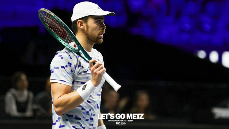 643 Dans une belle demi-finale au Moselle Open, Benjamin Bonzi (124e mondial) l’emporte face à Alex Michelsen (44e mondial) en trois sets (4/6, 6/0, 7/5). Suite à la défaite de Corentin Moutet cet après-midi, Benjamin Bonzi devenait le seul espoir français dans la course au titre (en simple). En très grande forme depuis quelques semaines, il est en quête d’un premier titre dans un tournoi ATP 250. Face à lui, une étoile montante du tennis mondial : l’Américain Alex Michelsen. A 20 ans, il fait déjà partie du top 50 mondial, sans même prendre en compte ses gains de la semaine. Il prendra part aux ‘Next Gen ATP Finals’ dans un mois, qui regroupe les huit meilleurs joueurs mondiaux de moins de 22 ans. L’irrésistible Bonzi a encore frappé Benjamin Bonzi est sans aucun doute la plus grande sensation de ce Moselle Open 2024. Après s’être sorti des qualifications, le Nîmois a enchaîné les gros matchs, dont son incroyable victoire contre la tête de série numéro 2 Casper Ruud. En arrivant dans cette demi-finale, il n’avait toujours pas perdu le moindre set. Son quart de finale face à Quentin Halys avait été très convainquant, puisqu’il avait rendu une fiche quasiment parfaite dans tous les secteurs de jeu. Étant le seul Français encore en lice en simple, il pouvait aussi compter sur un soutien absolu du public mosellan du court central. Place au jeu ! Benjamin Bonzi entrait positivement dans son match, en conservant facilement sa mise en jeu. De l’autre côté, Alex Michelsen devait batailler et effacer plusieurs balles de break pour recoller (1-1). Finalement, c’est le Français de 28 ans qui se faisait breaker le premier (2-3). L’Américain défendait d’une manière remarquable et forçait son adversaire à prendre beaucoup de risque dans ses attaques. Pour la deuxième fois du set, Benjamin Bonzi laissait échapper une opportunité de breaker et continuait à courir derrière le score (3/5). Alex Michelsen punissait le manque de réalisme du Français et empochait le premier set (4/6). Benjamin Bonzi Dans le deuxième set, Benjamin Bonzi partait sur de bonnes bases. Après un jeu de service solide, il parvenait enfin à faire le break sur un point spectaculaire. Il sprintait d’une extrémité à l’autre du court et envoyait une balle slicée rasante que le grand Américain ne parvenait pas à redresser (2-0). A 3-0, ce dernier faisait appel au physio pour recevoir des soins au niveau de l’abdomen. Diminué, il concédait dans la foulée le double break (4-0). La dynamique avait clairement changé de côté et c’était au tour du Français d’effacer des balles de break. Désespéré et en souffrance, Alex Michelsen tentait une série de services à la cuillère. Il s’inspirait peut-être de Corentin Moutet, qui en avait joué un certain nombre dans la première demi-finale. Mais cela ne perturbait absolument pas Benjamin Bonzi, qui concluait avec un nouveau break (6-0). Dans le troisième set, Alex Michelsen se remobilisait et retrouvait de la vitesse dans ses coups. Il se montrait également très expressif, comme nous l’avons déjà vu plus tôt dans la semaine où il avait chambré le public. Cette fois, il s’en prenait à l’arbitre. Mais Benjamin Bonzi restait impassible et remportait son premier jeu de service, après avoir sauvé plusieurs balles de break. Alex Michelsen avait le plus grand mal à servir du fait qu’il ne parvenait pas à s’étendre complètement vers le haut. Il se retrouvait ainsi à servir assez mollement et à user à répétition de services à la cuillère. A sa troisième tentative, le Français faisait le break et se retrouvait à deux jeux de la finale (4-2). Mais son imprévisible adversaire parvenait tout de suite à débreaker (4-3). Dans une fin de match complètement déjantée, les deux joueurs concédaient chacun leur mise en jeu (5-4). Le Français manquait à deux reprises l’opportunité de finir le match au retour (5-5). Au bout de la cinquième balle de match, il concluait enfin une drôle de rencontre et filait en finale du Moselle Open. Benjamin Bonzi décrivait ainsi le troisième set : « C’était une horreur. C’est super compliqué de jouer comme ça sans rythme. C’est beaucoup plus dur de retourner ces balles là que quand il sert à fond et quand il s’engage vraiment. Je suis passé par beaucoup d’états, je suis content de m’en sortir de cette manière mais là je ne veux plus parler de tennis ce soir ». Benjamin Bonzi rejoint la finale du Moselle Open, où il affrontera Cameron Norrie ce samedi à 16h30. Score Final Michelsen - Bonzi (6/4, 0/6, 5/7) Crédit photo : Julien Buret / Let’s Go Metz (Une), Moselle Open (corps)