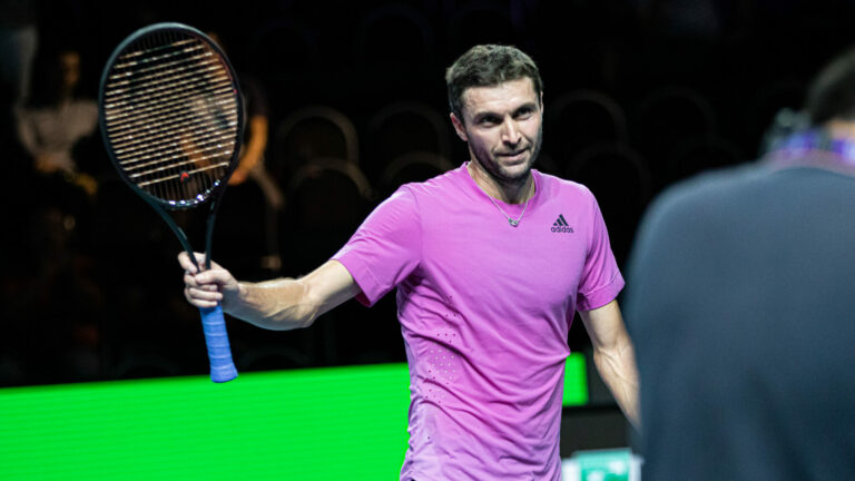 325 Ce troisième jour de Moselle Open marquait le retour de Gilles Simon aux Arènes de Metz. Attendu par tous, il a étalé toute sa classe en début de soirée face à David Goffin. Dans la journée, l’autre français Arthur Rinderknech s’est également qualifié pour le deuxième tour. Gilles Simon effectuait son retour aux Arènes de Metz ce mardi 20 septembre. En effet, l’invité de dernière minute habitué du tournoi était de retour sur le Central Patrice Dominguez. Et quel retour ! Triomphant ! Sans difficulté il s’est défait de son « jumeau », le belge David Goffin en deux sets 6-3 / 6-3. Porté par un public de feu, « Gillou », comme nous le surnommons, a réalisé un premier set tonitruant. Avec 87% des points au premier service, le français s’est montré très efficace sans pour autant passer le moindre ace. En face David Goffin, un peu plus brouillon, envoyait des balles dans le filet ou en dehors du court. Pendant 45 minutes, Goffin a subi les assauts du français. Malgré qu’il ait sauvé quatre balles de break, le belge envoyait une dernière balle dans le filet pour donner l’avantage à Gilles Simon, 6-3. Début du deuxième set, et un David Goffin, revanchard, poussait le français à la faute et dans ses derniers retranchements. Cependant, dans ses Arènes, il en fallait bien plus à Gilles Simon pour dérailler totalement. Imperturbable, l’actuel 175 joueur mondial perdait tout de même son service (2-3) avant de breaker par deux fois (4-3 / 5-3) et de s’offrir le luxe de servir pour le match. Après une heure et trente trois minutes précisément Gilles Simon s’imposait 6-3 / 6-3 face à David Goffin. « J’ai été très concentré durant tout le match. J’ai réussi à maintenir un bon niveau et je suis content de cette partie. Je ne m’attendais pas à le battre en 1h30, mais plutôt à une confrontation assez difficile […] Ma retraite ? Je n’ai aucun regret, et si je finis sur une note positive – notamment ici -, alors je serai content ! »Gilles Simon Les français Rinderknech et Simon assurent ! En début de journée, c’est le finlandais Ruusuvuori qui s’est rapidement imposé 2 set à 0 face au Tchèque Lehecka. Sans jamais douter le numéro 51 de l’ATP, a breaké par deux fois dans le premier set. Lehecka n’a jamais pu développer son tennis cet après midi aux Arènes de Metz. Basilashvili s’est fait très peur face à Bergs. Le belge a clairement dominé les débats dans le premier set et repartait sur de bases solides dès le début de la deuxième manche. Cependant alors qu’il menait 2-1, Zizou Bergs a dû abandonner pour raisons médicales. Il semblait touché dans le bas du dos. Pour l’autre français du jour, ce fut dur ! Alors qu’il avait largement maîtrisé son premier set (6-2) face à Munar, Arthur Rinderknech s’est fait peur pendant le reste du match. Après avoir été mené 2-6 / 1-4, il est parvenu à inverser la tendance et a fini par s’imposer 6-2 / 2-6 / 7-5 ! Grosse performance du 60ème joueur mondial. Photos : Lucas Deslangles / Let’s Go Metz