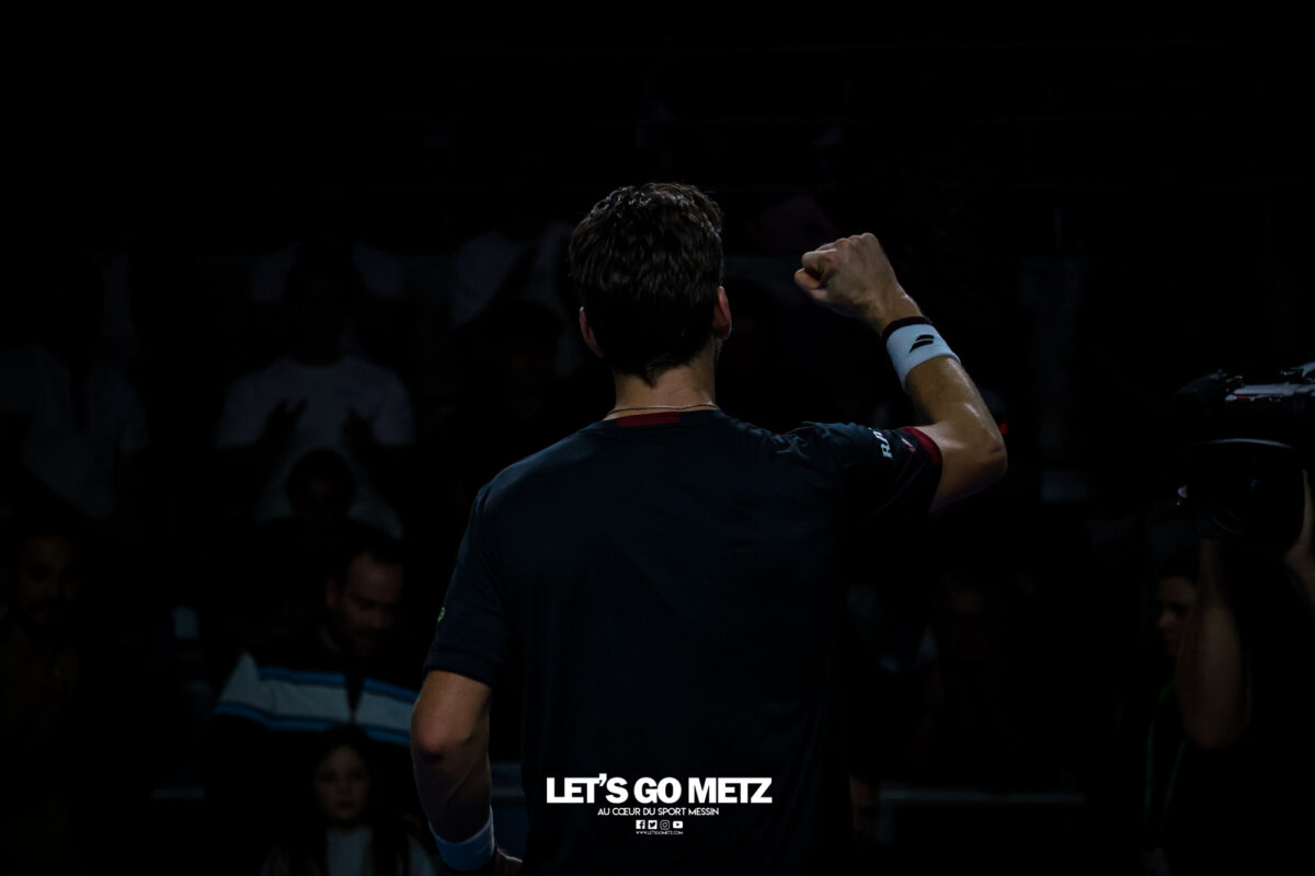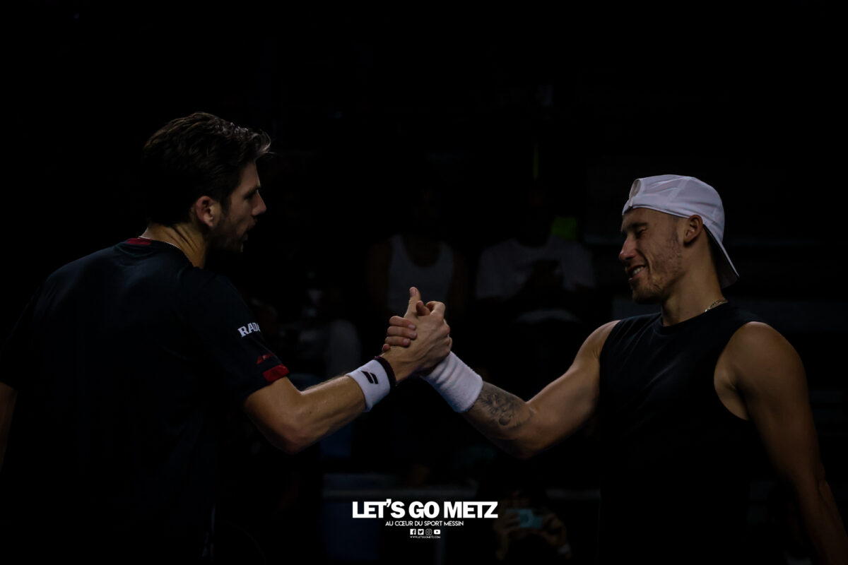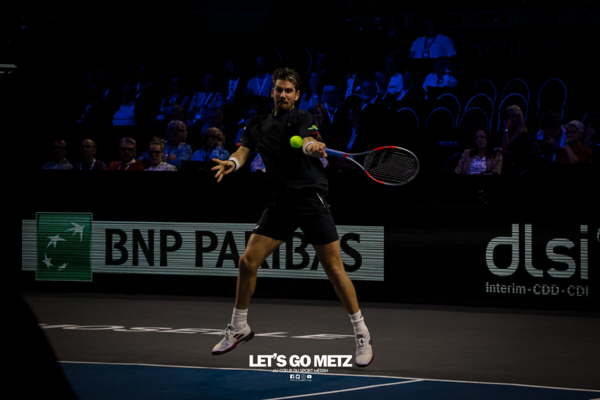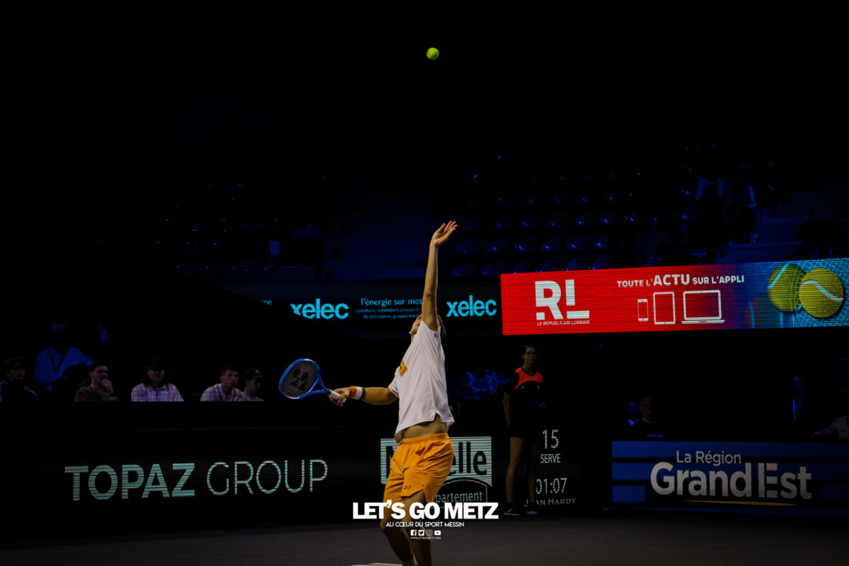 62 Cette journée du jeudi était dédiée aux quarts de finale du Moselle Open. Elle offrait quatre affiches mêlant joueurs confirmés et révélations qui ont toutes tenues leurs promesses. Les organisateurs de cette dernière édition du Moselle Open ont placé les deux derniers Français en lice dans le tableau de simple en début et en fin de programme. L’un, Kyrian Jacquet (156e mondial) était opposé à Cameron Norrie, finaliste l’an passé, l’autre, Clément Tabur, repêché de dernière minute, était opposé à l’autre révélation de la semaine, Vitaliy Sachko qu’il avait battu en qualification et qui s’est vu repêché au gré des défections. Entre les deux, les spectateurs des Arènes ont vu s’opposer l’Allemand Daniel Altmaier et le lauréat de l’édition 2022, Lorenzo Sonego avant qu’un autre Italien, Matteo Berrettini, n’affronte le protégé de Michael Chang, Learner Tien. Alors que les vainqueurs du tournoi de double l’an passé, Sander Arends et Luke Johnson venaient de se qualifier pour les demi-finales, Kyrian Jacquet était placé face au plus grand défi de sa carrière face au 27e joueur mondial qui a pour objectif de faire au moins aussi bien que lors de la dernière édition. Kyrian Jacquet passe proche de l’exploit Sans doute quelque peu pris par l’enjeu de la rencontre, le Français perdait sa deuxième mise en jeu et était rapidement mené (1-3 puis 2-4). Le Tricolore ne s’en laissait pas compter et tenait de mieux en mieux l’échange au point de remporter quatre jeux consécutifs et d’empocher du même coup la première manche (6-4). Les deux sets suivants étaient tout aussi indécis. Les deux joueurs remportaient leurs services avant que le Britannique ne prenne l’ascendant dans les moments clés. Norrie dominait ainsi assez largement le tie-break (7-2) ainsi que les huit derniers points de la rencontre. Il l’emportait 4-6, 7-6, 6-4 en près de 2 h 30 de jeu et validait sa place dans le dernier carré. Il a fallu un peu plus de deux heures (2 h 02) pour connaître son adversaire. Ce sera Lorenzo Sonego qui est venu à bout de Daniel Altmaier au terme d’un intense combat. Si, dans la première manche, l’Italien pouvait sembler avoir un ascendant, il ne remportait qu’une fois la mise en jeu de l’Allemand au cinquième jeu. Il n’en demeurait pas moins que les deux joueurs se livraient à une rude bataille finalement remportée par la vainqueur de l’édition 2022 (6-4). Le second set restait sur la même lancée, les deux joueurs conservaient leurs mises en jeu. La fin du set était haletante et peut laisser des regrets à Daniel Altmaier. L’Allemand s’est en effet procuré six balles de set que Sonego sauvait avec aplomb. Le Transalpin finissait par remporter ce quart de finale au terme d’un jeu décisif qui reflétait bien la physionomie de la partie tant il était serré. Lorenzo Sonego l’emporte sans briller Face à Daniel Altmaier, qui avait battu les Français Rinderknech et Gaston, Lorenzo Sonego est sorti vainqueur d’un match accroché. Le vainqueur de l’édition 2022 a su gagner les points importants, pour remporter une rencontre qui est restée indécise jusqu’au bout. Dans le premier set, Sonego parvenait à breaker (3-2), puis à assurer sur son service pour prendre les devants (6-4). Mais dans la deuxième manche, les deux joueurs sauvaient de nombreuses balles de break (13 au total), pour conserver leurs mises en jeu jusqu’au tiebreak. A cet exercice, c’est encore l’Italien qui prenait le dessus, par la plus petite des marges (8-6). Au final, Lorenzo Sonego gagne en deux sets et file en demi-finale (6-4, 7-6). Learner Tien trop fort pour Berrettini Le troisième quart de finale opposait Matteo Berretini, ex-numéro 6 mondial à Learner Tien, qui fait déjà parti du top 40 à seulement 19 ans. L’Italien proposait un bien meilleur niveau que la veille, où il avait péniblement battu Aleksandar Vukic. Il utilisait sa puissance au service et en coup droit pour dominer la première manche, avec un jeu très offensif (7-5). Mais le protégé de Michael Chang faisait les ajustements nécessaires pour inverser la tendance dans le deuxième set. Surtout, il évitait le plus possible le coup droit de son adversaire et exposait sa faiblesse en revers. Il parvenait également placer Berrettini dans un schéma de jeu plus défensif. Or le grand Italien n’est pas réputé pour ses qualités de déplacement. Avec beaucoup d’intelligence, Learner Tien emmenait la rencontre au troisième set (6-2). L’Américain gardait le contrôle dans la manche décisive, en dévoilant toute sa panoplie de coups. Coups droits liftés, revers slicés, amortis et même des montées au filée. Submergé, Berrettini tentait tant bien que mal d’imposer sa puissance et de se rassurer sur ses jeux de service… en vain. En 1 h 44 min, Learner Tien gagnait sa place en demi-finale. Sachko prend sa revanche sur Clément Tabur Après l’avoir battu en qualifications, Clément Tabur rencontrait encore l’Ukrainien Vitaliy Sachko en quart de finale. Le Français rentrait difficilement dans son match, en concédant son jeu de service d’entrée, puis le premier set (6-4). Mais son adversaire du jour, tout frais de sa victoire face à Bublik, commettait beaucoup de fautes directes. Le Français prenait confiance dans le deuxième set, qu’il remportait assez facilement (6-3). Dans la troisième manche, les deux joueurs élevaient leur niveau de jeu pour proposer un beau spectacle. Finalement, c’est Vitaliy Sachko qui obtenait son ticket pour les demi-finales (6-4, 3-6, 6-4). Résultats du 6 novembre Quarts de finale simple Cameron Norrie -Kyrian Jacquet (4-6, 7-6, 6-4)Lorenzo Sonego – Daniel Altmaier (6-4, 7-6)Learner Tien – Matteo Berrettini (5-7, 6-2, 6-3)Vitaliy Sachko – Clément Tabur (6-4, 3-6, 6-4) Quart de finale double Sander Arends/Luke Johnson-Rafaël Matos/Marcelo Melo (4-6, 6-3, 10-5)