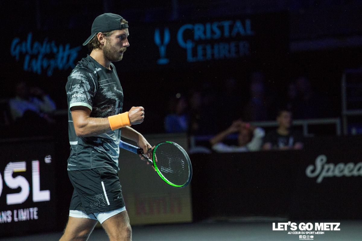 591 Le troisième match de la journée oppose un favori du tournoi à une belle surprise. Le français Lucas Pouille, tête de série numéro 4 du tournoi et facile vainqueur de Lorenzo Sorego (6-1 / 6-4) au tour précédent, était opposé à Filip Krajinovic. Le surprenant serbe, tombeur du vieux briscard Fernando Verdasco (3-6 / 6-4 / 6-3) en huitièmes, faisait face une nouvelle fois à un gros poisson du Moselle Open pour tenter de marcher sur les traces de son illustre compatriote Novak Djokovic, vainqueur à Metz en 2006. Premier set Lucas Pouille entame le match tambours battants sur sa mise en jeu, faisant étalage de sa puissance en coup droit. Le français comme le serbe gagnent leur première mise en jeu. Cependant, Pouille se fait surprendre et Krajinovic réalise le break puis le confirme sur son service suivant pour mener 3 jeux à 1. Pouille se rebiffe et va chercher 2 balles de break après être revenu à 3-2, mais Filip Krajinovic les sauve remarquablement et garde son service. Le serbe produit du très beau tennis en ce début de match. Lucas Pouille se procure une nouvelle occasion sur le service du serbe à 4-3 mais ce dernier reste une nouvelle fois très solide. Le français parvient tout de même à recoller à 5-4 mais le serbe va servir pour le gain du set. Krajinovic ne se fait pas prier pour conclure et inflige un jeu blanc au français. Jeu et set, Krajinovic : 6-4 ! Second set Lucas Pouille se complique décidément la vie. Dès l’entame du 2ème set, le français se voit contraint de sauver 3 balles de break. Krajinovic quant à lui continue sa marche en avant et flanque un nouveau jeu blanc à la Pouille. Les deux hommes remportent tour à tour leur service mais Lucas Pouille craque dans le si capital 7ème jeu et concède sa mise en jeu à Filip Krajinovic, qui joue parfaitement sa partition dans cette rencontre. Pouille se ressaisit et débreake le serbe dans la foulée. Les deux hommes ne parviennent pas à se départager en cette fin de deuxième set, Lucas Pouille porte le score à 6-5 et met Krajinovic dos au mur. Le français sort le grand jeu et se procure une balle de set sur le service de son adversaire. Cette première balle de set sera la bonne. D’un revers longue ligne remarquable, Pouille pétrifie le serbe et revient à 1 set partout. Jeu et set, Pouille : 7-5 ! Troisième set C’est le troisième et dernier set qui décidera de l’issue de ce match. Dans la lancée de sa fin de deuxième set, Pouille entame cette dernière manche de la meilleure des manières en infligeant un jeu blanc à Krajinovic. Le serbe tente de résister mais la déferlante Pouille est trop importante, le français break le serbe et prend une avance de 4 jeux à 1. Pouille ne sera jamais rattrapé et s’adjuge cette dernière manche 6-2. Jeu, set et match Pouille : 4-6 / 7-5 / 6-2 ! Lucas Pouille se hisse en demi-finale et affrontera le vainqueur du match entre Jo-Wilfried Tsonga et Nikoloz Basilashvili. Rédaction : Arthur Carmier Crédit photo : Matthieu Henkinet