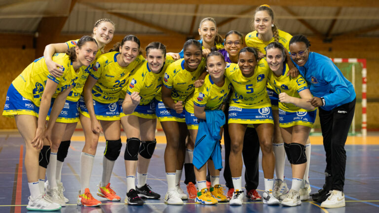 883 L’équipe de Nationale 1 Féminine (N1F) de Metz Handball recevait Chevigny-Saint-Sauveur au gymnase du Technopole dans le cadre de la sixième journée de compétition. De retour après une trêve internationale qui a vu 6 de ses joueuses partir en sélection, l’équipe N1F de Metz Handball était de retour sur le terrain du gymnase du technopole ce samedi face à Chevigny-Saint-Sauveur. Un match des opposés entre leader de la poule et équipe en difficulté en bas de tableau. Prises sur la première possession, les joueuses de Nina Kanto répondaient via un jet de 7 mètres d’Emma Tuccela, l’ailière bénéficiait dans la foulée d’un arrêt de Fatima Camara pour scorer à nouveau en contre attaque. Rebelotte sur l’action suivante avec une finition de Manon Errard. (3 – 1, 4ème) Prise sur jeu rapide, l’équipe de Chevigny optait pour un jeu plus posé offensivement mais manquait de réussite avec deux poteaux consécutifs. Metz Handball en profitait pour dérouler son jeu, forçant l’équipe adverse à poser un temps mort. (6-1, 7ème). Vigilantes en défense avec un bon bloc central, les messines en profitaient pour scorer via Yvana Atangana, Lily Balassi, puis à nouveau Emma Tuccela sur 7m pour passer la barre des 10 buts. (10-2, 11ème) Bien servie par Claire Koestner, Alice Giliberto ouvrait sa marque personnelle mais Metz sombrait dans un tems faible. Deux suspensions pour deux minutes venaient même relancer la mi-temps malgré quelques parades de Fatima Camara. (14 – 8, 19ème)Malgré cela, la fin de mi-temps tournait à l’avantage des locales, peu avares en changements de stratégie défensive pour développer d’avantage de jeu rapide. Jeanne Quesada en profitait pour inscrire son premier but. Cependant, la fin de mi-temps prenait un virage amer alors que la Chevignoise Clara Penaud devait quitter ses coéquipières suite à une blessure au tendon d’Achille. Score à la mi-temps : 21 – 13 De retour sur le terrain, Merle Albers et Manon Errard ouvraient la marque de la deuxième mi-temps et Metz Handball reprenait son implacable marche en avant. Après un nouveau 1v1 bien négocié par Emma Tuccella sur contre attaque, Chevigny recourait à nouveau au temps mort (29-16, 35ème).Entrée en jeu, Eliannah Rodrigo da Costa se fendait d’une belle parade pour préserver son but et Metz continuait confortablement son chemin en tête. Pire, touchées par la fuite du match, certaines visiteuses baissaient clairement la tête au fil des minutes (37-20, 45ème). Dans un sursaut, Elia Puccianti concluait une belle contre-attaque pour Chevigny, témoignage des capacités réelles de son équipe, mais le destin de la rencontre était déjà décidé depuis de longues minutes (39-26, 52ème). C’est finalement Zoé Glabay qui inscrivait le 40e de son équipe sur jet de 7 mètres à deux minutes de la fin de rencontre (40-27 58ème). Score final de ce Metz Handball – Chevigny-saint-Sauveur en N1F : 42 – 28 La galerie de la rencontre Les stats du match Metz HandballCamara (6 parades), Rodrigo da Costa (9 parades)Goval (3 buts sur 4 tirs), Albers (3/5), Golvet (1/3), Quesada (1/3), Koestner (4/5), Zagar, Giliberto (1/1), Atangana (6/9), Tuccella (10/11), Balassi (3/6), Glabay (2/2), Errard (8/8) Chevigny-saint-SauveurCanu (5 parades), Germe (2 parades)Penaud (2 buts sur 4 tirs), Balme (1/2), Ledey (0/1), Puccianti (3/3), Chevrier, Naceur (2/2), Spindler (0/3), Morel (2/4), Hraga (10/18), Loureiro (3/3), Mercuzot (5/11) Crédit photo : Julien Buret