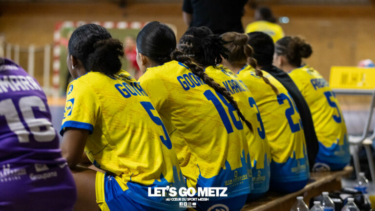 5,1K L’équipe N1F de Metz Handball se déplaçait sur le terrain de l’US Palaiseau ce dimanche pour un match serré jusque dans les derniers instants. Pour leur troisième match de la saison les joueuses de Nationale 1 Féminine (N1F) de Metz Handball se sont fait peur à Palaiseau. Si on savait l’effectif toujours en rodage, de l’aveu même de la coach Nina Kanto, la solide victoire de la semaine précédente face à Reims laissait penser à une certaine marge de manœuvre. Le déplacement à Palaiseau a révélé une tout autre réalité avec un match à couteaux tirés. Yvana Atangana réussissait son entrée en jeu avec deux buts consécutifs, suivie par Claire Koestner mais impossible pour autant de créer un écart au score et les deux équipes restaient collées jusqu’à la 13ème minute et des réalisations de Fiona Gooroosamy et Ludyvine Kaakil Talaba (08-10). Cela ne calmait pas les ambitions de l’équipe à domicile qui parvenait à inverser la tendance via un but d’Estelle Ho-Ba-Tho une dizaine de minutes plus tard (14-12, 23ème). A la fin du premier acte, les deux équipes se quittaient sur un score de parité : 16 – 16.En deuxième mi-temps, les échanges restaient du même acabit. Si Palaiseau passait à +3 après huit minutes de jeu et s’accrochait à son avance, Metz Handball bataillait pour rester dans la partie jusqu’à un but égalisateur d’Alice Giliberto (24-24, 47ème). Si la suspension pour deux minutes de Nelya Goval aurait pu faire tourner le vent en faveur des locales avec seulement huit minutes restant à jouer, les jeunes Dragonnes en ont en réalité profité pour créer un nouvel écart au score avec un +2 validé par un but de Délia Golvet (26-28, 54ème). Qu’à cela ne tienne, Palaiseau parvenait rapidement à égaliser pour plonger la rencontre dans l’incertitude à nouveau.Au coude à coude jusque dans les derniers instants, les deux équipes cultivaient le suspens en se rendant but pour but jusqu’à un dernier temps mort de Nina Kanto suivi de l’ultime but de la partie, signé Délia Golvet, pour une victoire d’une unité au terme d’un match particulièrement disputé.Score final de ce Palaiseau – Metz Handball : 31 – 32 Les stats de la rencontre Metz HandballRodrigo da Costa (10 parades), KidouchAbabsa (0 but sur 1 tirs), Atangana (8/11), Castets (1/4), Etilopy, Ferdilus, Giliberto (3/3), Golvet (5/9), Gooroosamy (2/3), Goval (5/6), Holler (1/4), Kaakil-Talaba (2/3), Koestner (5/11). US PalaiseauMalonga (15 parades), Pelegry (1 parade)Braconnier (10 buts sur 16 tirs), Colas (0/1), Deguelle (4/5), Herveaux, Ho-Ba-Tho (7/9), Le Cam (2/2), Pelegry, Penet (1/1), Vanbostal (7/12), Zahzam (0/2). Crédit photo : Matthieu Henkinet (archive)