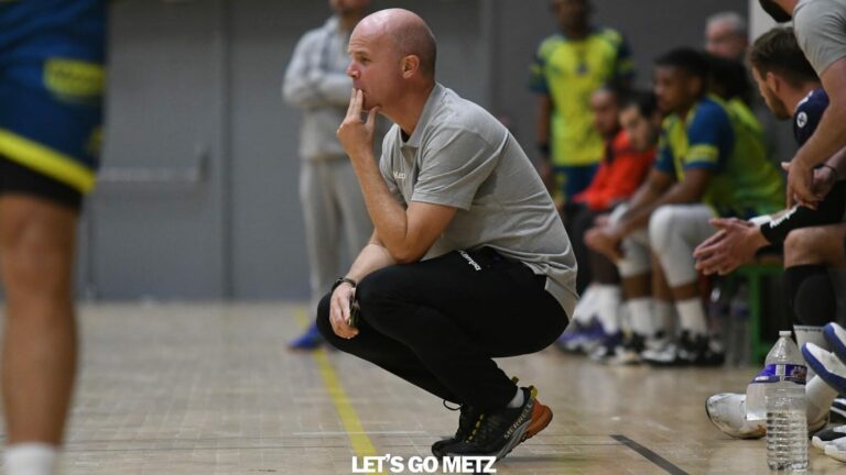 864 Dans l’un des derbys mosellans de Nationale 1 Maculine (N1M), le Metz Handball s’est incliné (28-29) face à son voisin Folschviller. C’était un week-end de derbys pour les équipes fanions de l’association Metz Handball ! Après le large succès des jeunes Dragonnes à Yutz, en Nationale 1 Féminine, l’équipe masculine du club faisait face à un autre club mosellan dans son championnat de N1M, l’AS Folschviller. Un gros morceau puisque les Verts, leaders de la poule, abordaient ce derby en étant invaincus depuis le début de saison (4 victoires, 1 match nul).De leur côté, les hommes de David Motyka, déjà vainqueurs d’un affrontement 100% mosellan il y a quelques semaines contre Thionville, voulaient confirmer un début de saison prometteur. Avant défier Folschviller, le Metz Handball comptait trois succès (tous à domicile) et deux défaites (toutes à l’extérieur), et occupait fièrement la quatrième place de la poule 3 de N1M. Autant dire que ce nouveau derby mosellan s’annonçait passionnant !Un derby à suspense qui a tourné en faveur de l’AS Folschviller. Portés par les 9 buts de l’ancien Messin Antonin D’Hondt, qui s’est rappelé au bon souvenir du complexe Saint-Symphorien, les visiteurs se sont imposés 28-29. Menés de quatre unités à près de cinq minutes du terme de la rencontre (24-28), les Cerbères auraient pu arracher le nul en toute fin de de match. Mais Steven Belle s’est heurté au seizième arrêt de Mohamed Amine Elleuch, autre grand bonhomme de la partie. Metz Handball 28-29 Folschviller Mi-temps : 15-16 Statistiques de la rencontre Résultats de la journée et classement Crédit photo : Mikaël Frank / Let’s Go Metz (archive)