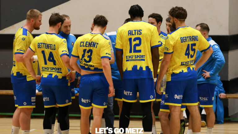 737 Metz Handball a signé un nouveau succès en Nationale 1 Masculine (N1M) face à St-Brice. Les Cerbères pointent à une belle quatrième place après quinze match cette saison. Deuxième match en 2025 et deuxième succès pour Metz Handball, en Nationale 1 Masculine (N1M). Après avoir gagné à Thionville le week-end dernier (26-27), les Cerbères se sont de nouveau imposés, sur le même score, face à St-Brice (27-26). Les hommes de David Motyka auraient pu concéder le nul sur une dernière action des visiteurs, mais repartent finalement avec les trois points. « On a eu chaud sur ce dernier ballon c’est vrai mais St-Brice est une belle équipe, avec des joueurs expérimentés qui ont connu le haut niveau. A l’aller, on avait subi chez eux et perdu logiquement. On avait à cœur de prendre notre revanche, même si on a mal démarré le match », confiait l’entraîneur messin après la rencontre.Une huitième victoire cette saison qui place le Metz Handball à la quatrième place de sa poule de N1M avec 33 points en quinze matchs. « Oui, c’est une belle saison. Notre entame avait été compliquée mais on est vite reparti de l’avant, malgré une accumulation de blessés. On s’est forgé un caractère et on s’appuie vraiment sur notre secteur défensif, qui nous a encore réussi contre St-Brice. Cette équipe me plaît bien, les valeurs défensives sont présentes. En février, nous allons affronter des équipes du bas de tableau. Cela peut nous permettre, si on aborde bien ces matchs, de nous mettre dedans avant de retrouver les équipes de haut de tableau en mars et en avril », explique David Motyka. Objectif Coupe de France pour Metz Handball ? David Motyka Metz Handball n’aspire pas à monter en N1 Elite, division réservée aux clubs qui veulent se rapprocher des championnats professionnels. Le but des Cerbères reste cependant d’aller accrocher à minima le top 5 en fin de saison. Les Jaune et Bleu pourrait aussi s’offrir une belle épopée en Coupe de France fédérale (N1 Elite, N1, N2, N3), ce qui n’était pas prévu initialement dans les plans de David Motyka. « Au départ, ce n’était pas du tout un objectif mais on a pris goût à la coupe. Les gars ont voulu la jouer malgré les absences. Maintenant que l’on est en quart de finale, cela devient un petit objectif », confie le technicien.En quart de finale de Coupe de France fédérale, Metz Handball défiera Grenoble, leader de la poule 4 de N1M, samedi 8 mars (17h) à Roanne. En cas de qualification, les Cerbères défieraient le vainqueur du quart de finale entre le Gazélec Ajaccio et Hazebrouck, le lendemain. A la clé une place en finale de l’épreuve à Bercy, samedi 17 mai (17h) en lever de rideau… de la finale nationale féminine (19h30) ! La fête serait totale pour Metz Handball si Cerbères et Dragonnes parvenaient à se hisser jusqu’à ce stade de la compétition. Crédit photo : Stephan Weyrath / Let’s Go Metz (archives)