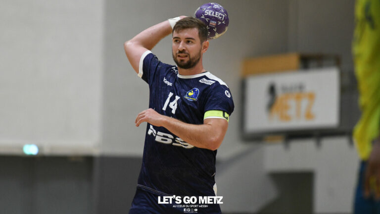 1,K Malmenés en première période, les Cerbères de Metz Handball ont su renverser la vapeur pour s’offrir une victoire méritée (35-29) face à Sélestat, en Nationale 1 Masculine (N1M). Ce samedi 23 novembre, Metz Handball recevait le Selestat Alsace Handball, pour la 10ème journée de Nationale 1 Masculine (N1M). Après un succès étriqué à Belfort avant la trêve (29-27) les Cerbères se positionnaient à la 8ème place avec un total de 16 points. La réserve de Sélestat cumulait quant à elle 14 points et était avant dernier du classement (12ème), loin devant le Thionville Moselle Handball qui se positionnait à la dernière place avec 13 points Une belle occasion pour le Metz Handball de se rapprocher du haut du classement. Une première mi-temps compliquée pour les Cerbères Après diverses pertes de balles et un superbe arrêt du gardien Thibaut Jean, les violets trouvaient le chemin des filets grâce à Trescher à la 3ème minute. Le pivot Rebel inscrivait le deuxième but face au gardien messin, d’une roucoulette. Il fallait attendre une contre-attaque d’Antonin Bertrand pour voir Metz inscrire son premier but (1-2), rapidement suivi d’un doublé du Sélestadien Simon, creusant à nouveau l’écart (1-3, 5′). Un début de match compliqué pour les Cerbères, qui ne trouvaient pas les solutions, au contraire de Pompon et Uhlen côté alsacien (3-6). Malgré des buts de Van Deik et Andrezio, les Cerbères galvaudaient toujours leurs contre-attaques. Pompon faisait parler son bras de loin (5-7). Meyerfeld bénéficiait de l’entrée de l’arrière gauche, Altis, qui le servait alors pour le 6-7. La créativité de Lory Altis permettait le comeback de Metz Handball, qui prenait enfin les commandes du match (11-10). Sélestat s’accrochait grâce à Deloye mais le mur Thibaut Jean enchaînait les arrêts. Bettenfeld et Altis en porifitaient pour se distinguer en attaque. Pourtant, sur l’ultime possession avant la pause, Sélestat égalisait au buzzer grâce à un tir plein de sang-froid, ramenant les deux équipes à égalité (14-14) Une seconde mi-temps écrasante pour Metz Metz entamait cette seconde mi-temps après un contre puissant de Andrezo pour le 16-15. Jean multipliait les arrêts, mais Pompon répondait alors par un tir de loin. Andrezo accélérait à nouveau pour permettre à Bettenfeld de pénétrer l’intervalle pour le 17ème but messin, avant que Morlot n’égalise pour Sélestat. Les nerfs tendus, Morlot agrippait Van Deik d’une ceinture agressive, ce qui lui valait 2 minutes de suspension. Les Cerbères profitaient alors de l’infériorité numérique pour entamer une action collective, qui se concluait sur un but de Bettenfeld pour permettre à Metz de prendre de nouveau l’avantage (18-17).Deloye écopait à son tour de 2 minutes de suspensions, après un bras haut sur son adversaire. Le temps de suspension de Morlot alors écoulé, ce dernier en profita pour inscrire 2 buts héroïques et faire espérer les violets (19-18). Le retour au complet des Cerbères voyait Bello et Meyerfeld enchaîner. Une erreur de Sélestat permettait ensuite à Massaro de creuser l’écart. Après de nombreuses récupérations de balles sur des passes sélestadiennes maladroites, les Cerbères devançaient les violets (25-19) et prenaient le contrôle du match, pour ne plus jamais être rejoints. En fin de match, Bettenfeld, grâce à sa vista, faisait briller Andrezo et Altis sur des passes clés (30-25). Metz Handball s’imposait avec brio (35-29) au terme d’une deuxième mi-temps convaincante. Les Cerbères grimpent à la sixième place au classement grâce à ce succès. Arthur Schmitt Metz Handball 35-29 Sélestat Metz Handball : Beck (2 buts pour 2 tirs), Bello (3/3), Altis (5/5), Clément (0/1), Bettenfeld (4/5), Andrezo (8/10), Massaro (3/4), Rennie (1/2), Voltz Marty (1/2), Blond Xavier (4/5/ dont 2 jets de 7m), Bertrand (2/6), Van Deik (2/3), Jean Thibaut (16 parades) Sélestat Alsace Handball : Trescher (3/8), Pompon (4/6), Uhlen (1/1), Deloye (7/9 dont 3 jets de 7m), Morlot (3/5), Rebel (7/8), Laforce (2/12), Descour (1/2), Villemin (1/3), Carle (8 parades) Crédit photo : Mikaël Frank / Let’s Go Metz (archives)