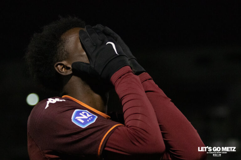 361 La réserve du FC Metz, à l’aise ces derniers temps à domicile, n’a cette fois pas trouvé les ressources pour lutter contre une équipe d’Auxerre conquérante. Les grenats s’inclinent logiquement 0-2. Mieux classée que son adversaire, la réserve du FC Metz s’attendait toutefois à une partie délicate. La moyenne d’âge du groupe était en effet très basse et les renforts de joueurs professionnels plus réduits qu’à l’accoutumée. Auxerre entamait d’ailleurs le match pied au plancher avec un tir sur le poteau d’Ousmane Ba après deux minutes de jeu. Le portier sénégalais allait être le Grenat le plus en vue lors de la première mi-temps. Ce qui est rarement bon signe pour une équipe. Après une mésentente entre Albenas et Lacroix, un attaquant auxerrois filait au but. Mais Ba remportait le duel d’un arrêt de handballeur. Il récidivait à la suite d’une autre erreur de la charnière, habituellement bien plus solide, en gagnant un second duel. Il repoussait un tir à bout portant qu’un autre Bourguignon retouchait, et suivait des yeux le ballon qui roulait jusqu’à son poteau. Ousmane Ba retarde l’échéance, mais les Grenats finissent par céder L’ancien pensionnaire de Génération Foot était chanceux sur une frappe depuis l’entrée de la surface qui venait frôler son poteau. Puis il ne devait rien à personne en s’imposant dans un nouveau duel en fin de mi-temps. Et les Messins dans tout ça ? Eh bien, ils ont beaucoup peiné dans le jeu, ont encaissé vague après vague et ont tenté de contrer. Mikelbrencis voyait sa tentative lointaine claquée en corner. Ali Saïd devançait une sortie du gardien, mais son lob finissait sur le dessus de la barre. Enfin, Lenny Joseph, lancé dans l’axe, parvenait à crocheter deux défenseurs et à frapper en force, situation qui lui a permis de marquer à plusieurs reprises cette saison. Pas cette fois-ci : Sonny Laiton, le gardien icaunais, était sorti rapidement et parvenait à détourner. Malheureusement pour les joueurs de Stéphane Saillant, ils cédaient juste après la pause : une remise à la suite d’un corner trouvait un joueur seul dans les six mètres, et sa tête de près ne laissait aucune chance à Ba (0-1, 49e). Dès lors, les Auxerrois n’attaquaient plus, et le temps défilait sans véritable occasion ni d’un côté ni de l’autre. Lacroix à la retombée d’un corner aurait pu se montrer dangereux, mais son tir fuyait le cadre. En fin de match, à peine entré en jeu, Daoud frôlait lui aussi l’égalisation en frappant en pleine course sur l’angle extérieur du but. Presque dans la foulée, les visiteurs assuraient définitivement leur victoire : sur un contre, l’attaquant se jouait de Lacroix et trompait Ba de près (0-2, 87e). Le gardien messin repoussait ensuite sur son poteau une ultime tentative et évitait à son équipe un naufrage complet. C’est un match manqué dans les grandes largeurs pour les Grenats. Ils conservent malgré tout un classement honorable et restent très bien placés pour atteindre l’objectif initial de la saison : le maintien en National 2. Ils se rendront à Haguenau lors de la prochaine journée pour tenter de se relancer. Crédit photo : Julien Buret/LGM