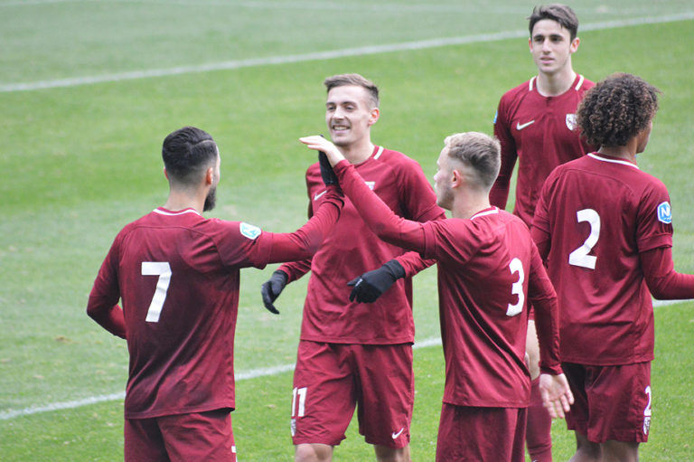 353 Dans un match très équilibré face à Sarre-Union, l’équipe réserve du FC Metz a renoué samedi après-midi avec la victoire après sa défaite la semaine passée contre Prix-lès-Mézières. Un coup-franc direct de Georges Mikautadze et un but d’Amadou Dia Ndiaye en toute fin de partie ont assommé les espoirs Alsaciens. Après un premier quart d’heure très calme, ce sont les hommes de Stéphane Léoni qui se montrent les plus dangereux avec une première tentative contrée par la défense messine (18e), puis une deuxième au dessus des cages gardées par Paul Delecroix (23e). Les Messins sont tout proches d’ouvrir le score sur leur première véritable action, Georges Mikautadze tente une retournée dans la surface de réparation, le ballon revient dans les pieds de Milan Robin qui enroule parfaitement sa frappe et qui oblige Anthony Mfa à se déployer et à mettre le ballon en corner. Peu avant la mi-temps, Dylan Lempereur est expulsé sur une grosse faute à retardement sur Mathieu Cachbach à l’entrée de la surface de réparation. Georges Mikautadze se charge de frapper le coup-franc plein axe et ajuste parfaitement Anthony Mfa d’une merveilleuse frappe enroulée en pleine lucarne (1-0, 45e). Au retour des vestiaires, Metz domine les débats et est proche de doubler la mise par l’intermédiaire de Mikautadze qui bénéficie d’un centre à ras de terre de Milan Robin. Le jeune attaquant messin est malheureusement trop court sur cette action (47e). Puis, vingt minutes plus tard, c’est Cachbach qui tente sa chance de loin et trouve la transversale (67e). Réduits à dix durant toute cette seconde période, les visiteurs, bien qu’inoffensifs effectuent une deuxième mi-temps courageuse et solide. Amadou Dia Ndiaye marqué de près par un défenseur adverse file tout droit au but et se trouve en très bonne position pour tuer le match mais son tire s’en va mourir dans le petit filet (75e). Dans le temps additionnel, sur un coup-franc, l’incontournable Amadou Dia Ndiaye récupère la balle et inscrit son sixième but cette saison (90e +1). Crédit photo : K. Bignossi / Let’s Go Metz Feuille de match FC METZ B 2 – 0 US SARRE-UNION (score à la mi-temps : 1-0) National 3, 10e journéeDimanche 10 novembre 2019 à 15 h Stade Saint-Symphorien Arbitre : Maxence Richard Buts : Mikautadze (45e), Dia Ndiaye (90e+1) pour Metz. FC Metz B : Delecroix – Sildillia, Lô, Peugnet (cap.), Godart (Knoepffler, 78′) – Djedje, Cachbach – Mikautadze, Lahssaini (Rauch, 66e), Robin (Touré, 69e) – Dia Ndiaye Entraîneur : Grégory Proment. CLASSEMENT