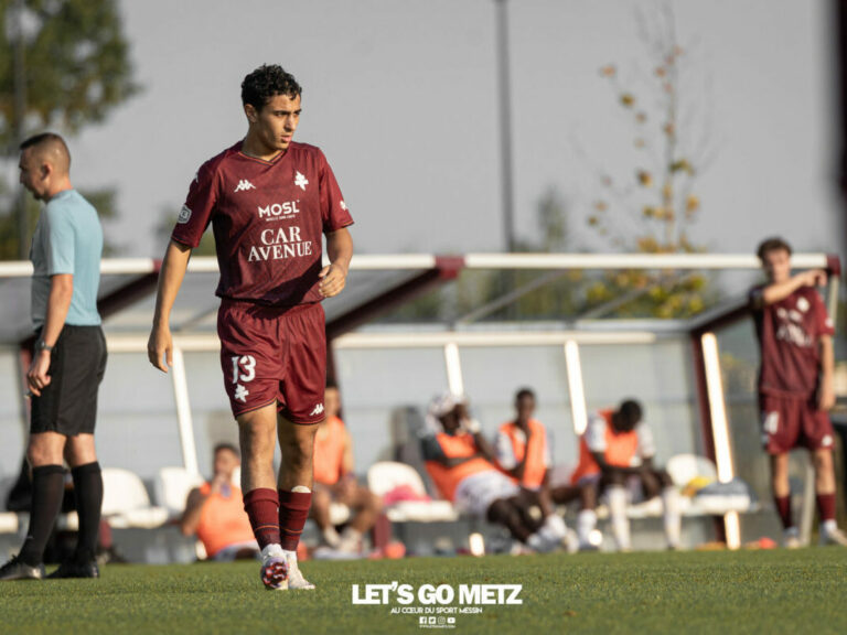 1,1K La formation du FC Metz a vécu un week-end mitigé, avec deux victoires et deux défaites. L’équipe réserve, elle, a fait la meilleure opération en l’emportant largement face à Sarreguemines (4-1) et a mis fin à une série de trois défaites consécutives. Le soulagement se faisait ressentir au coup de sifflet final sur le visage des jeunes Messins. En effet, la réserve du FC Metz s’est imposée sur le score de 4-1 face à Sarreguemines au complexe sportif de Frescaty. Cette première victoire à domicile de la saison avait pourtant eu du mal à se dessiner en raison de l’ouverture du score des Sarregueminois par l’intermédiaire d’Enes Sahin (11e). Cependant, le FC Metz égalisait grâce un but contre son camp d’Aymar Ngueni Bong (39e). Puis Ismaël Guerti inscrivait le second but juste avant l’heure de jeu (2-1, 58e). Les Grenats prenaient enfin le large dans le dernier quart d’heure (75e, 90e). Les joueurs de Christophe Delmotte retrouvent la victoire après une inquiétante série de trois revers consécutifs et montent à la cinquième place de la poule H du championnat de N3. Le club à la Croix de Lorraine se déplacera à Besançon samedi 7 décembre, quatrième et seule équipe invaincue de la poule cette saison (trois victoires et cinq nuls). Crédit Photo : Julien Buret/Let’s Go Metz Les U19 n’enchaînent pas Crédit Photo : Stéphan Weyrath/Let’s Go Metz Après son succès à domicile face à l’OL (3-2), les U19 du FC Metz voulaient enchaîner à l’extérieur face à Clermont. Toutefois, les joueurs de Stéphane Léoni se sont inclinés 2-0 face aux jeunes Clermontois, avec des buts signés Abderrahmane N’Daw (52e) et El Hadj Mory Koné (81e). Avec cette troisième défaite en treize rencontres de championnat, les Messins restent cinquièmes de la poule B. Samedi prochain, ils affronteront le Stade de Reims (3ème) avec l’objectif de se relancer pour se rapprocher du podium. Les U19F concèdent une nouvelle défaite Crédit Photo ; Mikaël Frank/Let’s Go Metz Les U19F du FC Metz avaient l’occasion de se relancer après la défaite à domicile face à Lyon (3-0). Malgré l’ouverture du score de Fatoumata Niakaté (16e), les Rémoises passaient devant en inscrivant deux buts dans les vingt dernières minutes (70e, 90e). Les Messines s’inclinent 2-1 face à Reims et concèdent une seconde défaite d’affilée. Les joueuses de Romuald Giambérini descendent à la quatrième place de la poule B mais gardent cinq points d’avance sur les Champenoises. Elles retrouveront le Stade Dezavelle, dimanche 8 décembre à l’occasion de la dixième journée de championnat face à Fleury (3ème). Les U17 écrasent le FC Lyon ! Crédit Photo : Victor Dubois/Let’s Go Metz Ce dimanche, il fallait être à la Plaine de Jeux Saint-Symphorien pour voir beaucoup de buts. En effet, les U17 du FC Metz ont écrasé le FC Lyon sur le score de 7-2. Les Lyonnais ouvraient pourtant le score après dix minutes de jeu grâce à Luca Buttin, avant que Mathis Holo égalise pour le FC Metz (1-1, 14e) quelques minutes plus tard. Sohaib Laroussi Mokadem permettait au FC Lyon de repasser devant à la marque (1-2, 17e), mais les Rhodaniens se faisaient à nouveau rejoindre par Mathis Holo (2-2, 27e). Son coéquipier Believe Munongo inscrivait le troisième et dernier but messin de la première mi-temps (3-2, 37e). Les Grenats creusaient ensuite l’écart en deuxième période grâce à Ruben Holsenburger (4-2, 54e) et un dernier but de Mathis Holo (5-2, 66e). Jules Thouvenot (6-2, 71e) et Jess Gomes Rodrigues (7-2, 78e) concluaient le récital offensif des Mosellans. Avec cette quatrième victoire consécutive, l’équipe U17 du FC Metz fait oublier son début de saison catastrophique et se retrouve septième de la poule C avec dix points d’avance sur Besançon, treizième et avant-dernier du classement, et dix de retard sur Dijon, troisième. Le prochain adversaire pour les Grenats sera Annecy (6ème), samedi prochain en Haute-Savoie. Crédit Photo : Julien Buret/Let’s Go Metz