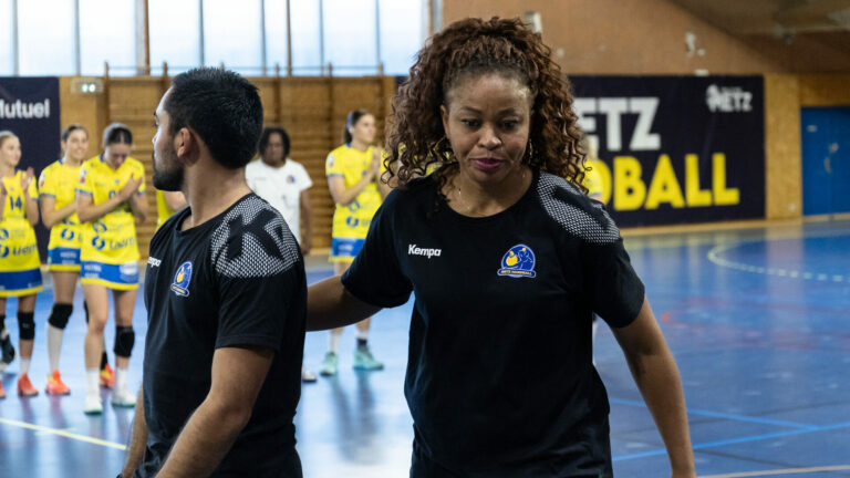 974 Les joueuses de l’équipe de N1F de Metz Handball ont brillé face à Palente Besançon, de quoi donner le sourire à la coach Nina Kanto. La semaine dernière l’ambiance était morne après la défaite face à Villemomble, aujourd’hui l’ambiance est différente.C’est complétement différent. La dernière fois, nous avions parlé de défaites qui font grandir et aujourd’hui les joueuses m’ont répondu. Maintenant, il faut que nous réussissions à renouveler l’expérience. Aujourd’hui, ce qui me fait du bien et me rassure c’est que j’ai pu voir mon effectif évoluer au complet et je peux voir le potentiel de cette équipe que j’ai construite. C’était compliqué depuis le début de saison parce que quand il manque des pièces, on a tendance à remettre en question le recrutement, la façon de voir les choses. J’étais convaincue que, bien que ces filles soient très jeunes, elles ont faim.Malgré tout, on voit qu’il y a des différences de jeu quand il y a des rotations. Si j’avais laissé le 7 de base on aurait pu améliorer l’avance, mais j’ai voulu faire jouer tout le monde. Ce n’est pas tous les jours que Metz ne part pas favori. Aujourd’hui c’était face à une équipe reléguée de D2F, favorite dans la poule, ça a aidé à faire sortir les crocs ?Bien sûr ! Et puis elles ont compris mon état d’esprit : on peut se tromper une fois, mais pas deux fois. Ca arrive à tout le monde les contre performances ou les erreurs, mais aujourd’hui j’ai envie de me dire qu’elles ont appris quelque chose. En venant en centre de formation, l’objectif est de remplir son sac avec tous les outils compatibles et nécessaires pour forger une belle carrière. Là, elles ont su réagir mentalement et physiquement face à une équipe qui a de l’expérience mais moins de rotations que nous. Il fallait appuyer sur notre point fort qui est le jeu sur grand espace. C’est quelque chose que j’ai adoré, défense, contre attaque ou montée de balle, ça nous a mises à l’abris avec une Fatima Camara qui était là. C’est aussi la différence avec la semaine dernière, c’est que j’ai pu compter sur mes gardiennes. Ca fait du bien ! Avoir les deux gardiennes de l’équipe première en tribune ça doit pousser aussi…Je pense que quand on voit les pros qui viennent nous voir jouer c’est touchant, c’est ce que j’aime. Avoir Sarah, Hatadou, Camille, Zaliata et les autres qui viennent, ça donne de la force. Ca donne aussi le sentiment d’exister, parce que quand on est l’équipe réserve, on manque parfois de reconnaissance, et là c’est une belle récompense. Délia Golvet, c’est un peu la surprise du chef, elle a joué en Champions League samedi et la revoici dimanche dans le groupe de N1F. Ca fait du bien de la retrouver dans le groupe ?Complétement ! En tant que joueuse de centre de formation elle a la possibilité de faire le doublon, c’est aussi pour ça qu’on joue le dimanche. Avec ou sans elle ce n’est pas la même chose. Maintenant, l’équipe a fait un gros début de saison sans elle mais face aux grosses équipes, l’avoir à nos côtés est une bénédiction. Elle a su apporter beaucoup de présence en défense, de la vitesse sur grand espace mais les autres ont continué à jouer leur rôle, sans se reposer sur elle. On a pas perdu notre ADN et elle a apporté la plus-value qu’on attendait. Crédit photo : Julien Buret