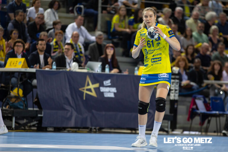 1,2K Valeriia Maslova, arrière droite de Metz Handball lors de l’exercice 2022/2023, évoluera au CSM Bucarest à partir de la saison prochaine. Ce mardi, le CSM Bucarest vient d’annoncer une nouvelle recrue pour la prochaine saison en la personne de Valeriia Maslova. L’arrière droite de 24 ans, Dragonne durant une saison (2022-2023) a, une nouvelle fois, décidé de rejoindre un nouveau projet. La Russe qui avait rejoint Brest après son aventure messine et évolue actuellement sous les couleurs du club hongrois de FTC Rail Cargo a décidé de s’engager avec l’actuel leader du championnat roumain. Elle fera équipe avec Anne-Mette Hansen qui s’est engagée pour deux ans avec le club d’Helle Tomsen et continuera son tour d’Europe des équipes ambitieuses. Après trois ans à Rostov (2017-2020) et deux saisons au sein de la formation monténégrine de Buducnost Podgorica (2020-2022), Valériia Maslova enchaînera son quatrième changement de maillot après avoir successivement porté celui de Metz donc puis Brest et FTC. View this post on Instagram A post shared by CSM Bucharest (@csm_bucharest) Sur le site du club, elle précise avoir « hâte de rejoindre le CSM Bucarest, un club prestigieux et un projet ambitieux ». Mais avant cela, nul doute qu’elle aura a cœur d’aider ses coéquipières de FTC à se qualifier pour le Final 4 de la Champions League aux dépens d’Odense et à remporter le doublé national après avoir conquis la Coupe début mars. Crédit photo: Matthieu Henkinet (Archives)