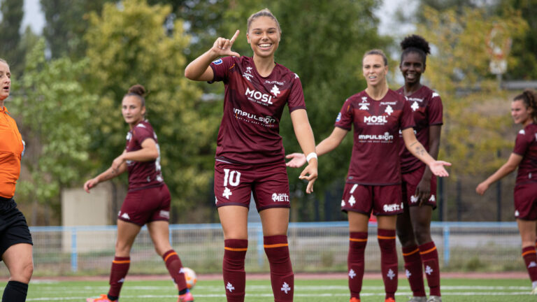 1,2K Arrivée en Juillet 2020 en provenance de Vendenheim, Océane Picard est devenue l’une des pièces maîtresses de l’effectif grenat. Entretien avec la milieu de terrain du FC Metz. Comment Océane Picard a commencé le football ?Toute ma famille jouait au football dans le même club. Mon père, mon frère et ma soeur y jouait alors que ma mère était quant à elle, coach. J’étais donc obligé de m’y mettre et ma famille me soutenait donc j’ai continué. Tu es native de Sélestat en Alsace, tu es passée par plein de clubs alsaciens avant de rejoindre Vendenheim en D2F, pourquoi avoir choisi Metz plutôt que le RCSA ?J’ai bien accroché avec Jessica Silva, la coach. Elle m’a montré beaucoup de confiance et c’est l’une des choses qui m’ont donné envie de venir ici. Je voulais aussi voir autre chose que l’Alsace, c’est pour ça que j’ai signé au FC Metz. Est-ce que ça t’a fait grandir le fait de changer de région ? Grandir oui mais j’avais l’habitude, à mes 15 ans je suis partie en internat donc je voyais très peu mes parents. Océane Picard en pleine séance d’interview (Crédit Photo : Julien Buret/LGM) Cette saison tu es la meilleure buteuse du club avec 7 réalisations, est-ce que tu penses faire ta saison la plus complète depuis le début de ta carrière ?Peut-être pas la plus complète mais oui je fais un bon début de saison et j’espère que cela va continuer afin aider l’équipe. Comment te sens-tu tactiquement cette année ? On t’a notamment vu à droite en début de saison.C’est toujours bien d’évoluer à un autre poste car on y apprend de nouvelles choses. J’aime bien aider mes coéquipières et j’essaie d’apprendre ce nouveau poste match après match. Je dirais quand même que je suis plus à l’aise dans l’axe mais ça me dérange pas. Vous avez affronté deux équipes de D1 cette saison, Dijon en amical et Bordeaux en coupe de France, est-ce que tu as senti une grosse différence avec une équipe de D2 ?Contre Dijon pas du tout, c’est même nous qui avons eu la maîtrise du match mais contre Bordeaux ça s’est senti sur la seconde mi-temps, notamment physiquement. Dès que l’on a encaissé le but à la 60e, on a complètement décroché alors qu’on aurait pu faire quelque chose de mieux. La principale différence entre la D1 et la D2 se situe surtout au niveau du physique selon moi. Océane Picard après la photo d’équipe (Crédit Photo : Julien Buret/LGM) Quel est ton rôle au sein du vestiaire ? Tu prends la parole ou tu es plutôt discrète ?Je suis plutôt timide dans le vestiaire. Mais ça fait maintenant trois années que j’évolue au FC Metz, je sens que je commence à prendre de plus en plus de place au sein du vestiaire. On sent une vraie amitié entre toi et Lucie Calba, un petit mot pour décrire Lucie ?Lucie c’est vraiment une joueuse talentueuse et si elle continue comme ça, elle peut avoir une très belle carrière. J’essaie de l’aider et de la prendre sous mon aile pour qu’elle soit plus performante. Comme l’an dernier vous calez après une belle première partie de saison. N’est-ce pas frustrant ?On va essayer de se servir de l’expérience de l’an dernier pour rebondir. On ne va pas retomber dans les travers de l’an dernier car la situation n’est pas la même. Le club a recruté des joueuses d’expériences et nous avons un groupe plus soudé avec de meilleures qualités pour aller chercher mieux. L’un des premiers entraînements à Metz (Crédit Photo : Julien Buret/LGM) Océane Picard c’est aussi l’équipe de France, depuis 2018 tu as gravi les échelons pour finalement atteindre la catégorie U23. Est-ce que ton rêve serait d’évoluer avec les A un jour ou alors tu n’y penses pas ?J’espère pouvoir y évoluer un jour mais c’est dur, le football féminin se développe de plus en plus. Il y a forcément plus de joueuses qui progressent et qui deviennent très fortes. Mais oui, je le souhaite mais il faut encore que je travaille. Tu es encore très jeune, mais malgré cela, as-tu senti une évolution dans la médiatisation du football féminin depuis tes débuts avec Metz ?Oui ça évolue de plus en plus même si en France on a un peu plus de mal que dans les autres pays. J’espère vraiment qu’un jour ça prendra plus d’ampleur. Est-ce difficile de concilier études et entraînements ?(rires) Oui ! Franchement c’est très difficile. Il y a des périodes où par exemple dans les études ça se passe moins bien mais heureusement derrière il y a le football pour rattraper, et vice-versa. Des fois nous avons entraînement le matin et donc l’après-midi tu loupes beaucoup de cours. Heureusement qu’il y a des collègues de la FAC qui t’envoient les cours donc tu peux rattraper tout le soir. Il y a aussi les périodes de stage. C’est difficile mais je m’accroche et pour le moment tout va bien, j’ai eu mon premier semestre. Je suis en L3 Staps APAS (Activité physique et Santé). Parmi les filles qui font des études il y a Amélie Delabre qui est en droit, Clara Petitjean est dans le management, Lucie Calba va passer son BAC et en L1 Staps il y a Léonie Richard, Emma Francart et Anaïs Weyer. L’emploi du temps est-il adapté pour les sportifs de haut niveau ?Oui, c’est adapté. Si je loupe des cours obligatoires, ce n’est pas très grave… même si je pense qu’ils pourraient faire mieux car l’an dernier j’avais des examens qui sont tombés au même moment que ma sélection avec l’Equipe de France, du coup j’ai du aller au rattrapage. Océane Picard avec l’Equipe de France U20 en 2022 (Crédit Photo : Julien Buret/LGM) Est-ce que tu suis les résultats des autres équipes du FC Metz ?Oui, je regarde un peu les matchs des pros et des U19. En dehors du FC Metz, j’aime bien le Metz Handball. On va souvent les voir et elles, sont venues nous voir lors de notre dernier match à domicile. Ton modèle dans le foot f