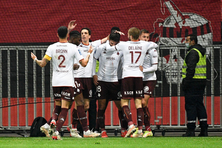 534 En déplacement sur la pelouse de l’OGC Nice, le FC Metz est allé chercher une précieuse victoire. Les Grenats se sont imposés 1-0 grâce à un but de Fabien Centonze. Trois points glanés face au 2ème de Ligue 1 qui pourraient être fondateurs pour la suite. Après trois matchs nuls consécutifs et des scénarios rocambolesques, le FC Metz a enfin décroché le précieux sésame, la victoire ! Ce n’était pourtant pas gagné d’avance face à l’OGC Nice, second du championnat. Si les niçois sont encore perfectibles collectivement, leur adversité restait extrêmement ardue pour les hommes de Frédéric Antonetti. Centonze et De Préville en détonateurs Fabien Centonze et Nicolas De Préville ont créé leur propre comptine pour enfants, « Trois p’tits points ». (Photo : Christophe Saidi/FEP/Icon Sport) En difficulté face à Bordeaux et à Marseille, Fabien Centonze a refait surface au meilleur des moments pour le FC Metz. Le latéral droit, meilleur buteur des Grenats, a signé sa 4ème réalisation de la saison en Ligue 1. Si les plus taquins diront qu’il s’est montré performant sur les antennes de Canal+, l’ancien lensois a su se montrer décisif, parfaitement servi par Nicolas De Préville.L’attaquant du FC Metz a une nouvelle fois réalisé une prestation XXL. Il a été à l’origine de quasiment tous les bons coups des Grenats dans la partie. A l’image de son centre millimétré pour Fabien Centonze qui s’est finalement transformé en passe décisive. Pour le plus grand bonheur des supporters du club à la Croix de Lorraine. OGC Nice – FC Metz : Le 3-4-3 payant de Frédéric Antonetti Frédéric Antonetti, très concentré pendant OGC Nice – FC Metz. (Photo : Christophe Saidi/FEP/Icon Sport) C’était la grande interrogation avant la rencontre. Frédéric Antonetti allait-il conserver son traditionnel 3-5-2 afin de réintégrer Jemerson en charnière centrale ? Ou bien allait-il repasser en 4-3-3 afin de titulariser Opa Nguette, décisif face à Bordeaux ? Et bien l’entraîneur messin n’a fait ni l’un ni l’autre, et a opté pour un inhabituel 3-4-3 !Grand bien lui en pris. La défense messine s’est en effet montrée très solide. Le retour de Jemerson a rassuré toute l’arrière garde grenat, à l’image de Kiki Kouyaté qui a joué sans retenue et en pleine confiance. En attaque, la titularisation d’Opa Nguette aux côtés de Niane et De Préville nous a donné l’occasion de revoir le trio offensif qui a (presque) renversé le match contre Bordeaux.S’il n’a pas été aussi en vue que face aux Girondins, Opa Nguette s’est montré très rigoureux dans le travail défensif, notamment dans le couloir gauche. De son côté, Nicolas De Préville a beaucoup bougé, ne se limitant pas à une stricte position d’ailier. Il a effectivement assumé beaucoup de responsabilités dans l’animation offensive messine, en l’absence de Farid Boulaya. Une efficacité offensive et défensive retrouvées ! Kiki Kouyaté s’est montré intraitable face à Andy Delort. (Photo : Christophe Saidi/FEP/Icon Sport) Outre leur combativité exemplaire, comme souvent dans ce type de matchs, les Grenats se sont montrés impitoyablement efficaces contre l’OGC Nice. Le FC Metz a en effet marqué sur son seul tir cadré de la rencontre. Pas besoin de plus pour les hommes de Frédéric Antonetti qui n’ont tiré que 4 fois au but et possédé le ballon 30% du temps.Des statistiques qui reflètent ce qu’on pourrait appeler un hold up parfait, mais les Grenats n’ont pas été grandement mis en danger par les Aiglons. Hormis une tête d’Andy Delort formidablement repoussée en première période, Alexandre Oukidja n’a pas nécessairement eu besoin de s’employer. Le portier messin s’est surtout montré vigilant dans les sorties aériennes, allant cueillir quelques centres niçois.La possession (70%) et les tirs (20 au total, pour 2 cadrés) niçois ont été plutôt stériles. Si les hommes de Christophe Galtier ont poussé en fin de match, ils ont buté face à un bloc messin très bas, notamment en deuxième période. La victoire n’est pas des plus spectaculaires, mais elle est précieuse.Le FC Metz remettra le couvert dès mercredi en Ligue 1 avec la réception de Montpellier à Saint-Symphorien. Une victoire permettrait aux Grenats de potentiellement sortir de la zone rouge.
