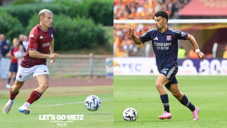1,6K À l’occasion de la deuxième journée de Ligue 1, le FC Metz effectue son premier déplacement de la saison au Groupama Stadium face à l’Olympique Lyonnais. Surpris à cinq minutes de la fin du match face à Strasbourg (0-1), les joueurs de Stéphane Le Mignan devront mettre les bouchées doubles face aux coéquipiers de Georges Mikautadze. Un exercice qui sera très compliqué pour les Grenats. Six jours après la défaite inaugurale à domicile face à Strasbourg, le FC Metz (15ème) se déplace dans le Rhône pour affronter l’OL (4ème). Stéphane Le Mignan y sera privé de Malick Mbaye et Joseph Mangondo. L’incertitude plane concernant Jessy Deminguet et Cheikh Sabaly, tous deux touchés, au talon pour l’un et au genou pour l’autre. Le capitaine messin Gauthier Hein va faire son retour sur le terrain après sa suspension. Les débuts du capitaine Gauthier Hein en Ligue 1 Crédit Photo : Stephan Weyrath/Let’s Go Metz Nommé capitaine après le départ de Matthieu Udol, Gauthier Hein va faire ses débuts dans ce nouveau rôle face à l’OL. Un retour de suspension qui va amener des changements au FC Metz comme l’a indiqué Stéphane Le Mignan. « D’une façon générale, la compo va évoluer par rapport à son profil de joueur. Il y aura forcément du jeu différent que ce soit offensivement ou défensivement. ». L’entraîneur messin a assuré que le meneur de jeu de 29 ans était motivé pour débuter sa saison et passer un cap en Ligue 1 (51 matchs, 3 buts). Selon Stéphane Le Mignan, Hein arrive à maturité et a l’occasion de montrer qu’il est un joueur digne de l’élite du football français. Une confiance dans le jeu à retrouver Crédit Photo : Stephan Weyrath/LGM. Face à Strasbourg, le FC Metz a été peu présent offensivement avec seulement deux tirs dont aucun cadré. Les Grenats voulaient d’abord se rassurer en défense après la débâcle à Hoffenheim (8-0). Toutefois, Stéphane Le Mignan est réaliste et sait que l’équipe doit progresser dans le jeu. « Il y a toujours cette idée de progresser. L’adversaire est différent et l’endroit où nous allons jouer risque d’être encore plus difficile que la semaine dernière. L’objectif est de progresser dans l’utilisation du ballon. On a été défaillant la semaine dernière. (…) Il faut gagner en qualité, prendre des risques même si l’adversaire (OL) est l’un des meilleurs en championnat. Il va falloir tenter des choses. » L’été de la reconstruction pour l’OL Crédit Photo : Philippe Lecoeur/FEP/Icon Sport Sauvés d’une relégation adminstrative en Ligue 2 en juillet, les Lyonnais ont dû renouveler profondément l’effectif afin d’améliorer la situation financière du club. Ainsi, dix-sept joueurs sont partis, dont Alexandre Lacazette et Rayan Cherki. Pour compenser ces nombreux départs, les dirigeants rhodaniens ont dépensé un peu plus de 35 millions d’euros. Des joueurs qui sont moins connus en Ligue 1, mais qui n’en demeure pas moins prometteurs. C’est notamment le cas du défenseur central Ruben Kluivert (24 ans), fils de l’ancienne gloire de l’Ajax et du FC Barcelone Patrick Kluivert. Le milieu défensif anglais Tyler Morton (22 ans), arrivé de Liverpool, a également du talent à revendre. Le coach messin Stéphane Le Mignan reconnaît la bonne forme des Lyonnais. « C’est une équipe qui a fait une très belle préparation. On les attendait un petit peu avec les déboires d’il y a quelques semaines, on ne savait pas s’ils allaient être en Ligue 1 ou en Ligue 2. Ils ont de la ressource avec un effectif moindre. Ils montrent beaucoup de qualités mais cela ne m’étonne pas connaissant l’entraîneur (Paulo Fonseca). Il est encore suspendu mais Jorge Maciel, qui est son adjoint, est très compétent”, estime le technicien. ”Aujourd’hui, s’ils font une bonne saison cela ne serait pas étonnant. Le mercato peut être important, ils ont des bons joueurs aussi. Dans l’ensemble, c’est une équipe qui sera en haut. Elle a repris de la confiance. Elle a réduit son effectif mais elle sera performante face à nous. » Les retrouvailles avec Georges Mikautadze Crédit Photo : Johnny Fidelin/Icon Sport Ce sera l’autre attraction du match : les retrouvailles entre le FC Metz et Georges Mikautadze. Un an après son départ de la Moselle, le Roi Georges aura l’occasion de briller face à son ancien club. Stéphane Le Mignan pense même que l’attaquant géorgien va faire une grande saison. En revanche, le technicien breton n’a pas annoncé un plan anti-Mikautadze mais il sait que la défense doit rester vigilante pour ne pas lui laisser de l’espace. Plus taquin, Koffi Kouao espère que l’ancien buteur de Saint-Symphorien va « mettre un but contre son camp ». Outre cette boutade, l’arrière droit ivoirien suit avec attention l’évolution de son ancien coéquipier. « Il avait pris une autre dimension ici. Le Georges d’il y a trois ans en deuxième division n’était pas le même qu’à la fin du championnat. Même quand il va à l’Ajax et quand il revient, on voit la classe du joueur qu’il est. C’est un super joueur, doté d’une grande qualité. J’espère qu’il va continuer à faire ce qu’il fait mais pas contre nous », sourit-il. Rendez-vous ce samedi à 21h05 sur la chaîne Ligue 1+ pour la rencontre entre l’OL et le FC Metz. Crédit Photo : Let’s Go Metz/Icon Sport