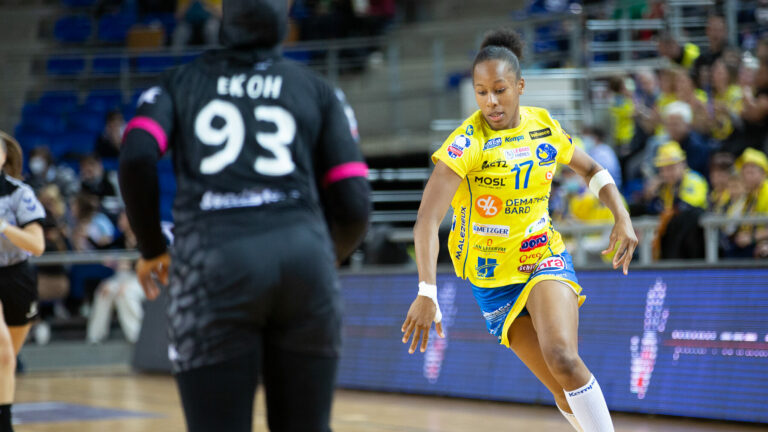 376 À la fin de Metz Handball – Fleury Loiret Handball, Orlane Kanor est revenue sur la vingtième victoire des Messines en championnat ainsi que sur sa bonne prestation. Orlane Kanor, en vous imposant 40-29 face à Fleury ce soir, vous avez fait le job.Oui on a fait le job, même si on pris beaucoup de buts. Mais on l’a emporté et c’est le principal. Vous avez pris beaucoup de buts mais ça fait partie de la vie d’une saison. Vous avez peut-être encore un peu la tête dans les nuages après la qualification pour le Final 4.(Sourire) Je ne pense pas qu’on ait encore la tête dans les nuages, c’était une bonne adversité. Je pense qu’elles ne méritent pas leur dernière place, c’est une très bonne équipe qui a des joueuses de qualité. Karichma Ekoh était encore grandiose sur le début de partie… On n’a peut-être pas assez mis de dynamisme en défense mais on n’a pas perdu. On a fait un bon match en attaque et il y a des choses à corriger en défense, mais on en est conscients. Cela fait quand même 20 sur 20 en championnat et +11 à la fin du match… Oui. On n’était pas totalement satisfaites car on aurait aimé proposé un meilleur contenu en défense, surtout individuellement. Par exemple, moi, j’ai été très mauvaise en première mi-temps sur les duels face à Ekoh et je pense que chacune d’entre nous a eu des petites lacunes à certains moments donc c’est surtout individuellement qu’on n’est pas satisfaites. Mais on est satisfaites du +11, c’est très bien. À titre personnel, tu fais un gros match, ce soir, en attaque (8 buts en 10 tentatives). Tu es la meilleure buteuse de la partie. Oui, je suis très contente. Ça faisait longtemps, ça fait du bien. Les filles m’ont mise dans de bonnes conditions et j’ai pris les tirs qu’il fallait. Mais, je suis très mitigée car je n’étais pas très bonne en défense. « Toutes les équipes n’ont pas ces rotations » Ce qui fait également partie d’une saison, c’est un groupe qui tourne et les blessures. On sent que vous arrivez à affronter le calendrier qui est quand même assez dense grâce à votre rotation. Camila (Micijevic) n’a pas joué aujourd’hui mais j’étais là en Arrière gauche. Il y avait Grâce (Zaadi) et Tamara (Horacek) donc ce sont des rotations de qualité. Je pense que c’est aussi pour ça que nous arrivons à gagner. On joue les 15 premières minutes avec une équipe puis on ramène de la fraicheur avec une autre qui a le même niveau d’intensité que la première. Effectivement, toutes les équipes n’ont pas ces rotations. Orlane Kanor et les Dragonnes repartent sur la route ce dimanche pour affronter Plan de Cuques, 12ème de Ligue Butagaz Energie. Propos recueillis par Arthur Carmier Crédit photo : Julien Buret/Let’s Go Metz