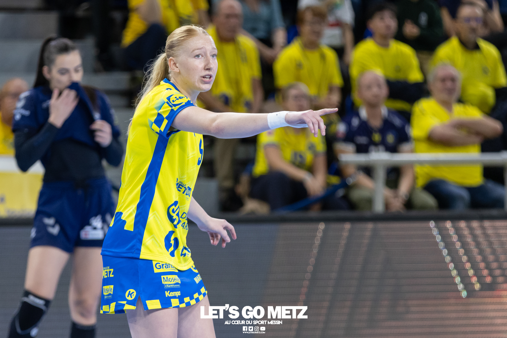 797 Ce mercredi (20 h), Metz Handball accueille Paris 92 dans un choc des extrêmes du championnat de France avant de se rendre à Nice samedi. Les semaines à deux matchs s’enchaînent pour Metz Handball. Après leurs victoires à la Stella Saint-Maur (20-40) puis sur leur parquet des Arènes face à la formation monténégrine de Buducnost Podgorica (38-18), les Dragonnes seront à nouveau sur le pont ce mercredi et ce samedi. Une fois n’est pas coutume, ce sont deux rencontres de Ligue Butagaz Énergie qui les attendent avant que la majorité d’entre elles ne rejoignent leurs sélections nationales respectives: face à Paris 92 puis à Nice. C’est un peu la semaine des extrêmes qui attend les protégées d’Emmanuel Mayonnade. En effet, si le week-end prochain offrira un premier test hexagonal aux Jaune et Bleu puisque l’OGC Nice, comme le Brest Bretagne Handball et les championnes de France en titre, ont fait le plein de victoires depuis le début de la saison, Paris 92, comme le Havre, cherche à trouver les clés de la victoire après des revers concédés face à Saint-Maur, Brest, Plan de Cuques et Toulon. Le club de la capitale voudrait s’éviter des sueurs froides comme celles vécues en 2024/2025 et retrouver un classement digne de de son passé, la finale de la Coupe de France disputée face aux Mosellanes n’ayant été qu’une petite éclaircie. Paris 92 en quête de rebond Pour y parvenir, la formation parisienne a procédé à une profonde revue d’effectif avec pas moins de six départs pour autant d’arrivées. Des joueuses expérimentées telles qu’Astride N’Gouan ou encore Adrianna Placzek ont été remplacées par la pivot roumaine Andreea Elincai et la gardienne internationale tricolore Julie Foggea (15 sélections). Le collectif dirigé par Naïm Sarni depuis les dernières semaines de l’exercice précédent peut toutefois toujours compter sur l’expérience de Barbara Moretto, Coura Kanouté (16 buts chacune) et sur sa nouvelle arrière gauche suédoise, Linn Hansson, venue de Savehöf (11 réalisations en trois rencontres). Bien que le défi qui se présente à Paris 92 soit immense, nul doute que les Parisiennes voudront montrer un visage conquérant pour préparer au mieux leurs prochaines échéances et Metz Handball aura l’objectif de poursuivre son parcours parfait. Bein Sports et Handball TV diffuseront la rencontre ce mercredi dès 19 h 45. Crédit photo: Matthieu Henkinet / Let’s Go Metz