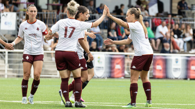 819 A Phalsbourg, les féminines du FC Metz se sont imposées (2-1) pour leur premier match amical de la saison face à l’équipe réserve de l’Eintracht Francfort. Les buts ont été inscrits par Anna Banuta et Elise Morris. Crédit photo : Julien Buret / LGM