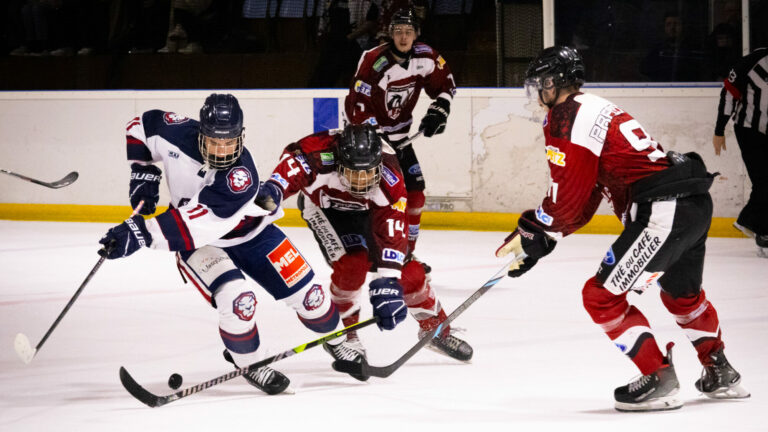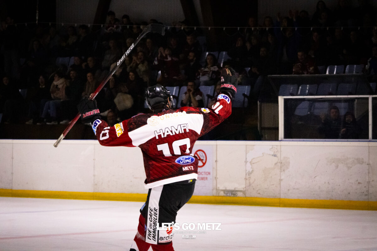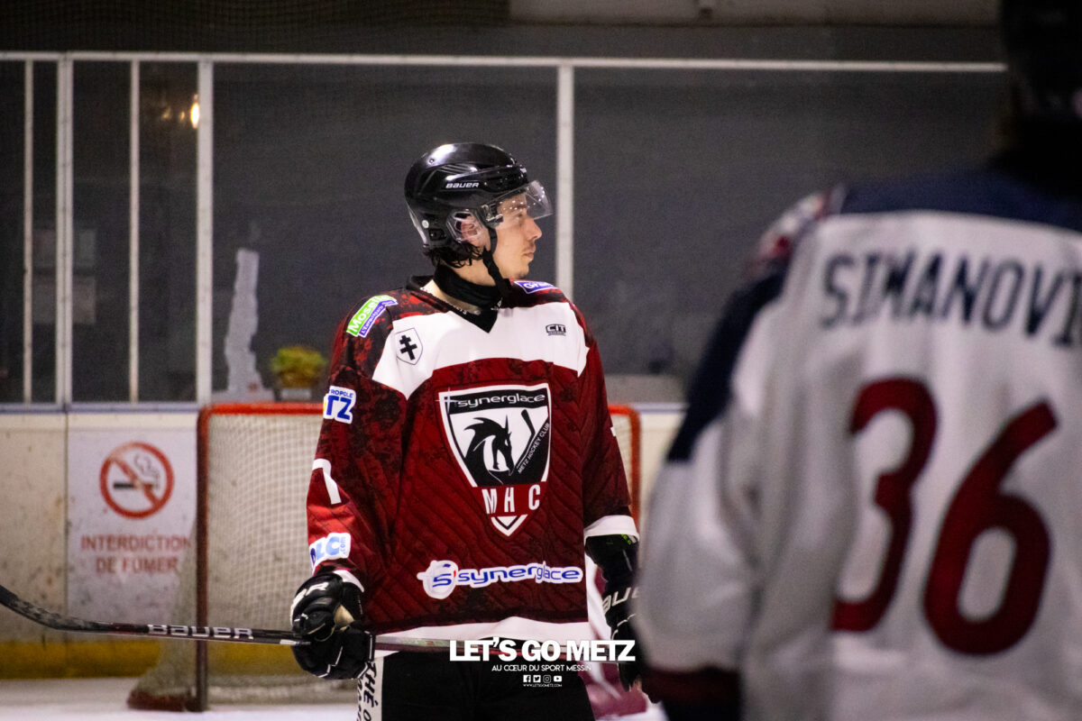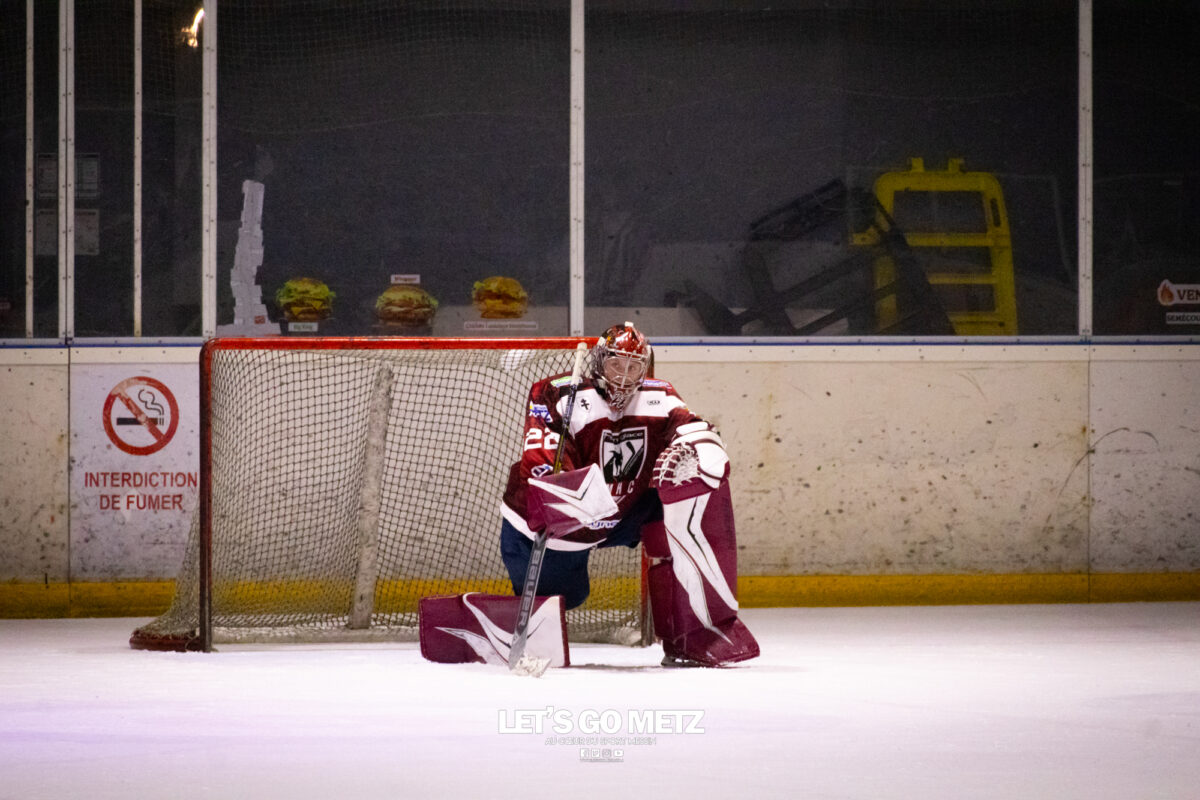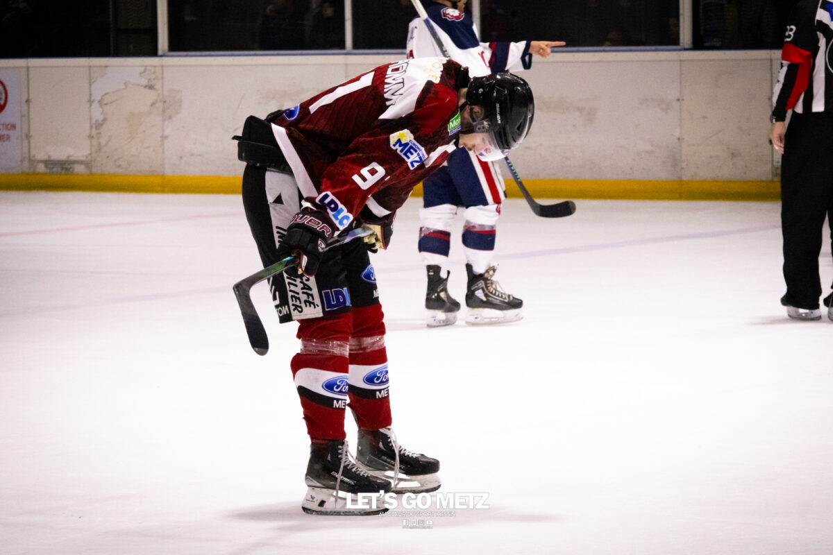 236 Le Metz Hockey Club s’est incliné (4-6) contre Wasquehal en quart de finale aller des playoffs de D3. Les hommes de Lukas Zeliska ont longtemps été au au coude-à-coude avec les Nordistes, grands favoris à la montée et au titre national. La bataille fut belle pour la der de la saison à la Ice Arena. Le Metz Hockey Club est tombé les armes à la main contre Wasquehal, en quart de finale aller des playoffs de D3. Les Graoullys ont été battus (4-6) sur leur glace face à l’un des immenses candidats à la montée en fin d’exercice, qui a survolé la saison régulière. Ils peuvent pourtant nourrir des regrets. Longtemps accrocheurs (1-2, 40′), les Messins ont craqué en encaissant quatre buts dans le dernier tiers-temps.« On est l’une des seules équipes à leur avoir donné du fil à retordre en saison régulière (défaite 5-6 en prolongation à domicile). On fait un très bon match mais on lâche un peu dans le dernier tiers-temps avec des erreurs défensives. Contre une telle équipe avec les meilleurs marqueurs du championnat, cela ne pardonne pas », constate l’attaquant Yannick Hamri. Malgré cet éclat (2-6), les Graoullys n’ont pas abdiqué et ont su réduire la marque en fin de match (4-6). Un exploit possible au retour ? De quoi présager d’un peu de suspense au match retour, samedi 25 avril (18h40) à Wasquehal ? Les Nordistes, qui souhaitent organiser le carré final des playoffs de D3, partent évidemment largement favoris. Mais le Metz Hockey Club ne s’interdit pas de rêver en sortant du match aller avec simplement deux unités de retard. « Ce sera forcément très difficile là-bas mais on va tout donner, tout est possible. On va y aller sans pression, c’est eux qui l’auront. On va s’amuser et jouer au hockey car ce sera peut-être le dernier match de la saison », annonce Yannick Hamri.Quoiqu’il arrive à Wasquehal, la saison du Metz Hockey Club sera amplement réussie. « Cela faisait un moment que nous n’avions fait un tel parcours en playoffs. C’est la récompense du travail de toute une saison, Lukas (Zeliska) nous a bien fait bosser », sourit Hamri. « On aurait voulu finir sur une meilleure note à domicile mais on est heureux d’avoir eu du monde sur les derniers matchs de la saison. Cela donne vraiment du baume au cœur de jouer devant un tel public ». Metz Hockey Club 4-6 WasquehalTiers-temps : 1-1, 0-1, 1-4. Tous les quarts de finale des playoffs de D3 Crédit photo : Zoé Keller / Let’s Go Metz