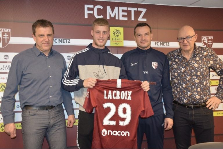 304 Le FC Metz joue la carte de la jeunesse ! Après Georges Mikautadze il y a quelques jours, c’est au tour de Lenny Lacroix de signer son premier contrat pro avec le club à la Croix de Lorraine, et c’est un petit événement… En effet, le défenseur né à Strasbourg est tout bonnement âgé de 16 ans. Le FC Metz a décidé de prendre les devants avec ce jeune espoir, et pour cause… Lacroix était d’après plusieurs rumeurs dans les petits papiers du FC Barcelone et de la Juventus Turin. Lenny Lacroix est désormais lié au FC Metz jusqu’en juin 2023, qui devient le plus jeune joueur à parapher un contrat professionnel en Moselle depuis un certain Vincent Thill… ✍️ @LacroixLenny1 est désormais un joueur professionnel du #FCMetz ! Le défenseur de 16 ans s'est engagé pour les trois prochaines saisons et il portera le numéro 29 ! Plus d'informations 👇 — FC Metz ☨ (@FCMetz) December 18, 2019 Crédit photo : Compte Twitter du joueur