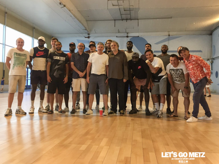 440 L’équipe de basket messine se remet tranquillement en ordre de marche, après un été mouvementé aussi bien au niveau de l’effectif que des installations. Une nouvelle étape a été franchie aujourd’hui, le premier match amical de préparation. Après avoir découvert leur nouveau lieu d’entrainement Dimanche dernier, les joueurs de l’équipe des Canonniers l’inauguraient ce matin dans le cadre d’un premier entrainement. Après cela, l’équipe s’est rendue en Alsace pour y disputer son premier match amical de pré saison face au Wasselonne Otterswiller Saverne Basket (W.O.S.B). Malgré les absences de Mathieu Rigaux et Mamedy Diawara, à trois semaines de la reprise de la compétition, il était opportun de tester en conditions réelles les nouvelles combinaisons offertes par le riche recrutement estival tout en se jaugeant face à un futur adversaire en Nationale 2. La saison passée, les Alsaciens avaient infligé deux défaites à l’équipe de Philippe Ory et avaient fini la saison à la troisième place de la poule D, ce qui en dit long sur leur niveau de jeu actuel. Aujourd’hui le résultat a été similaire mais aura eu le mérite de donner de bonnes indications sur les progrès à réaliser pour rivaliser avec ce type de concurrents lors de la reprise de la compétition officielle. Les Canonniers s’inclinent 77 à 92 face au WOSB. Crédit photo: Kévin Bignossi