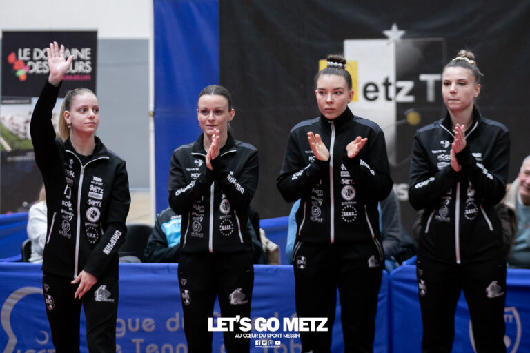 946 Ce mercredi soir, le Metz TT recevait le Joué-lès-Tours TT à l’occasion de la demi-finale aller de Pro A Dames. Les Jocondiennes avaient battu les protégées de Loïc Belguise lors de la deuxième journée de championnat (3-1). Trois semaines après son large succès face à Etival, le Metz TT retrouvait le Complexe Saint-Symphorien pour y défier Joué-lès-Tours en demi-finale aller de Pro A Dames. Une rencontre d’importance avant d’affronter Saint-Quentin en demi-finale aller de Ligue des Champions. Une adversité coriace pour le Metz TT La première manche de la rencontre était gagnée par le Metz TT (3-0) grâce à Mariia Tailakova face à Léana Hochart (11-8, 14-12, 11-6). La Russe avait quelques difficultés lors du deuxième set contre la 193ème joueuse mondiale. Joué-lès-Tours égalisait par l’intermédiaire d’une redoutable Hana Goda face à Adina Diaconu (2-11, 5-11, 11-9, 11-9, 3-11). Malgré deux sets remportés, la Roumaine était fébrile face à l’Egyptienne de 17 ans. Tailakova une nouvelle fois décisive Les Messines repassaient devant à la marque (2-1) à l’issue de la manche victorieuse de Charlotte Lutz contre Li He (9-11, 11-5, 11-8, 11-5). La rencontre était plaisante à suivre avec de beaux échanges entre les deux joueuses. Face à Goda (N°26 mondial), Tailakova avait fort à faire mais réussissait à s’imposer pour donner la victoire à son équipe (11-5, 9-11, 6-11, 11-7, 11-4). La Russe permettait à Metz de prendre une avance importante avant le match retour, mercredi 30 avril. En cas de nouvelle victoire, Metz jouerait la dixième finale de championnat de son histoire. Loïc Belguise : « Une superbe victoire » Crédit Photo : Julien Buret/Let’s Go Metz À l’issue de la rencontre, l’entraîneur de Metz TT Loïc Belguise a fait part de sa satisfaction à notre micro. « Une superbe victoire contre une très belle équipe qui a fini deuxième de la phase régulière. On sait que c’est du cinquante-cinquante. Aujourd’hui c’est bien d’avoir gagné mais il faudra confirmer au match retour. On a gagné 3-1 donc on a cinq sets d’avance, on est en bonne position. Maintenant, on va aller là-bas le mois prochain pour aller gagner ce match, sans calculer. Je suis très satisfait du match de ce soir avec un très bon niveau de jeu de l’ensemble de l’équipe. Une belle prestation qui lance une belle dynamique pour cette semaine avec le match de vendredi contre Saint-Quentin en Ligue des Champions. On va essayer de bien terminer la semaine et passer à autre chose après ». Il a aussi évoqué les moments importants de ce match tout en louant les bonnes performances de Tailakova. « On savait qu’ils avaient une très forte leader avec Hana Goda. Il ne fallait pas faire d’erreur face à Léana Hochart en première manche avec Masha. Après, il fallait battre Li He, Charlotte (Lutz) a fait un match très solide en numéro 3. À partir de là, il y avait de la pression énorme sur Hana Goda et Masha a réussi à lui en mettre. Masha, comme depuis le début de l’année voire comme depuis qu’elle est à Metz, réalise une superbe saison. ». Metz TT 3-1 Joué-lès-Tours TT Tailakova (Metz TT) – Hochart (Joué-lès-Tours TT) : 11-8, 14-12, 11-6Diaconu (Metz TT) – Goda (Joué-lès-Tours TT) : 2-11, 5-11, 11-9, 11-9, 3-11Lutz (Metz TT) – He (Joué-lès-Tours TT) : 9-11, 11-5, 11-8, 11-5)Tailakova (Metz TT) – Goda (Joué-lès-Tours TT) : 11-5, 9-11, 6-11, 11-7, 11-4 La galerie photo de la rencontre entre Metz TT et Joué-les-Tours Crédit photo : Valentin Lachaux / Let’s Go Metz