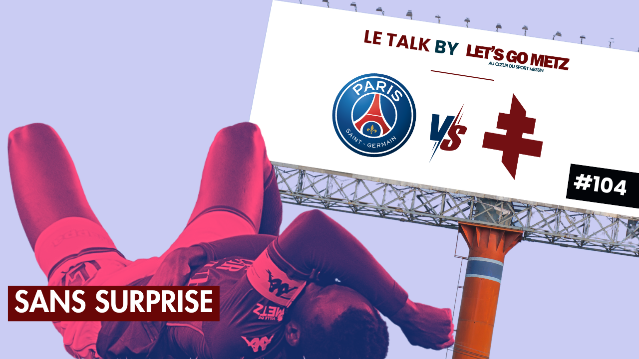 110 Retrouvez dès à présent le nouvel épisode du Talk by Let’s Go Metz, votre podcast au cœur du sport ! Retour aujourd’hui sur la défaite du FC Metz 3-0 face au PSG. C’est l’heure de retrouver le nouvel épisode du Talk by Let’s Go Metz sur YouTube et Spotify ! Gérald Russello et ses chroniqueurs reviennent sur la nouvelle défaite du FC Metz, 3-0 face au PSG sur la pelouse du Parc des Princes. Un match sans surprise, un PSG en claquettes face à une équipe messine d’une faiblesse abyssale. Les champions d’Europe face à l’une, si ce n’est la pire équipe des cinq grands championnats. Difficile de ne pas tirer sur l’ambulance aux deux tiers de la saison. Que reste-t-il à sauver ? Faut-il déjà préparer la ligue 2 ? L’éternel débat est lancé. Gérald Russello reçoit Kevin Bignossi et Thomas Douet. Présentation, montage et générique : Gérald RusselloMusique générique : « Miss A » (Jules Delorn)Musique habillage : « Proceed without a Pause » (The Roots)Visuels : Kevin Bignossi & Julien Buret