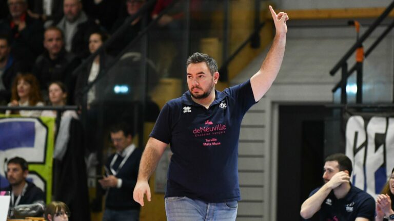 55 Ce sera Vandœuvre pour les quarts de finale des play-offs. L’entraîneur du TFOC Romain Pitou se plonge tout doucement dans cette prochaine double confrontation. Un adversaire que Terville Florange a déjà battu. Après une double confrontation dominée face à Chamalières, le TFOC a s’est qualifié pour les play-offs de Saforelle Power 6. Les Mosellanes ont fait des corrections entre les deux rencontres, ce qui a payé. Mais après cette qualification, Terville-Florange affrontera Vandœuvre en quart de finale, deuxième de la saison régulière. Un autre morceau. L’entraîneur des Bleues, Romain Pitou, s’attend forcément à une confrontation « compliquée », mais il croit plus que jamais aux chances de son équipe. Cette victoire a été encore plus large qu’à l’aller (3-0). Comment avez-vous réussi à imposer votre rythme tout au long de la partie ? Romain Pitou : « Chamalières est une équipe qui voyage mal. On le savait. Il fallait donc être sérieux dans le début de la rencontre. En étant agressifs d’entrée, on y est parvenu. C’est ça qui a fait la différence. » Au-delà de la qualification, qu’est-ce que vous retenez notamment dans le jeu du TFOC ? « On arrive parfaitement à réagir entre les deux matchs. À l’entraînement, on corrige les choses qui peuvent faire toute la différence, et on le retrouve sur le terrain ensuite. Chamalières reste une équipe qui pousse beaucoup à des blocs dehors. Les Auvergnates l’ont fait. Et on est parvenu à s’adapter en plaçant notre défense plus loin pour récupérer des ballons. Il faut continuer comme ça. » Vous n’avez fait aucun changement malgré le retour de Julia Haggerty. Par contre, Grace Chillingworth est restée sur le banc. Pourquoi vous avez gardé la même équipe durant toute la rencontre ? « J’ai préféré ne pas prendre de risque. Certaines ont encore quelques douleurs. Julia Haggerty revient à peine. Grace Chillingworth s’est bloquée le dos. Avec tout ça, il faut être prudent. C’est aussi l’occasion de travailler encore un peu plus les relations entre les joueuses. De son côté, Winderlys Medina a répondu présente alors qu’elle faisait son retour en tant que titulaire. » « On les a battues sans être à 100 % » Romain Pitou veut croire à un exploit face à Vandœuvre. © Mikaël Frank – Let’s Go Metz Dayana Segovia sort une nouvelle fois d’une bonne performance. Depuis son arrivée, elle prend vraiment la mesure de ses adversaires. Comment vous analysez sa progression assez fulgurante ? « C’est une joueuse d’expérience. Elle a gagné le championnat espagnol l’an dernier. Il nous fallait finalement une joueuse comme Dayana Segovia avec ce vécu. Mais elle devait accepter de travailler. Et c’est ce qu’elle a fait pour proposer de telles performances. Après quelques semaines, ce travail commence à payer. » Prochain adversaire : Vandœuvre. Sur quoi ce quart de finale va-t-il se jouer ? « C’est une très bonne équipe. Vandoeuvre a pris beaucoup de confiance en finissant deuxième de la saison régulière. Au match aller, on avait réussi à les battre devant notre public alors qu’on n’était pas à 100 %. Maintenant les play-offs, c’est une nouvelle compétition. On sait que ça va être compliqué. Mais on sait aussi qu’on peut aller loin avec cette équipe. Il faut le faire et pas juste y penser. » Crédit photo : Mikaël Frank – Let’s Go Metz.