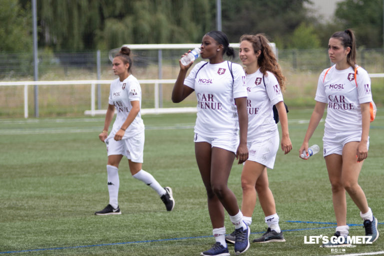 712 Alors qu’elles reprennent le chemin des entraînements ce vendredi, les féminines du FC Metz se renforcent avec l’arrivée de quatre nouvelles recrues. On apprenait il y a une semaine la prolongation de Kelly Kone et Clara Petitjean, après celles d’Oceane Picard, d’Eva Kouache, de Célia Rigaud, Justine Lerond, Marjorie Boilesen, Justine Rougemont, Marine Morel, Amelie Delabre et Candice Gherbi. C’est désormais l’heure pour le FC Metz de présenter ses quatre nouvelles recrues ! Inès Boutaleb Internationale algérienne (Trois sélections), formée à l’Olympique Lyonnais. L’attaquante de 22 ans passée par l’Olympique de Marseille, Grenoble, Croix de Savoie Ambilly et Thonon Évian Grand Genève va apporter toute son expérience dans le groupe de Jessica Silva. Florie Saint-Cricq Milieu de terrain de 19 ans, passée par le centre de formation des Girondins de Bordeaux, Florie Saint-Cricq arrive en provenance de Thonon Évian Grand Genève. Charlotte Sawaryn La jeune latérale droite (20 ans) arrive en provenance du LOSC où elle y a joué deux saisons. Elle compte cinq sélections avec les jeunes Tricolores à son actif (trois en U16, une en U17 et U19). Aliya Said Défenseure centrale de 23 ans, elle aussi formée à l’Olympique Lyonnais. Elle n’a pour le moment évolué qu’en D2F dans les clubs d’Ambilly et de Thonon Évian Grand Genève. Des renforts de choix donc pour les féminines qui tenteront une nouvelle fois de retrouver l’élite en fin de saison. Crédit Photo : Julien Buret