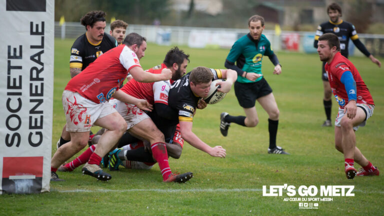 402 Enfin de retour face à son public, le RC Metz n’a malheureusement pas réussi à capitaliser. Les messins se sont inclinés 32-16 face à l’équipe jurassienne du Grand Dole. Malmené lors de ses trois dernières sorties (Orsay, Orléans, Pontarlier) et classée dixième de la poule 2, l’équipe de Ludovic Mercier devait trouver les leviers pour relancer la machine collectivement.Opposé au Grand Dole, classé 8ème avec un match d’avance, le RC Metz voyait se présenter une belle occasion de prendre quelques points devant son public. A noter par ailleurs la présence en tribune de Rayne Barka, talonneur de la Section Paloise et champion du monde des moins de 20 ans, ayant débuté son parcours rugbystique chez les jeunes du RC Metz. En ouverture, l’équipe réserve s’imposait 34 à 8. Le RC Metz cueilli à froid par le Grand Dôle La partie commençait très mal pour les messins. Dès la 5ème minute de jeu, le demi de mêlée de Dôle inscrivait le premier essai de la rencontre, profitant d’un superbe travail de son ouvreur. Un essai entaché d’un en-avant dolois non signalé par l’arbitre en début d’action. (0-7, 5°)Le RC Metz n’était pour autant pas décroché et dominait globalement ce début de match. Dôle pliait mais ne rompait pas. Fabre profitait de l’indiscipline des visiteurs pour ajouter quelques pénalités de plus au compteur messin. (9-10, 21°)Dominer n’est malheureusement pas gagner. Sur une des rares incursions jurassiennes dans les 22 mètres adverses, les visiteurs allaient être récompensés. Les messins se mettaient en effet à la faute devant leur ligne d’en-but. L’arbitre signalait alors un essai de pénalité. (9-17, 24°)Diablement efficaces, les joueurs du Grand Dôle allaient profiter quelques instants plus tard d’une touche mal négociée par le RC Metz pour transpercer la défense en contre-attaque et aplatir en terre promise. (9-22, 28°)Staab relançait les siens en inscrivant un essai à la suite des nombreux coups de boutoirs messins dans les 22 adverses. (Mi-temps, 16-22) Les jurassiens en gestion C’est en supériorité numérique que les joueurs du RC Metz allaient entamer cette deuxième période. En effet, le troisième ligne aile du Grand Dôle se voyait pénalisé d’un carton jaune en toute fin de première mi-temps. Les mosellans n’allaient malheureusement pas profiter de cet avantage. Le demi d’ouverture dolois inscrivait trois nouveaux points pour son équipe à la suite d’une pénalité. (16-25, 44°)Pas très inspirés en deuxième période, les messins se montraient impuissants devant l’efficacité des visiteurs, qui inscrivaient un nouvel essai après une passe au pied dans l’en-but de leur ouvreur. (16-32, 55°)Un retard malheureusement irréversible pour le RC Metz. Les joueurs de Ludovic Mercier allaient pourtant finir le match à 15 contre 14, à la suite d’un nouveau carton dolois (72°). Ils jetaient alors leurs dernières forces dans la bataille pour tenter d’arracher le bonus défensif. Sans succès. Score final de ce RC Metz – Grand Dole : 16 à 32 Au delà d’une simple défaite, le RC Metz a montré lors de ce match un visage inquiétant. Entre gestes d’humeur et manque de cohésion dans le jeu, on pouvait surprendre depuis la touche en deuxième mi-temps quelques échanges loin d’être cordiaux entre coéquipiers. Si à l’issue du match, le staff a longuement retenu l’équipe au centre du terrain, la privant ainsi de la haie d’honneur Doloise et des encouragements du public, c’est certainement pour tenter de remettre quelques pendules à l’heure. Déjà frappé par une cascade de blessures, l’effectif Messin a quitté la pelouse la tête basse… Prochain rendez vous pour le RC Metz le 21 Novembre avec un déplacement à Bourges, avant de retrouver la Grange aux Bois face au Paris UC le 05 Décembre. La galerie du match Rédaction : Arthur Carmier et Matthieu HenkinetCrédit photo : Matthieu Henkinet