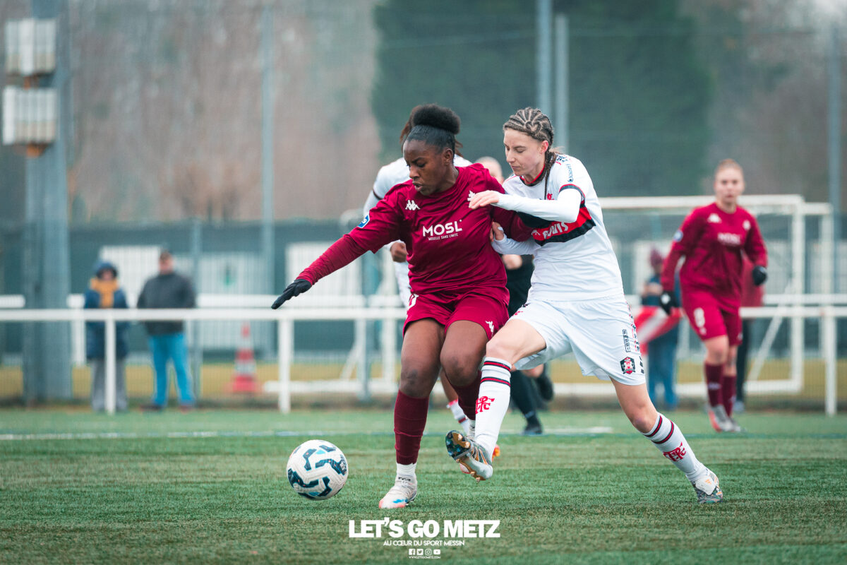 163 Deux matchs, deux défaites. A l’image de l’équipe fanion du FC Metz, la formation n’a pas brillé ce week-end. En s’inclinant à domicile, les U19 et U19F cèdent du terrain sur leurs adversaires directs au classement. Les U19F s’inclinent face à Fleury Après avoir été battu par le RC Strasbourg en ouverture de la phase excellence, les Messines n’ont pas su réagir face à Fleury. Samedi, les Fleuriennes ont rapidement ouvert le score (0-1, 7′), avant de doubler la mise en deuxième mi-temps (0-2, 70′). Les Grenats réagissent tard, en réduisant le score (1-2, 83′), puis concèdent un nouveau but (1-3, 90′). En conséquence, le FC Metz reste à zéro point dans cette deuxième phase de la saison. Les U19 dominent, puis s’inclinent Ce dimanche, l’équipe U19 du FC Metz espérait enchaîner un deuxième succès consécutif pour se rapprocher de la tête de sa poule. En accueillant le FC Sochaux Montbéliard, parmi les derniers du classement, les Grenats semblaient largement favoris. Cette tendance s’est plutôt confirmée sur le terrain, où les Messins ont souvent porté le ballon et montré de belles intentions. Mais leur manque de réalisme offensif a fini par leur coûter le match, qui basculait du côté de Sochaux sur un bel exploit individuel sochalien en deuxième mi-temps (0-1, 65′). Crédit photo : Julien Buret / Let’s Go Metz
