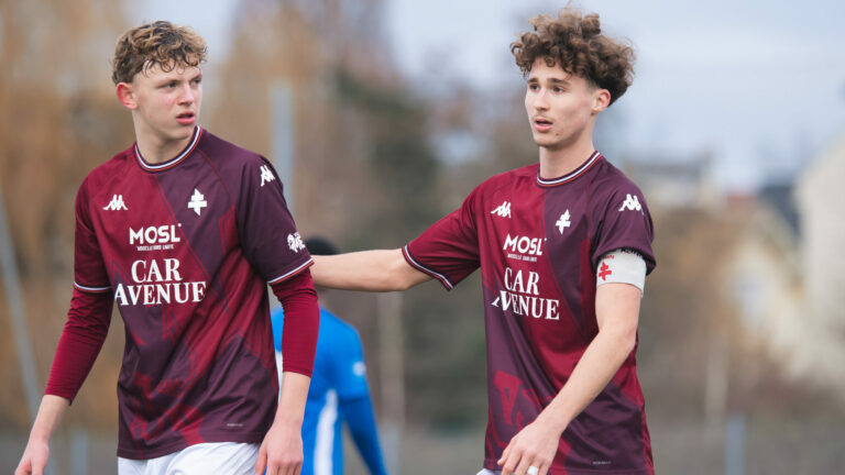 1,2K Dans le sillage de la belle victoire des pros en Ligue 2, les jeunes du FC Metz étaient plutôt en réussite ce week-end. Retrouvez notre Récap’ formation. Après la victoire à l’extérieur de l’équipe première face à Dunkerque (2-3), les autres formations masculines et féminines du FC Metz étaient attendues ce week-end du 15 et 16 mars. L’équipe réserve (National 3) – lire par ailleurs -, les U19 masculins et féminines peuvent être satisfaits de leurs performances. Contrairement aux U17 masculins, qui se sont inclinés aux tirs aux buts samedi (5-4) face au FC Riedisheim en 8ème de finale de la Coupe du Grand-Est, et ont fait jeu égal à domicile le lendemain en championnat face au FC Sochaux-Montbéliard (1-1). C’est à lire dans notre Récap’ formation. Un week-end décevant pour les U17 Photo : Julien Buret / Let’s Go Metz Les joueurs de Toifilou Maoulida avaient un calendrier chargé ce week-end, ils se déplacaient samedi 15 mars, à l’occasion des 8èmes de finales de la Coupe du Grand-Est, pour affronter une équipe très offensive, à savoir le F.C Riedisheim. Les deux formations se tenaient et le match était très sérré (1-1), allant jusqu’à une cruelle séance de tirs aux buts (5-4) qui voyait les Messins être éliminés de la compétition. Suite à ce revers, les U17 Nationaux avaient l’occasion de rattraper la contreperformance de leurs coéquipiers en Coupe, en championnat le lendemain, où le FC Metz accueillait le FC Sochaux-Montbéliard (5e).La rencontre fût, comme le match de la veille, très disputée. Alors que l’équipe visiteuse ouvrait enfin le score à la 81ème minute de jeu, les Messins durent attendre la 90ème minute et la réalisation de Mathis Holo, entré en jeu quelques instants plus tôt, pour faire trembler les filets et décrocher le match nul. Après ces deux performances frustrantes en coupe et en championnat, le FC Metz reste 6ème du championnat, mais doit se ressaisir avant d’affronter, le dimanche 23 mars, le RC Strasbourg actuel leader du championnat. U19F – Une victoire qui fait du bien Photo : Julien Buret / Let’s Go Metz Après avoir fait match nul face à Sarcelles deux semaines plus tôt, les Messines recevaient ce dimanche le LOSC Lille, à l’occasion de la 5ème journée du groupe A de la phase excellence. Avec un festival offensif en première mi-temps des joueuses mosellanes et quatre buts (Mathelin 2′), (Buchere 21′), (Ferrari 24′), (Djebli 39′), les Lilloises prenaient l’eau, malgré un but marqué juste avant la pause par Noéline Luthyn (45′).Cependant, le second acte de la rencontre fût très compliqué pour les joueuses du FC Metz, qui encaissaient deux buts à quelques minutes d’intervalle (53′, 58′), et voyaient l’équipe adverse revenir à un seul but de l’égalisation. Les Messines ont toutefois tenues bons jusqu’à la fin, et sont parvenues à s’imposer dans la douleur. Prochain défi pour la formation de Quentin Testelin : l’équipe redoutable du Havre AC, invaincue depuis ce début de saison, qui avait fait jeu égal avec les Mosellanes (0-0) lors de la deuxième journée de championnat. U19- Un succès maîtrisé face à Besançon Alors qu’ils avaient fait chuter le FC Sochaux-Montbéliard avec la manière la semaine dernière (3-0), les U19 masculins du FC Metz affrontaient à l’extérieur la lanterne rouge, le Racing Besançon, lors de la 21ème journée du groupe B. Bis repetita pour les Mosellans au stade Malcombe, les joueurs de Stéphane Léoni s’imposaient logiquement (0-3) sans encaisser de but. Suite à cette victoire, les Messins prennent la 6ème place du groupe B en dépassant le Stade de Reims qui a lourdement chuté face à Mulhouse (4-1). Les jeunes joueurs du FC Metz affronteront le dimanche 23 le FC 93 Bobigny, qui lutte pour la maintien. Photo à la une : Nicolas Martino / Let’s Go Metz