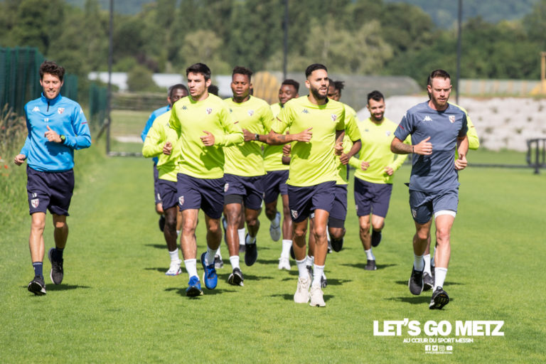 346 Après une batterie de tests en raison du COVID-19, qui par bonheur se sont tous révélés négatifs, le FC Metz a pu reprendre les chemins des terrains d’entrainement de Frescaty. Retour en images sur la rentrée de nos Grenats, ainsi que sur les dernières infos du club à la Croix de Lorraine ! L’ambiance était détendue ce lundi matin au centre d’entrainement du FC Metz. Les hommes de Vincent Hognon retrouvaient les pelouses et l’entrainement collectif, bien plus joyeux que l’entrainement individuel, de rigueur pendant la période de confinement.A l’image d’Alexandre Oukidja, qui nous a gratifié de quelques facéties dont lui seul a le secret, la majeure partie de l’effectif messin de l’an dernier était présente à l’entrainement, si ce n’est bien sûr Kévin N’Doram dont on connaît l’indisponibilité. Toutefois, de nouvelles têtes (ou anciennes connaissances) étaient présentes à Frescaty. Lamine Gueye, nouveau Grenat ! Nous avions anticipé la venue de l’ancien pensionnaire de Génération Foot en Lorraine, le club a officialisé le transfert ce lundi matin. Lamine s’engagera avec le FC Metz une fois le marché international des transferts ouvert. Interrogé sur le joueur qui était présent à l’entrainement, Vincent Hognon nous a confié « qu’il était avec le club pour l’instant » et que la préparation était « l’occasion de l’observer attentivement ». 🔁 Le #FCMetz a trouvé un accord avec Génération Foot pour le transfert de Lamine Gueye !⚡️ L’attaquant sénégalais de 22 ans s’engagera en faveur du Club grenat une fois le marché des transferts international ouvert 👇— FC Metz ☨ (@FCMetz) June 29, 2020 Le retour des prêtés Qui dit début de préparation, dit retour des joueurs qui étaient prêtés dans d’autres clubs la saison passée. Ils étaient quatre ce matin à la reprise : Ablie Jallow, Youssef Maziz, Cheick Tidiane Sabaly et le controversé Vincent Thill. Le luxembourgeois a d’ailleurs paru très affûté, au point de pouvoir enfin exploser au FC Metz ?Vincent Hognon ne ferme en tout cas aucune porte au jeune joueur et s’est dit « heureux de l’avoir à l’entrainement » afin « de pouvoir le découvrir au quotidien ». Même son de cloche pour son compatriote Laurent Jans, à qui aucune porte n’est fermée, et qui bénéficie de repos supplémentaire car il vient d’achever la saison de Bundesliga avec Paderborn où il était prêté, relégué et bon dernier. Vincent Hognon salue d’ailleurs « un garçon qui s’est très très bien comporté lors de la saison de Ligue 2 ». Metz tiendrait enfin son back up à l’excellent Fabien Centonze ? Les 25 grenats qui se sont entraînés ce matin Gardiens : Alexandre Oukidja, Paul Delecroix, Yassine Gourari-TebaaDéfenseurs : Fabien Centonze, Dylan Bronn, John Boye, Matthieu Udol, Lenny Lacroix, Thomas DelaineMilieux de terrain : Mamadou Fofana, Habib Maïga, Vincent Pajot, Victorien Angban, Boubacar Traoré, Vincent Thill, Opa Nguette, Farid Boulaya, Ablie Jallow, Cheick Tidiane Sabaly, Youssef MazizAttaquants : Habib Diallo, Ibrahima Niane, Thierry Ambrose, Pape Ndiaga Yade, Lamine Gueye Crédit photo : Matthieu Henkinet