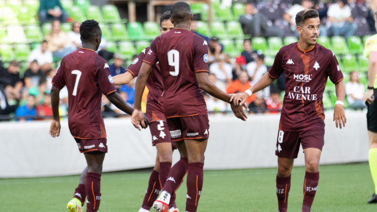 599 Les réservistes messins, portés par de nombreux renforts professionnels en quête de temps de jeu, ont mal débuté leur rencontre avant de renverser logiquement le SC Schiltigheim. Une belle victoire 4-1 pour la réserve du FC Metz ! Le groupe de Stéphane Saillant avait des faux airs d’équipe de Ligue 1 ce samedi : Boulaya, Nguette, Bassi, Sabaly, Niakaté, Alakouch ou encore Lenny Joseph venaient en effet se relancer en National 2, où le FC Metz était à la peine ces dernières semaines. Et l’entame de match était surprenante. Après avoir capté un corner tiré trop mollement, le gardien du Sporting relançait rapidement vers son attaquant, qui se jouait de la défense messine et trompait Ba d’un tir en force (0-1, 2e). Cueillis à froid, les locaux ne réagissaient pas, manquant même à plusieurs reprises de concéder un second but, sur des centres tendus et des contre-attaques heureusement freinées par le gros travail de Mbengue. Sur l’une d’elles, Ba devait s’aventurer hors de sa surface et tacler le ballon juste avant qu’un attaquant Schilikois ne s’en empare.C’est une action très joliment menée qui allait relancer les Grenats. Un renversement de Boulaya alertait Alakouch à droite ; celui-ci remisait sur Bassi qui, après un coup d’œil, rebasculait superbement vers Boulaya ; d’une volée du gauche, l’international algérien trouvait finalement Joseph esseulé au second poteau (1-1, 32e). Malgré quelques contres toujours menaçants, la fin du premier acte était à l’avantage des Messins, mais leurs tentatives manquaient toutes le cadre : aussi bien le tir au sol de Nguette que la volée de Boulaya ou la tête de Joseph. On sentait cependant que les Lorrains avaient largement pris la mesure de leurs adversaires. L’entrée décisive de Daoud pour la réserve du FC Metz Toujours conduite par un Boulaya particulièrement en jambes pour un match de reprise, la réserve poursuivait sa domination après la pause. Les Alsaciens concédaient encore des frappes de Sabaly, Nguette et Joseph ; leur poteau était même heurté par une tête piquée du même Joseph sur un bon centre de Mikelbrencis. Puis, fraîchement entré en jeu, Daoud remontait tout le terrain avant d’écraser un tir qui ne trompait pas le gardien. Ce n’était que partie remise, car deux minutes plus tard il transformait avec sang-froid le pénalty obtenu par Sabaly (2-1, 70e).Pas rassasié, Daoud accélérait encore et offrait une magnifique occasion à Bassi, dont la frappe enroulée frôlait le poteau. Le break venait sur l’action suivante, quand Joseph, lancé par Boulaya, devançait la sortie du gardien d’une petite balle lobée (3-1, 74e).Dans les dernières minutes, Alakouch se mettait à son tour en évidence. Il surgissait d’abord dans la surface et plaçait sa reprise juste au-dessus de la barre, puis, après un slalom dans la défense des Verts, il était fauché et permettait à Bassi de corser l’addition sur pénalty (4-1, 91e).Grâce à ce succès convaincant, les Grenats s’éloignent de la zone rouge et Frédéric Antonetti, présent au stade, a peut-être trouvé dans ce match quelques motifs d’espoir en ces temps difficiles. Crédit photo : Julien Buret