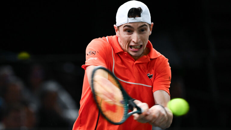 577 En l’emportant face à Jordan Thompson (6-2 7-6) vendredi soir, Ugo Humbert se qualifie pour la demi-finale du Rolex Paris Masters. Jeudi soir, Ugo Humbert était sur un nuage après son incroyable victoire face au numéro 2 mondial Carlos Alcaraz en huitième de finale. Le lendemain, Ugo Humbert a franchi un nouveau cap en Masters 1000. En écartant l’Australien Jordan Thompson, le Messin a décroché sa première demi-finale en carrière à ce niveau de compétition. Il est désormais le dernier espoir français pour la dernière édition du Rolex Paris Masters à Bercy. Le tournoi se déplace dans la Paris La Défense Arena à partir de l’année prochaine. Une victoire dans la douleur pour Ugo Humbert Le combat avait été rude pour Ugo Humbert face à Carlos Alcaraz en huitième-de-finale. Le Messin avait passé plus de deux heures sur le court, avec un troisième set extrêmement physique. Mais comme face à l’Espagnol, Humbert a facilement remporté le premier set face à Thompson (6-2). En 31 minutes de jeu, Ugo Humbert balayait l’australien, et faisait déjà un pas vers une première demi-finale en Masters 1000. Le Français était notamment impérial sur son service, n’encaissant que trois points sur ses quatre mises en jeu. La surface rapide du court central de Bercy (le plus rapide de tous les Masters 1000) semble avantager le style de jeu offensif d’Humbert. Dans le deuxième set, le Lorrain devait faire face à un adversaire plus solide, notamment au service. L’Australien adoptait un style de jeu plus agressif, qui perturbait davantage Humbert. Mais ce dernier montrait une force de caractère impressionnante, et refusait de reculer. En s’appuyant sur un gros service et des attaques aussi puissantes que précises, il prenait définitivement le contrôle du match. Les choses se compliquaient pour le Messin en fin de partie, après avoir laissé filer deux balles de match. Il faisait appel au soigneur pour une douleur à la cheville droite. Finalement, il l’emportait difficilement au tiebreak (7-4). Devant un public chaud, Ugo Humbert validait ainsi sa place en demi-finale (6-2 7-6). Le Messin affrontera Karen Kachanov (21e mondial) en demi-finale ce samedi, autour de 16h30. Crédit Photo : Anthony Dibon / Icon Sport